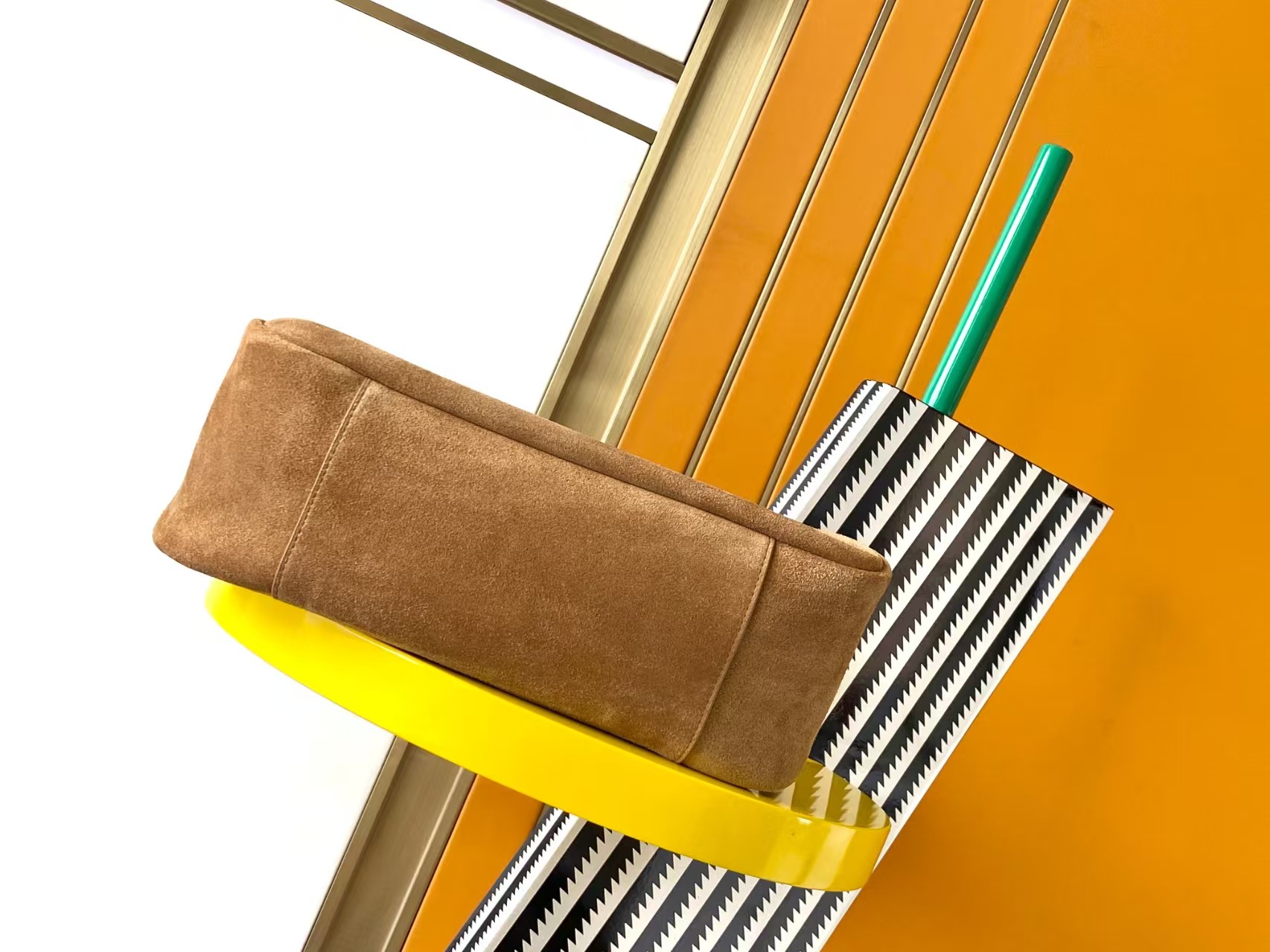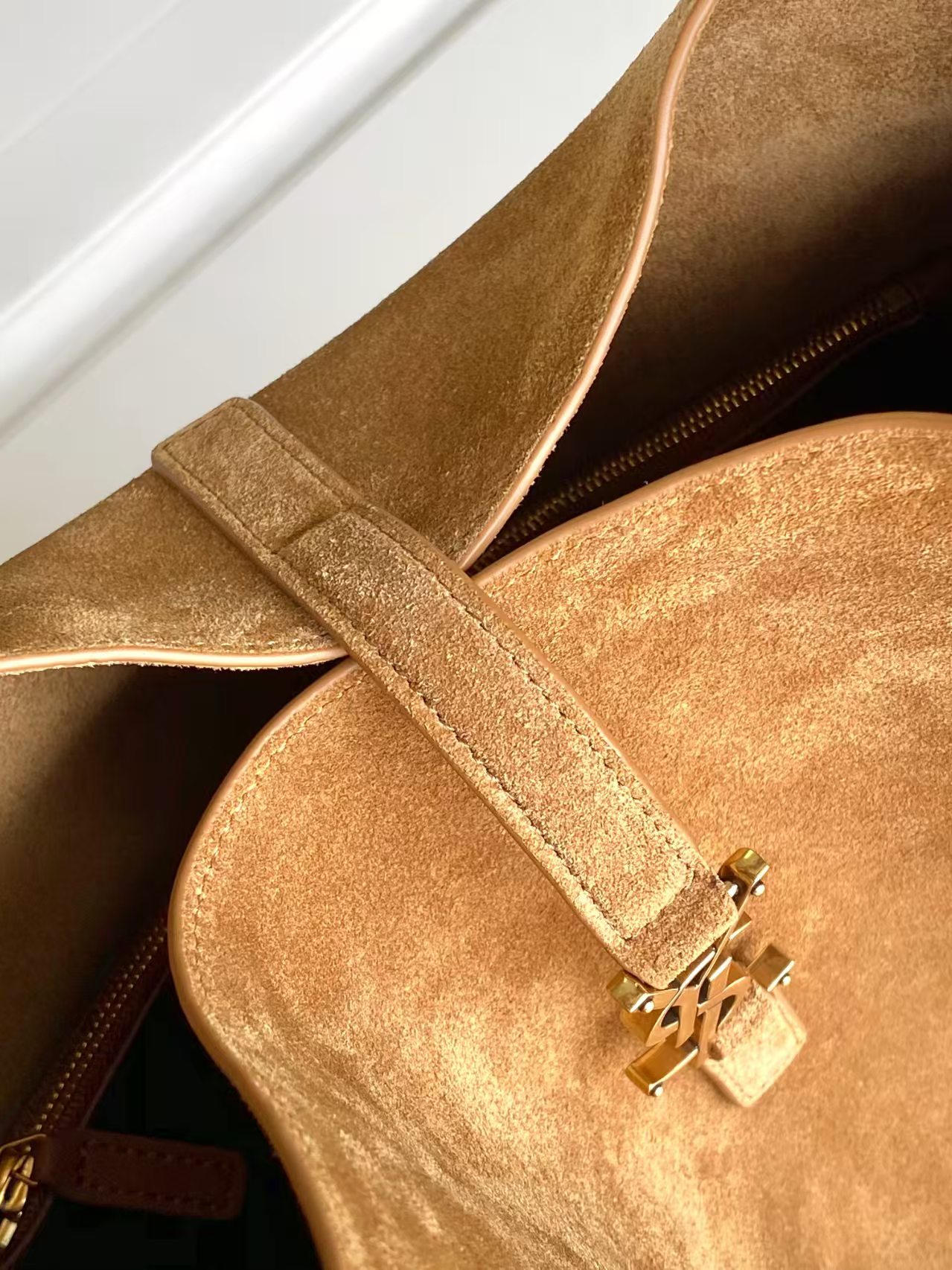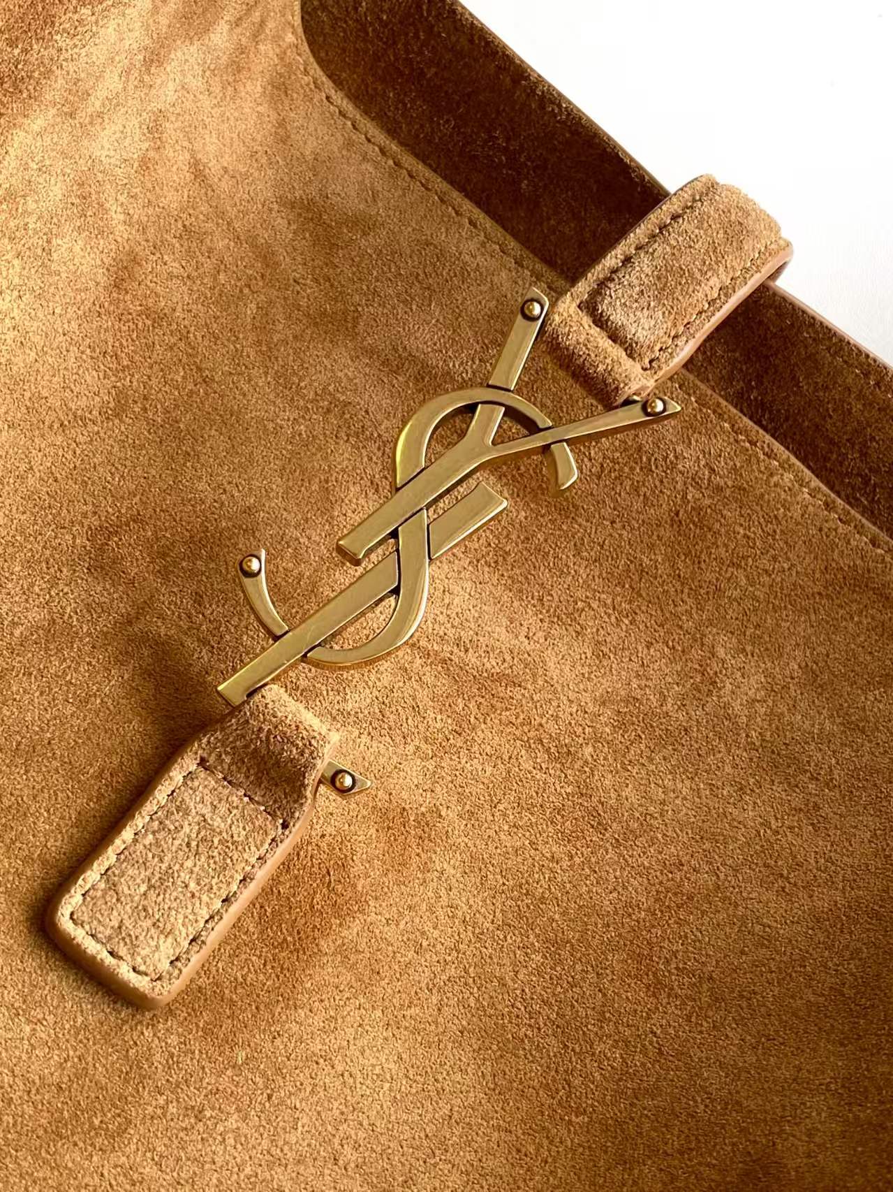 圣罗兰 LE5A7 经典品牌字母微标 麂皮 手提单肩包 焦糖棕色 大号磨砂皮手袋(LZ)