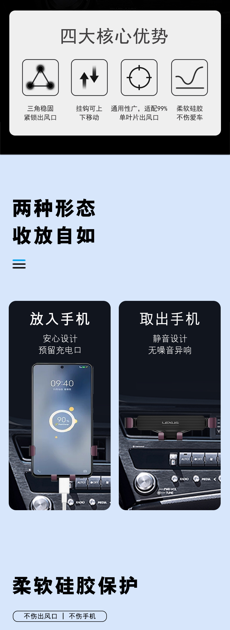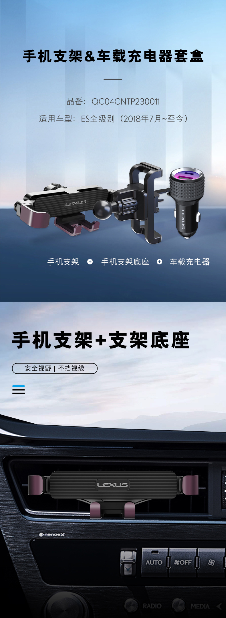 手机支架&车载充电器套盒,适用车型:ES全级别(2018年7月~至今)