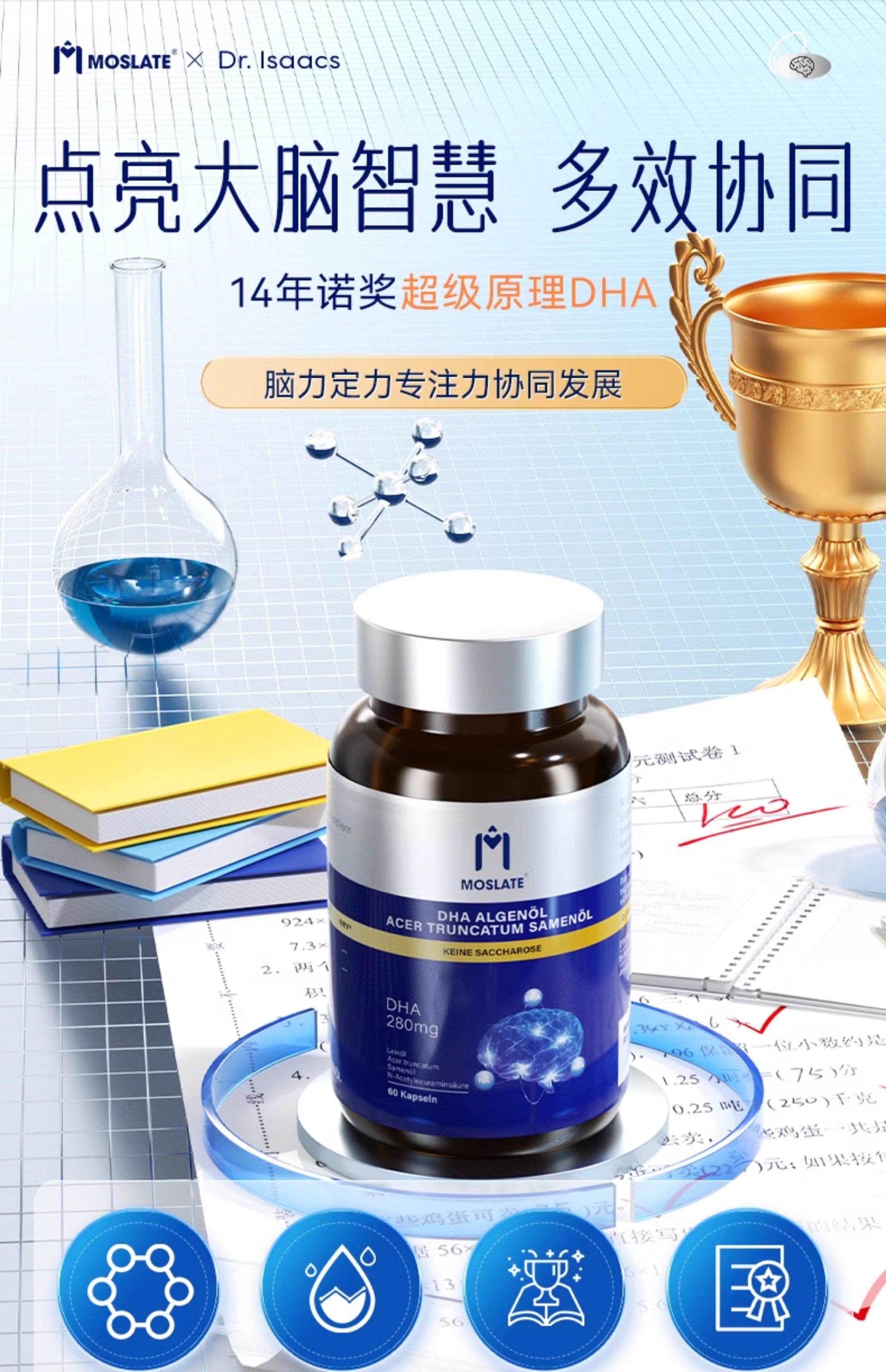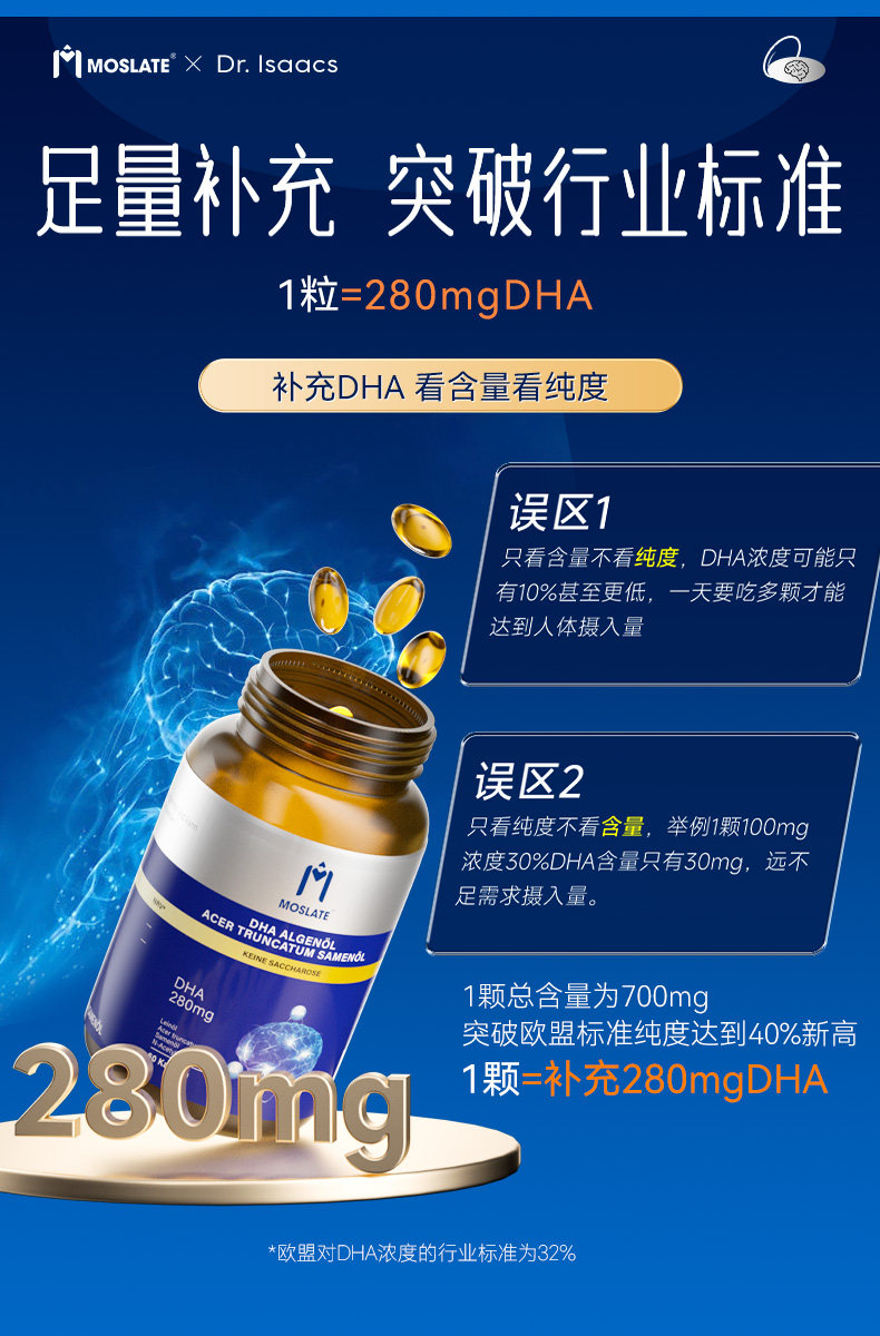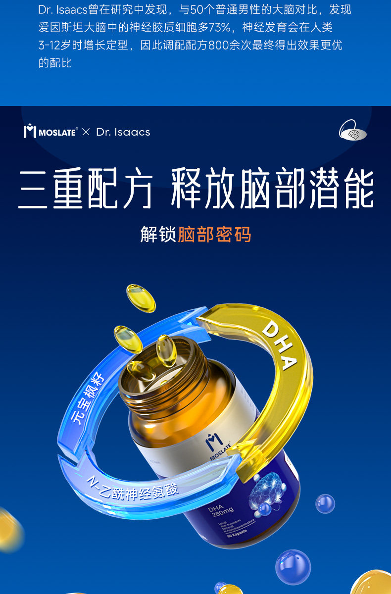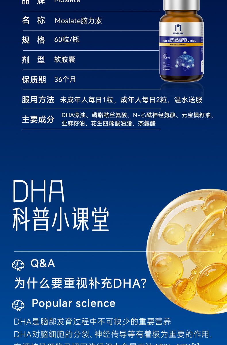 【8国专利】moslate藻油dha补脑记忆力神经酸高中学生青少年儿童