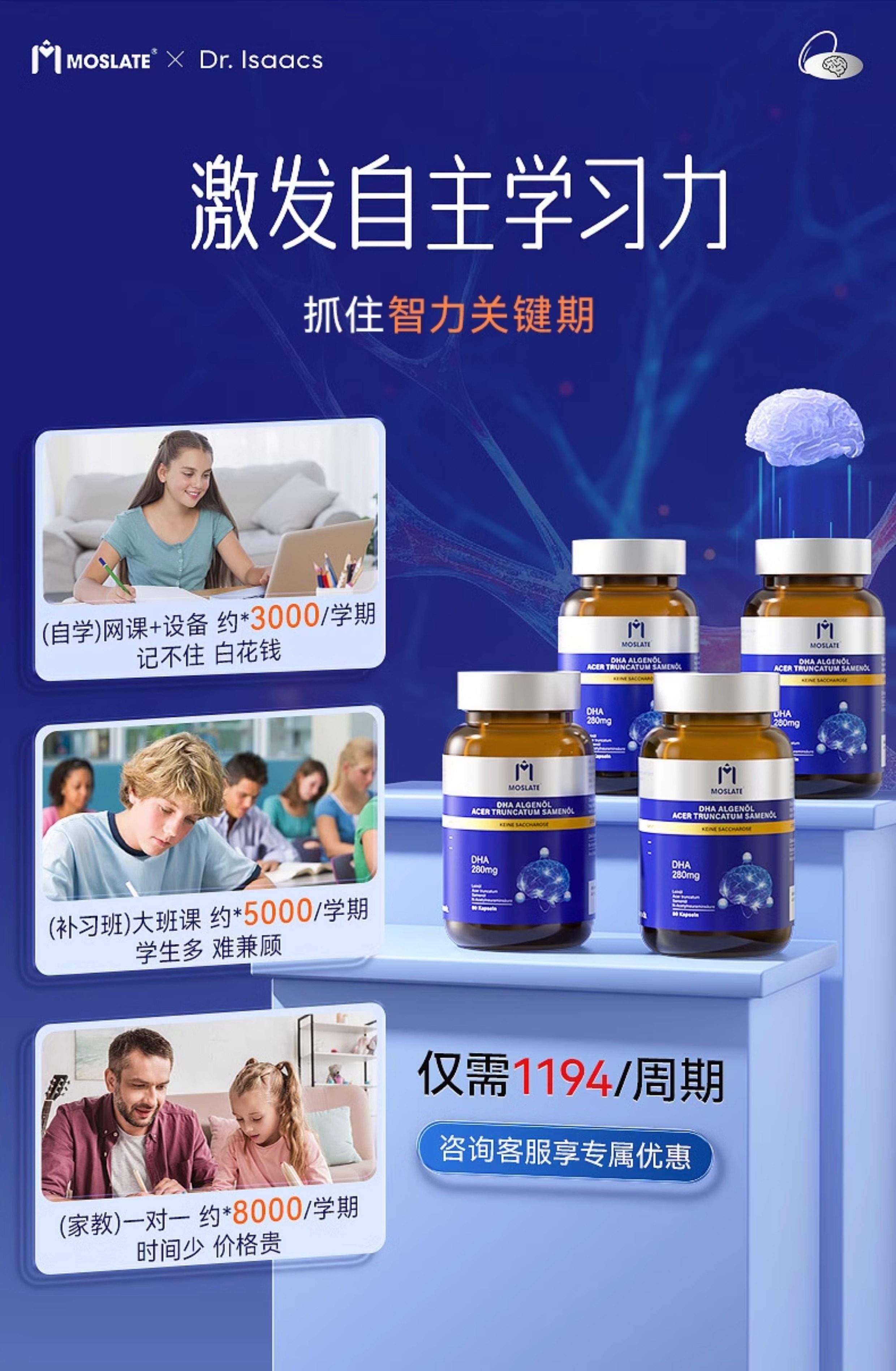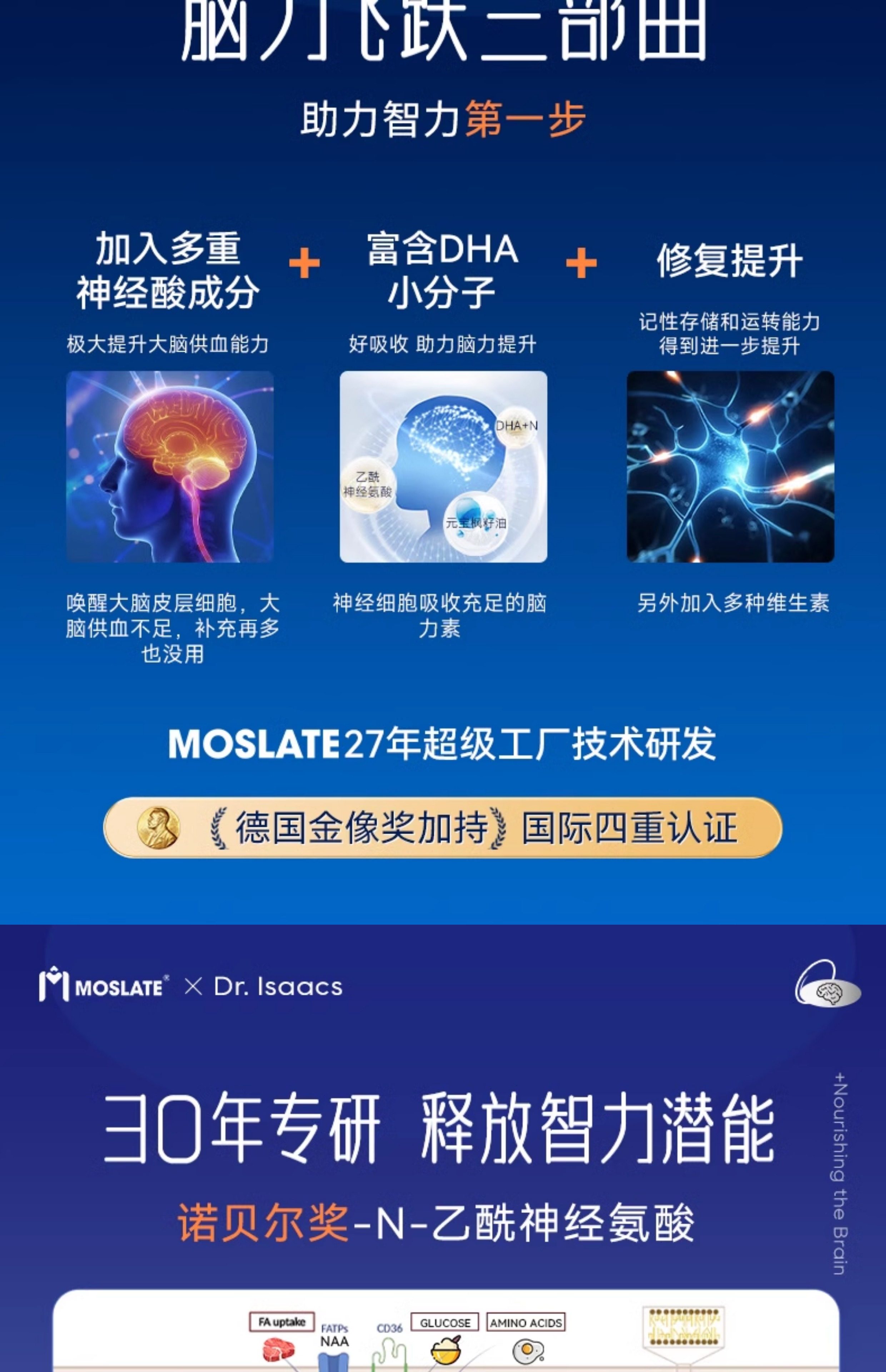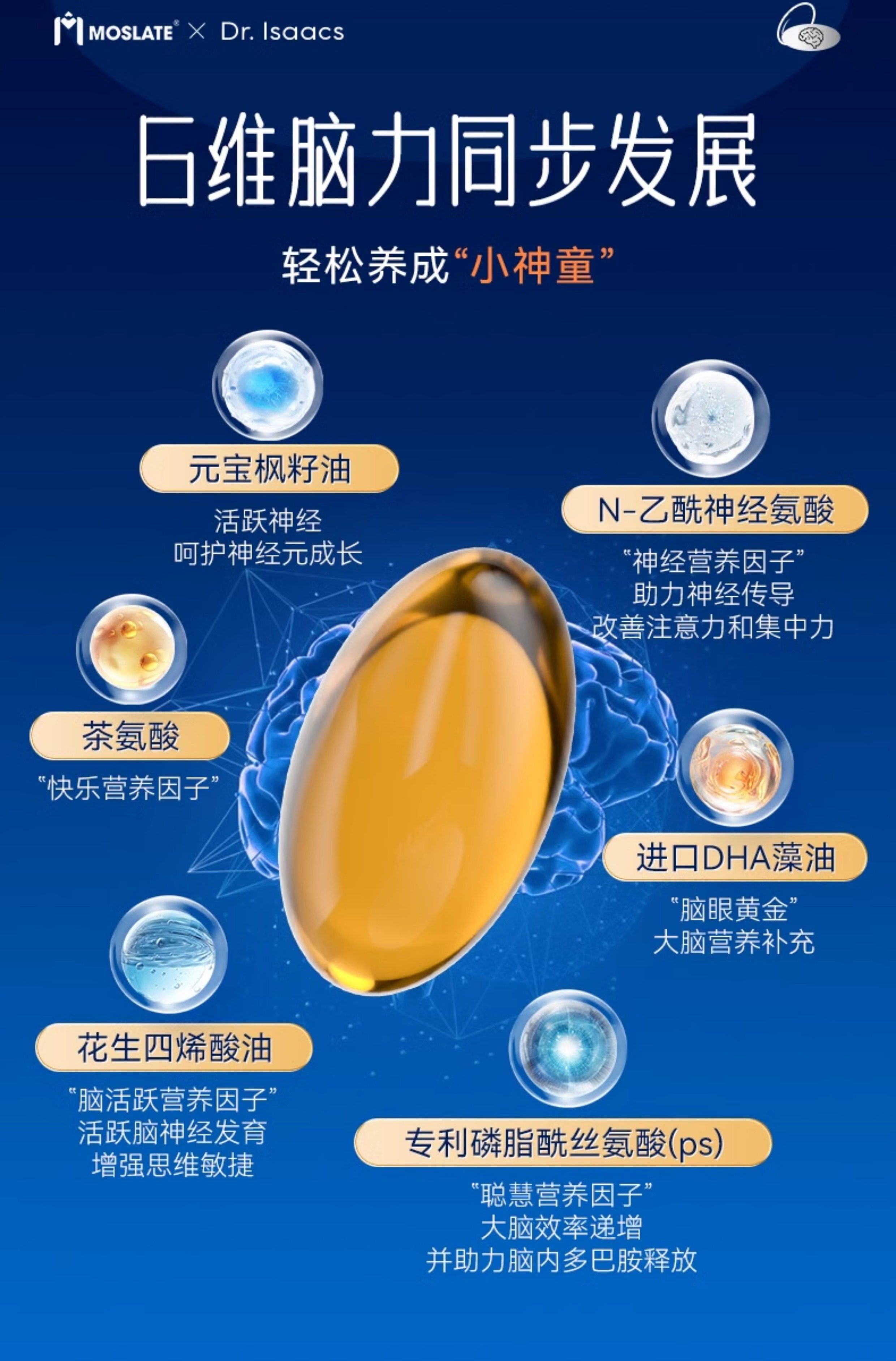 【8国专利】moslate藻油dha补脑记忆力神经酸高中学生青少年儿童