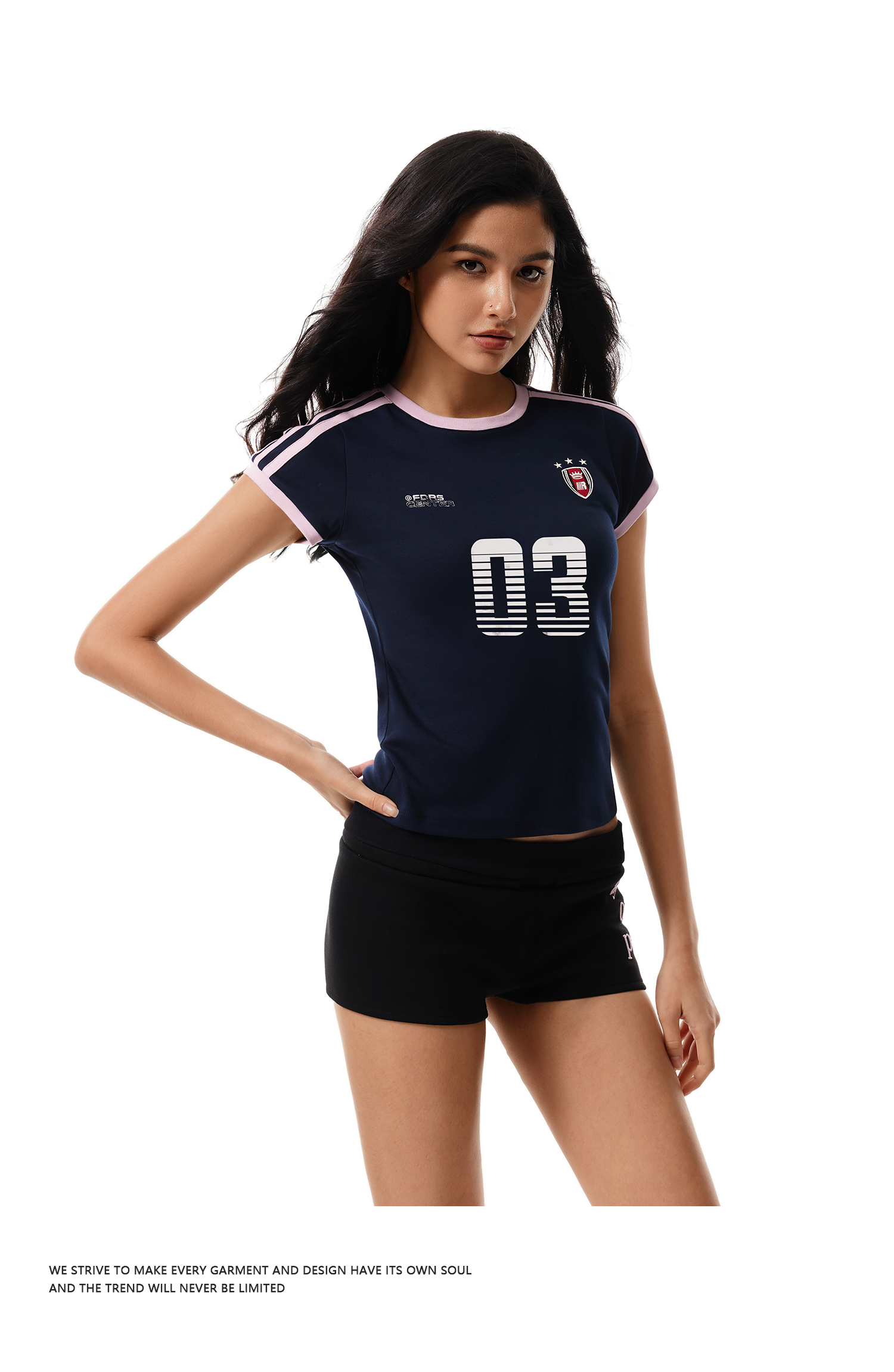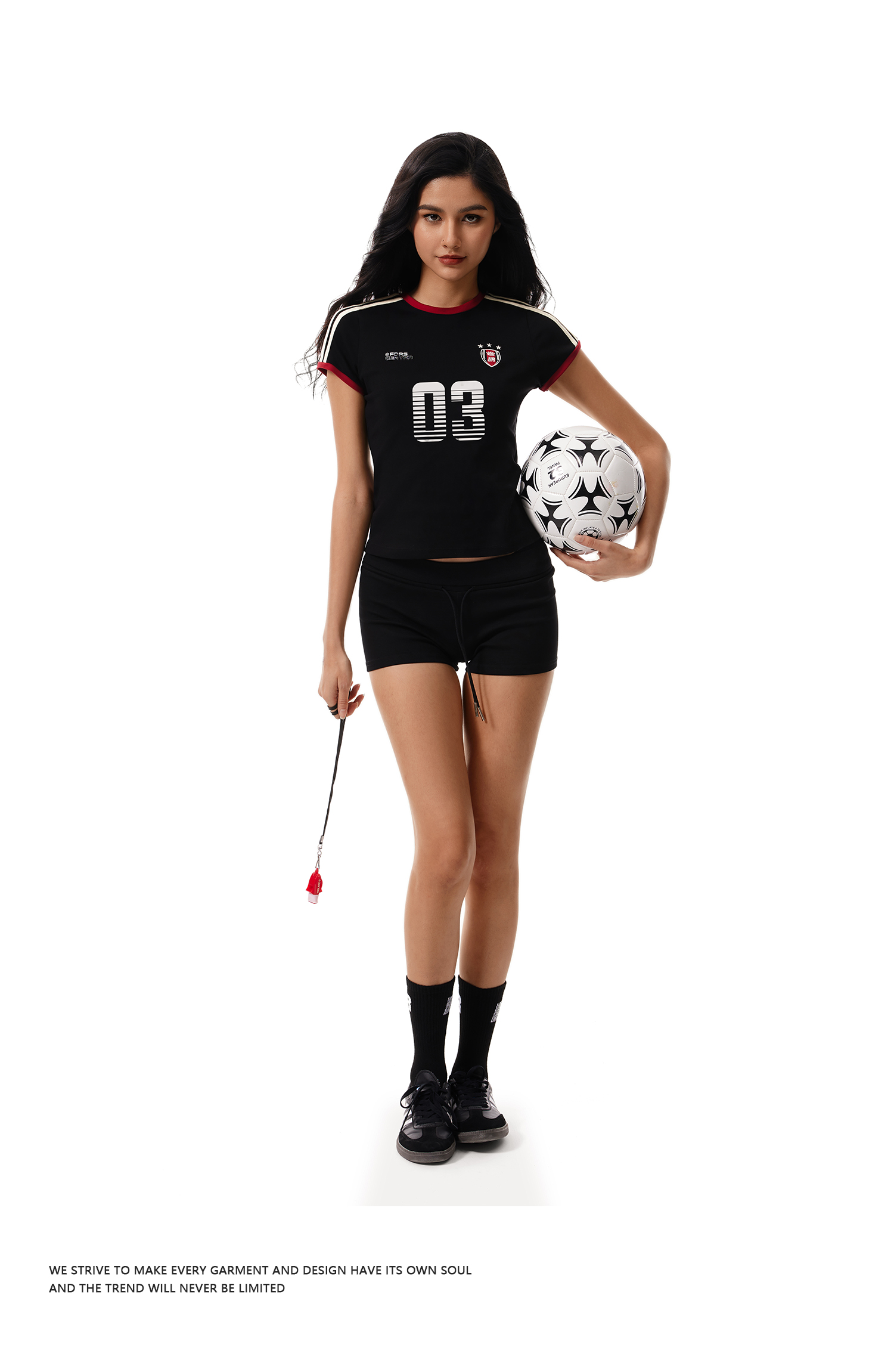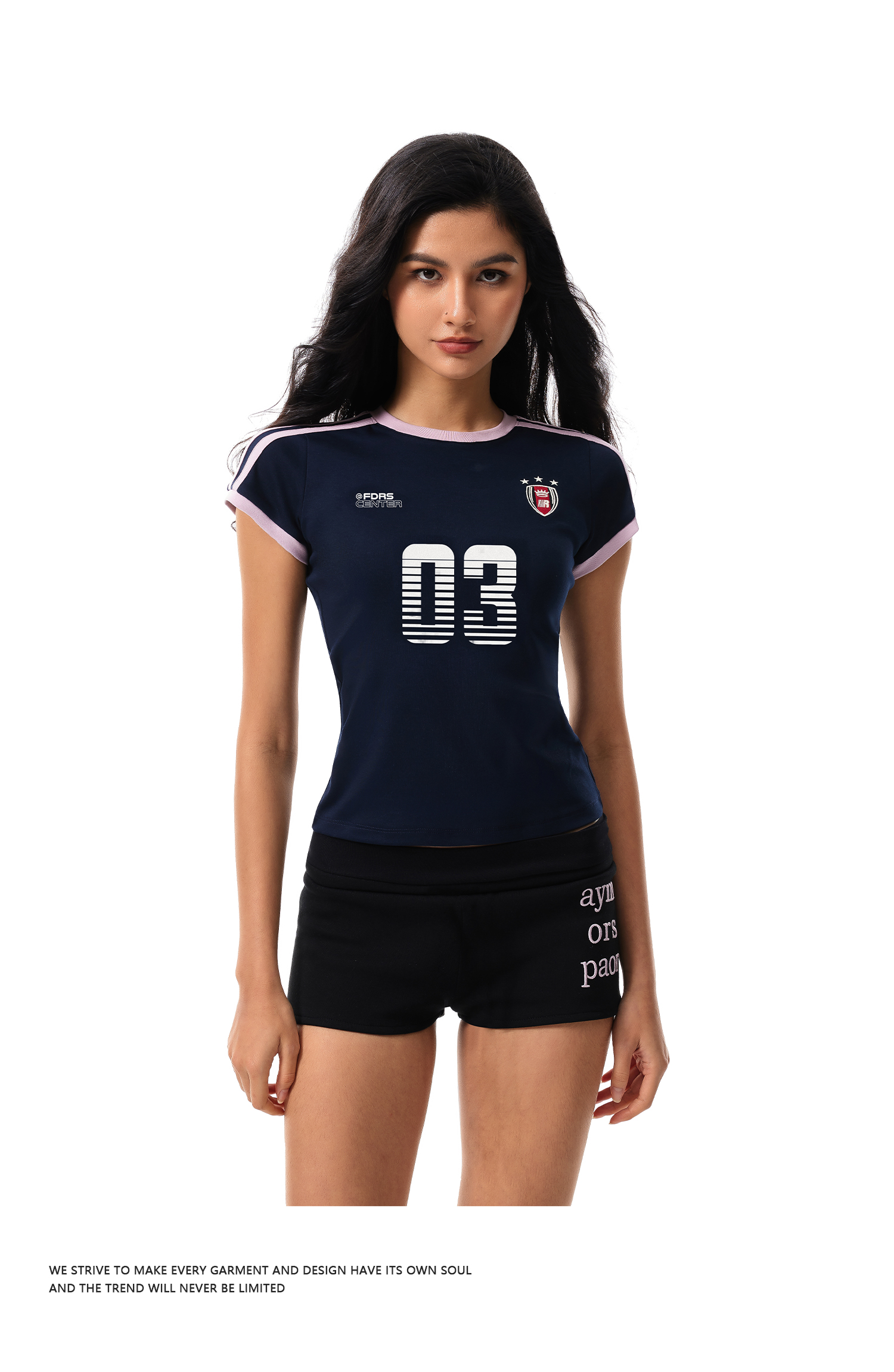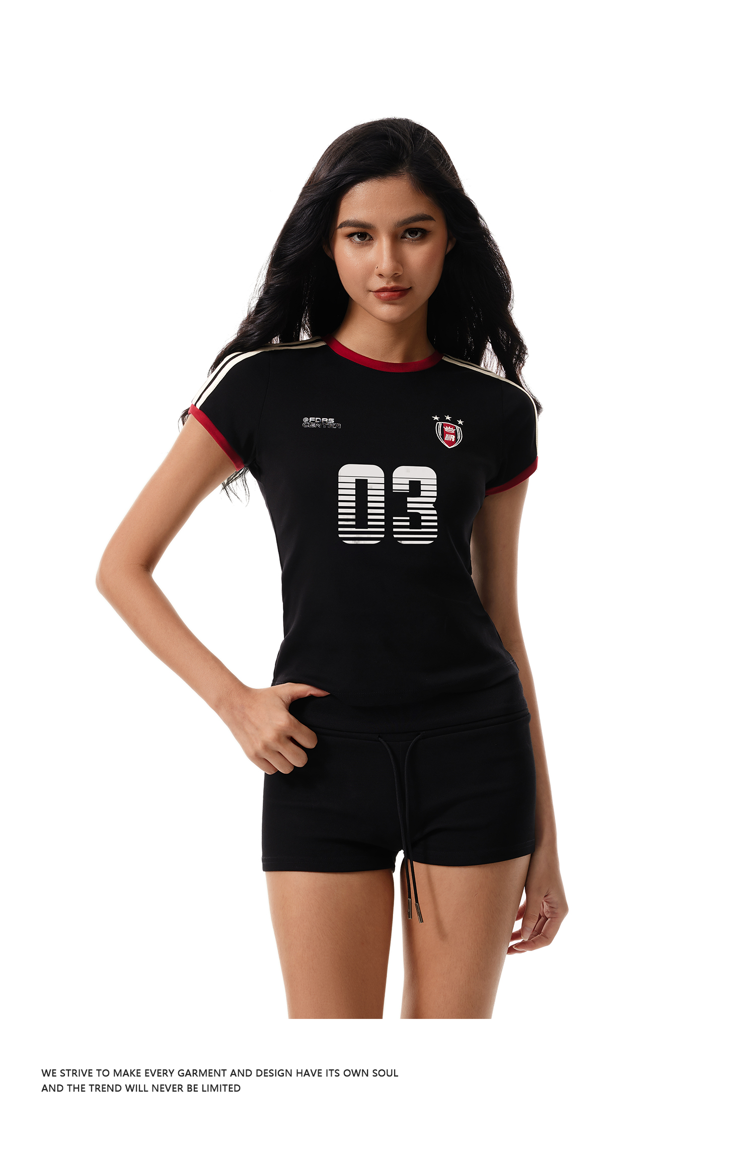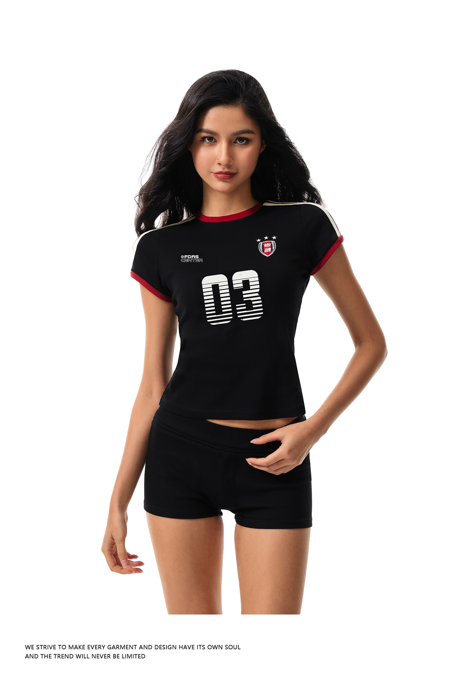 FDR官方店 辣妹复古03印花织带短袖女夏季修身运动t恤上衣