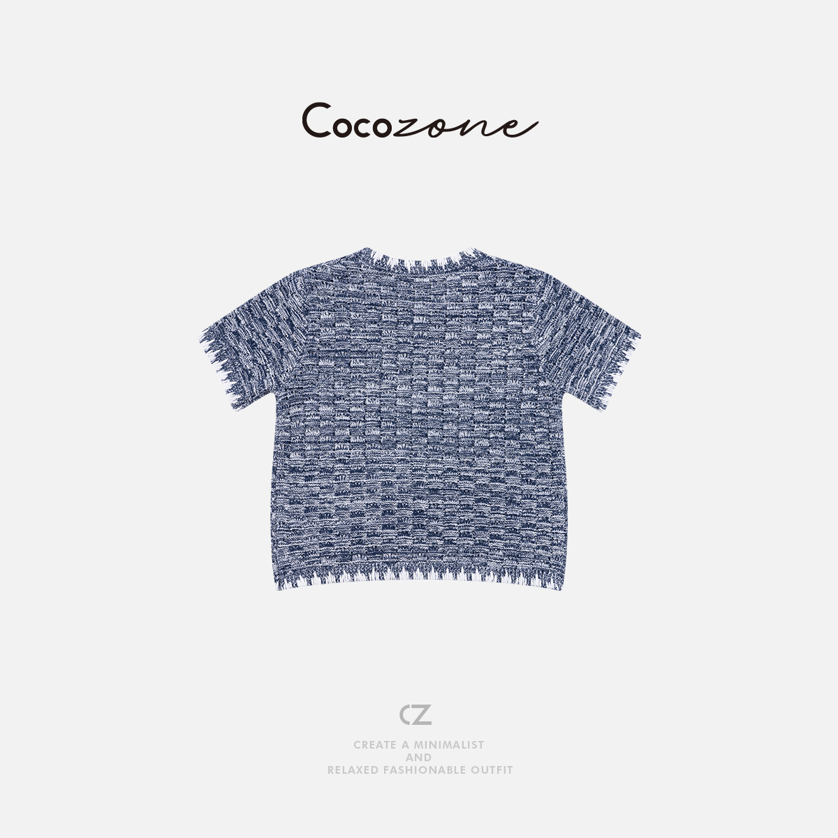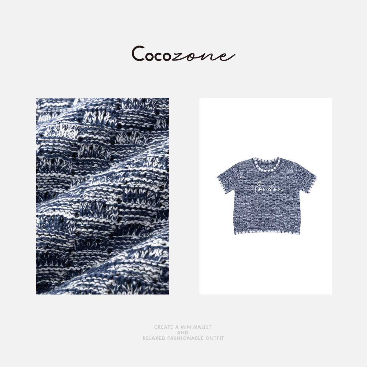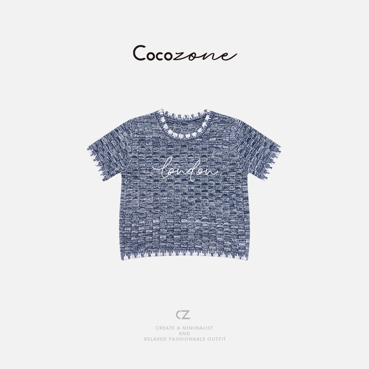 COCO ZONE 刘一一2025新款撞色刺绣字母短袖针织上衣CD2A0637