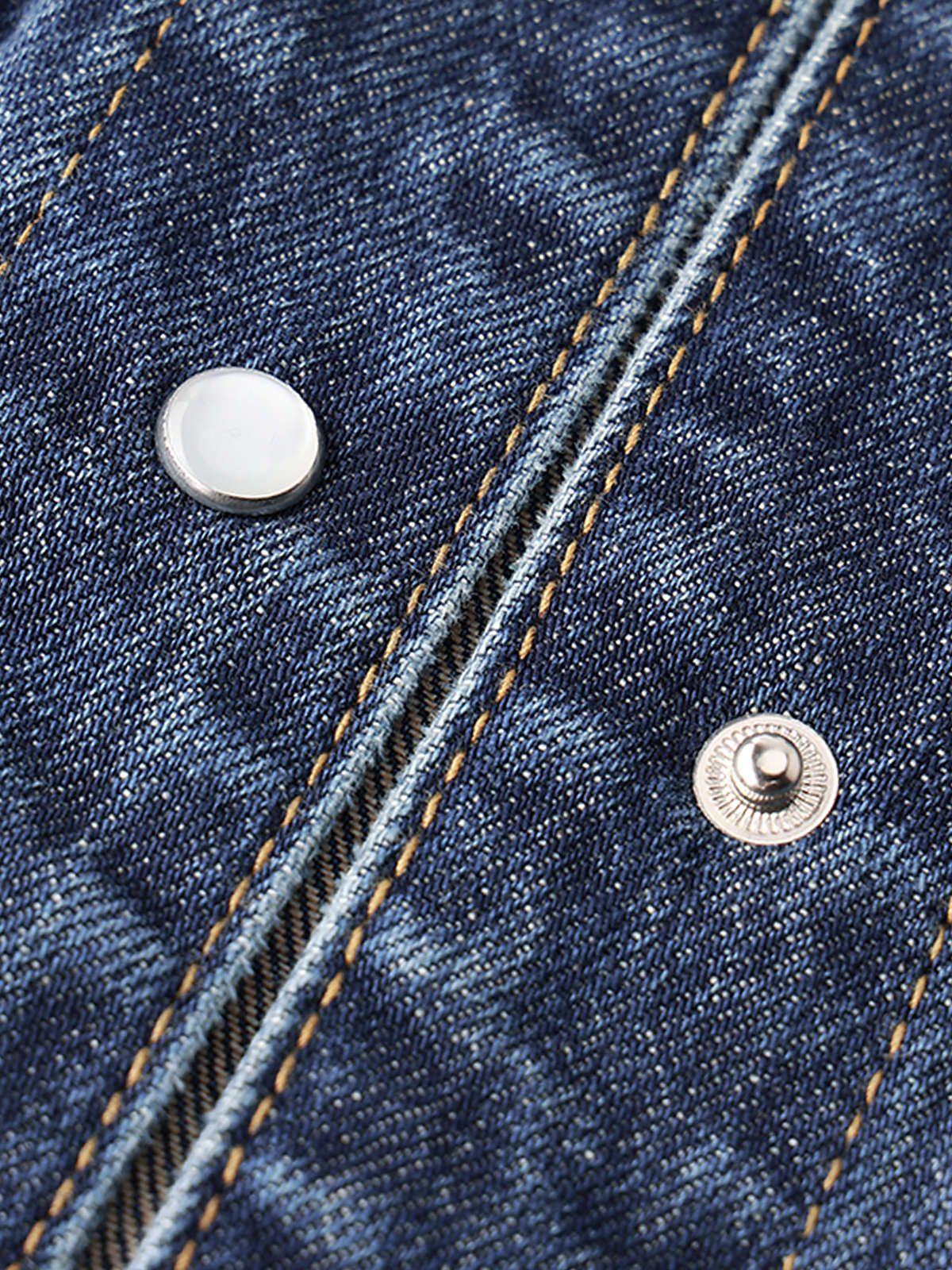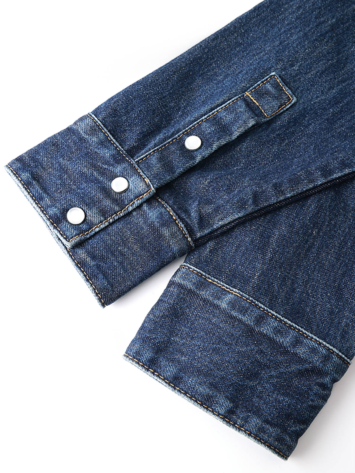COCO ZONE 100棉复古翻领休闲牛仔衬衫经典单排扣外套24C10261