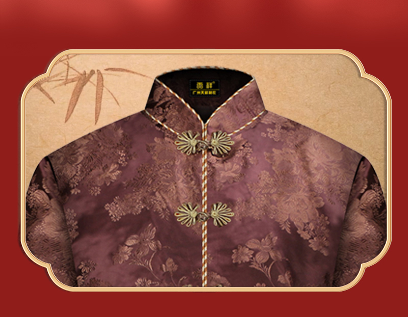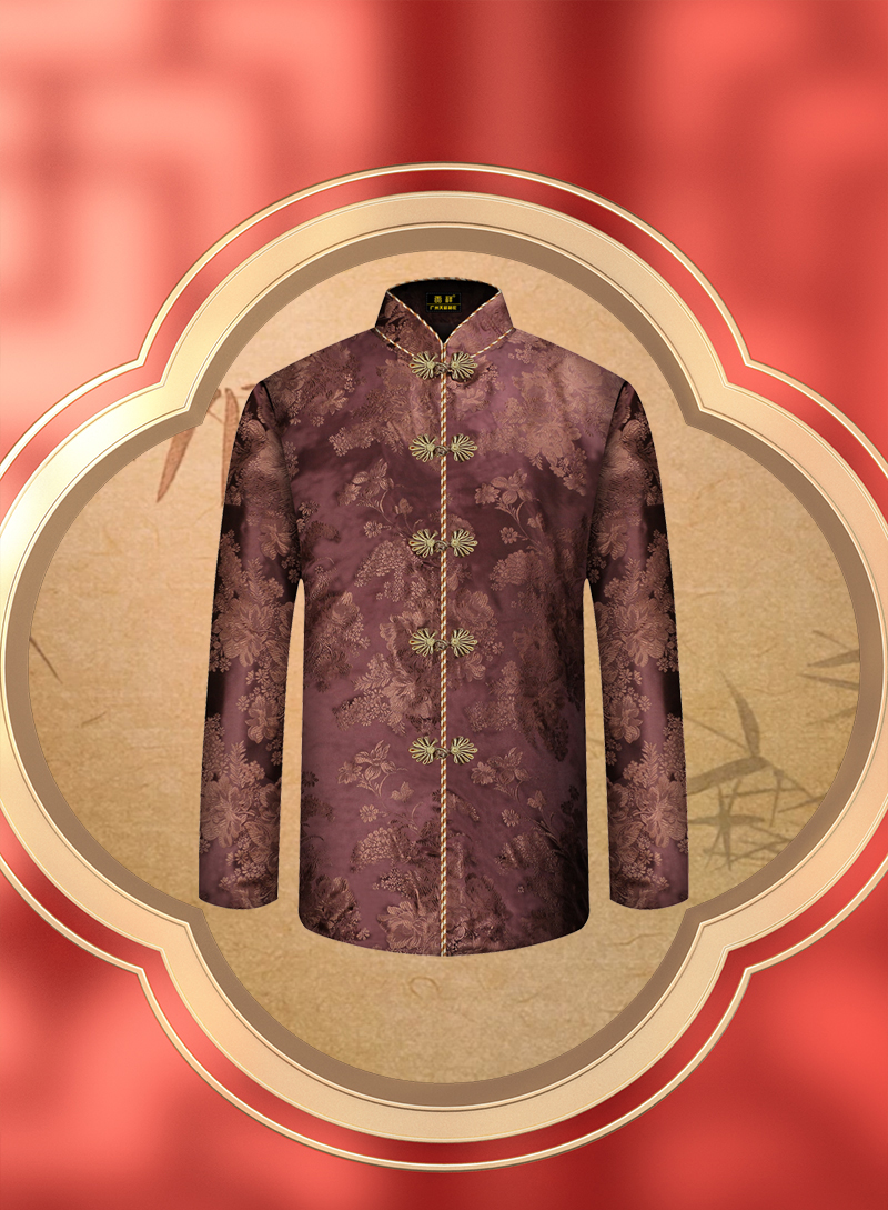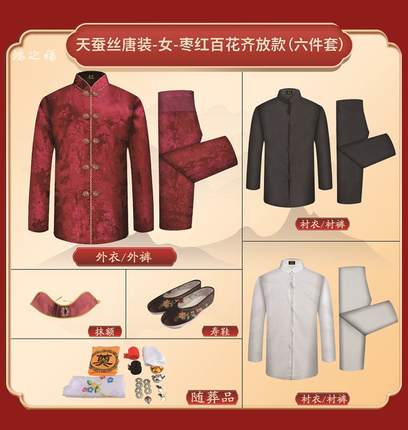 女士寿衣天蚕丝唐装-枣红暗纹牡丹薄款6件套寿衣寿服套装