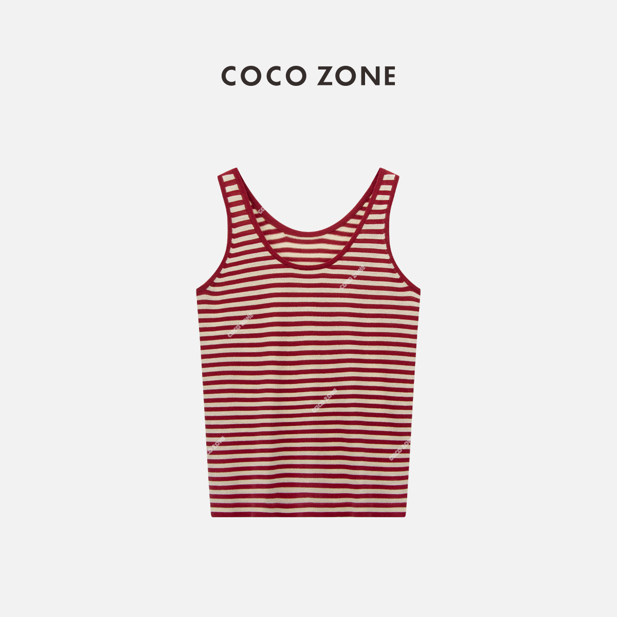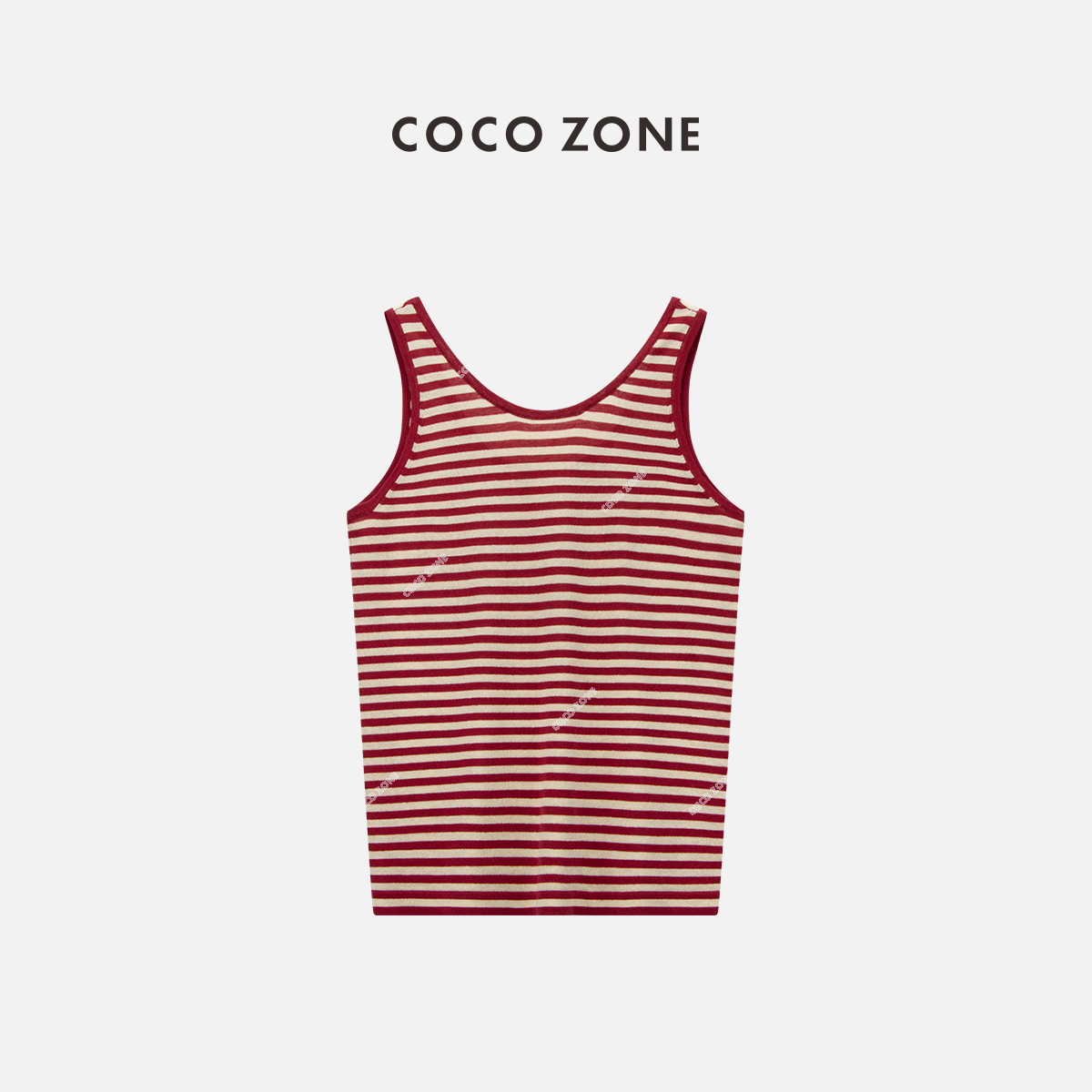 COCO ZONE简约拼色条纹无袖针织衫时尚外穿圆领背心上衣CC2B0652