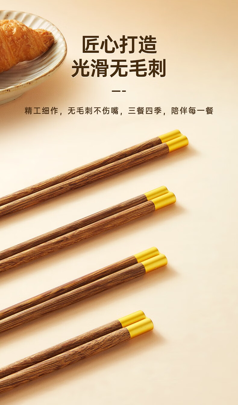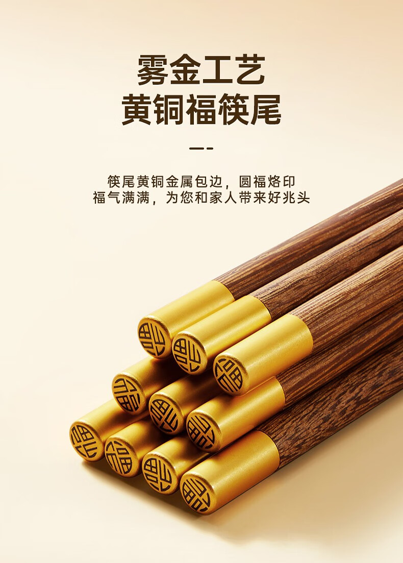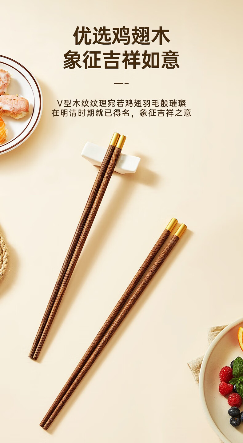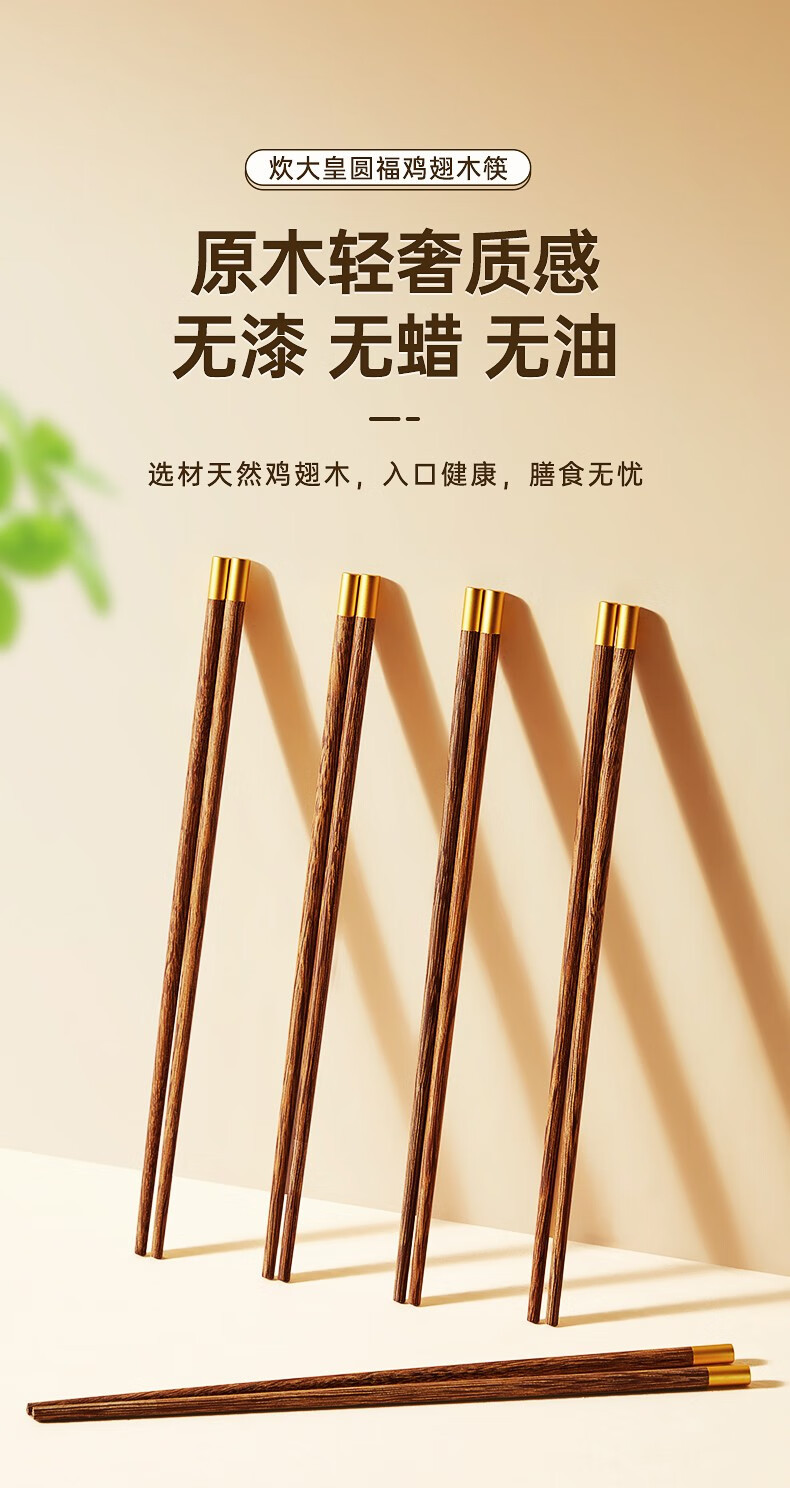 炊大皇圆福鸡翅木筷子家用金福木质筷5双装