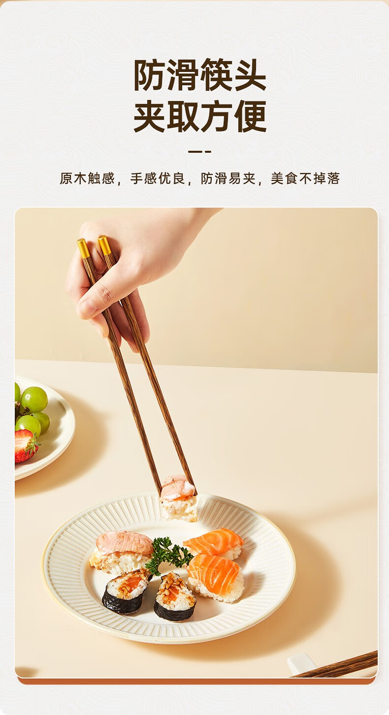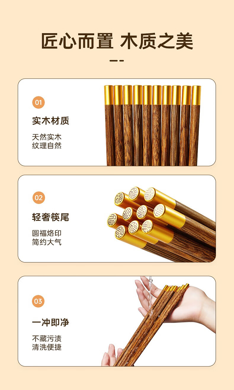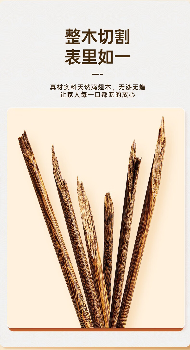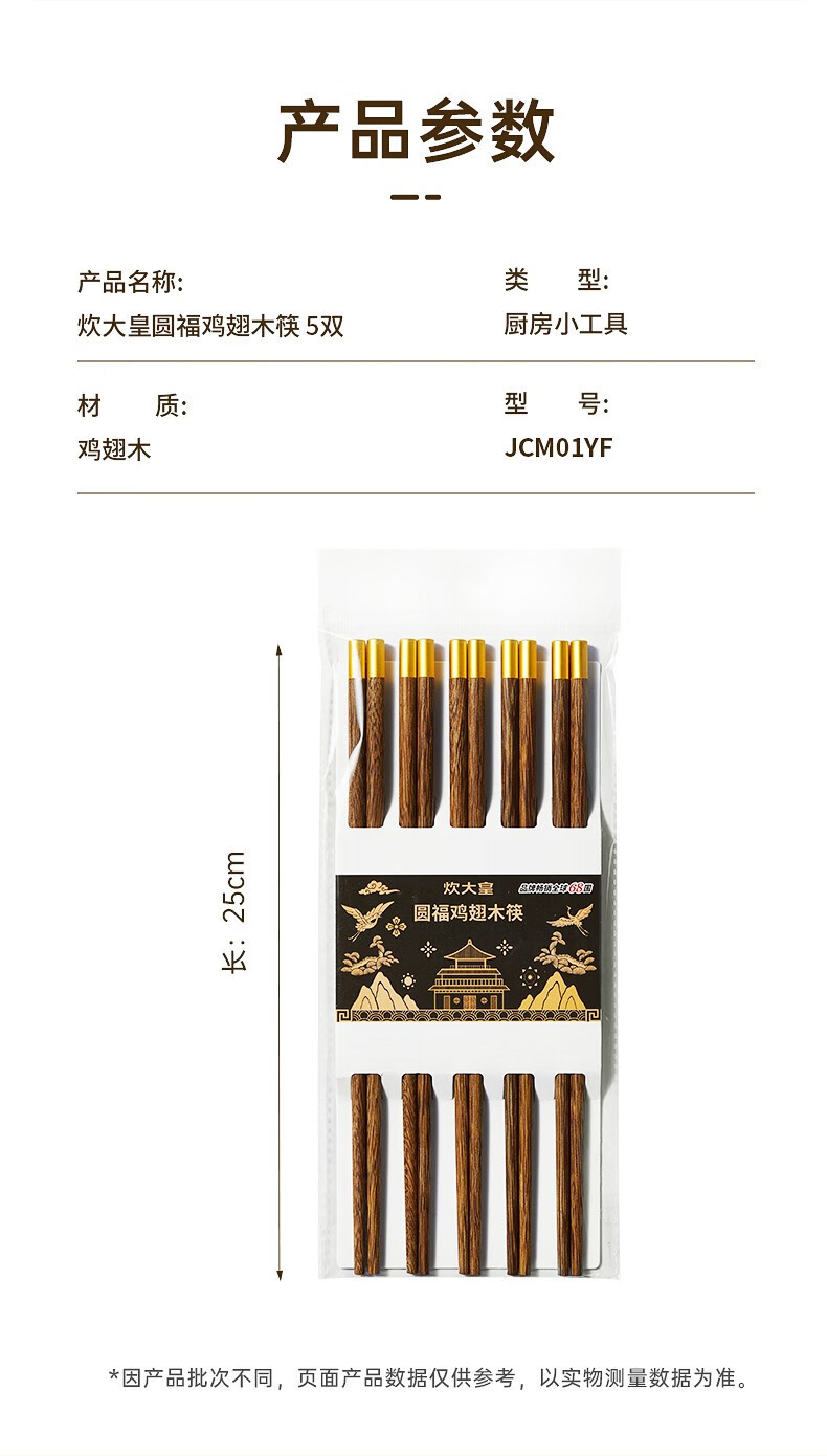 炊大皇圆福鸡翅木筷子家用金福木质筷5双装
