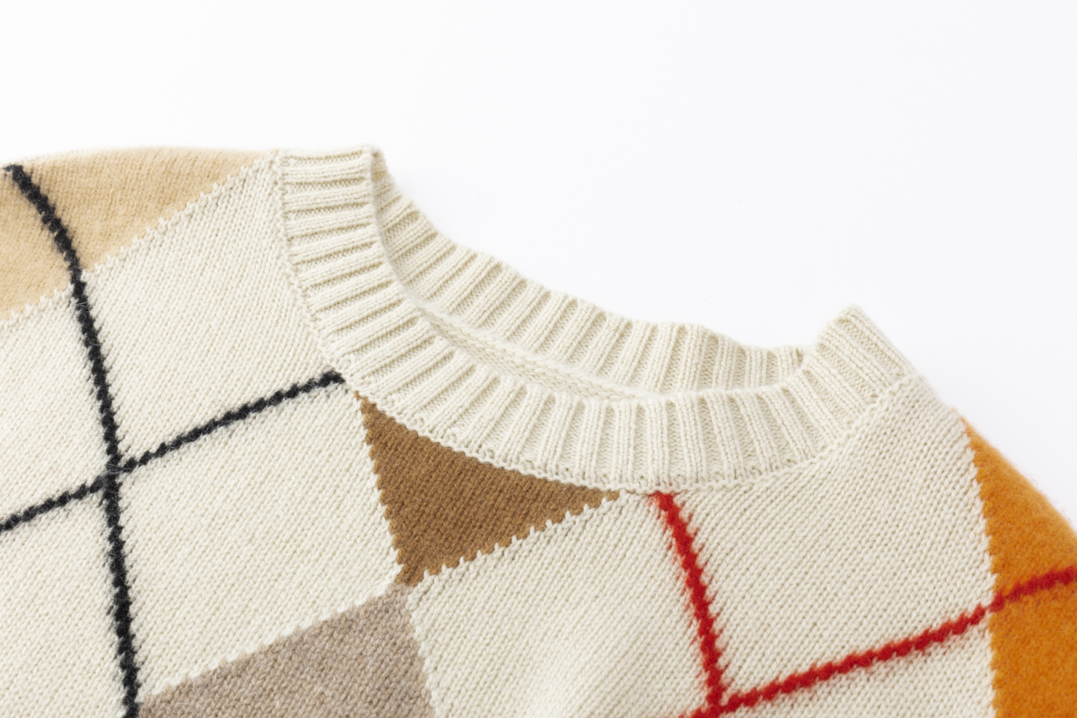COCO ZONE 时尚菱形格圆领针织衫长袖上衣CC2C2114
