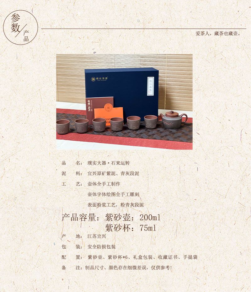 璞实大器石来运转原矿紫砂壶套装马晓君大师作品全手工制作