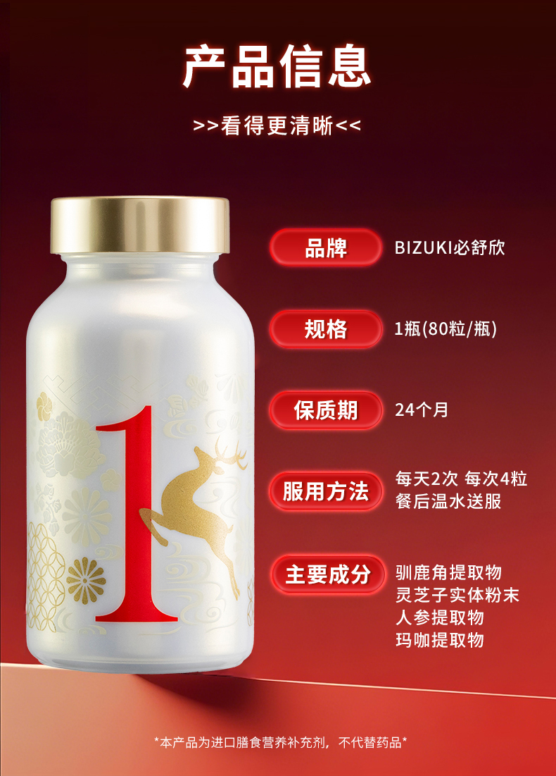 【1号胶囊旅行分享装】天然初茸血男士精力复原活力唤醒固精强肾促睾 日本原装进口BIZUKI男性1号胶囊 80粒
