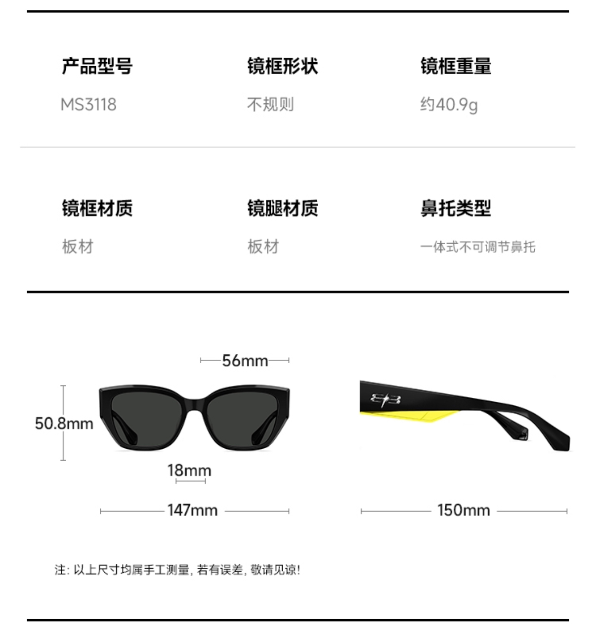 MOLSION陌森MS3118 防晒防紫外线墨镜 前卫个性潮流 板材镜架 不规则形 太阳眼镜 男女同款情侣款