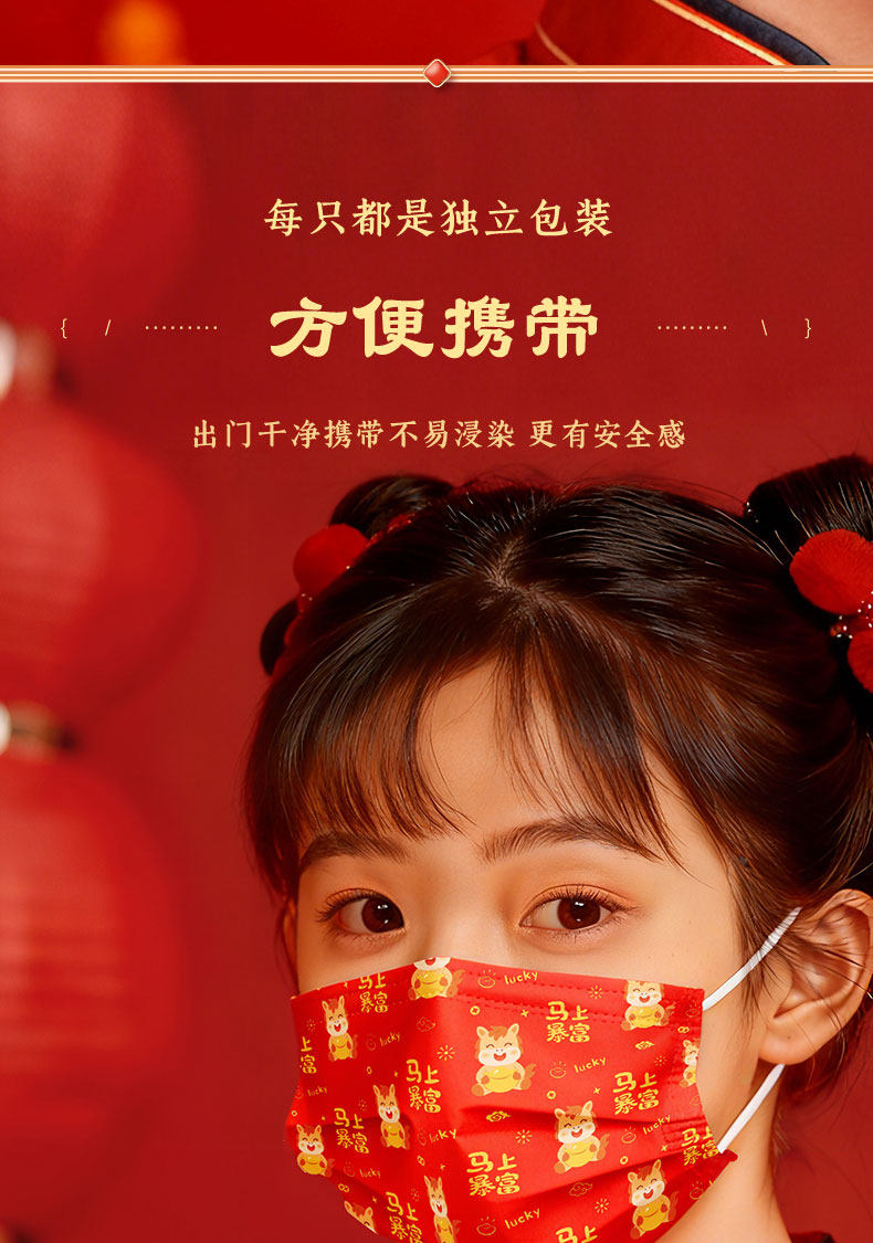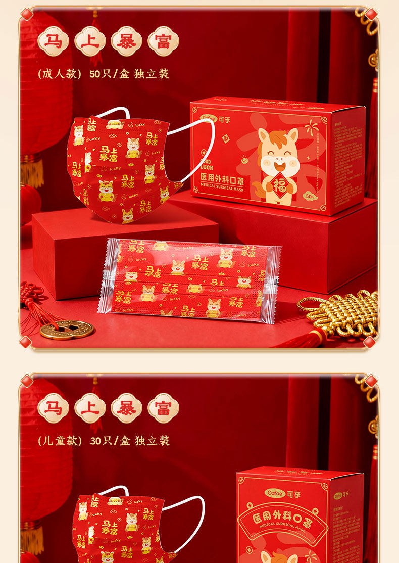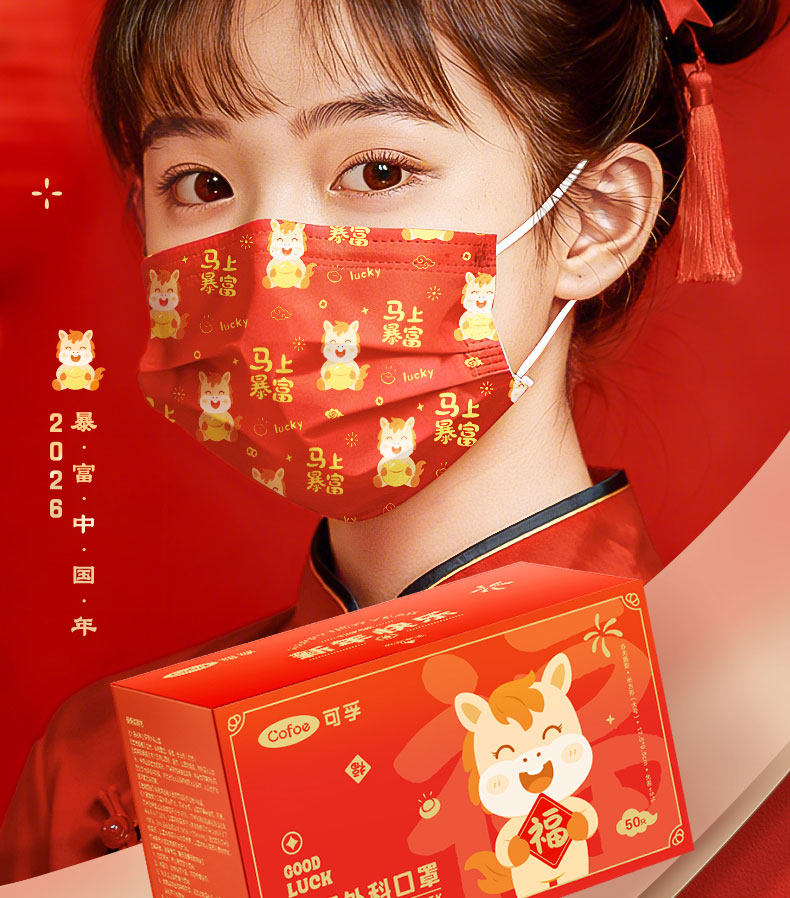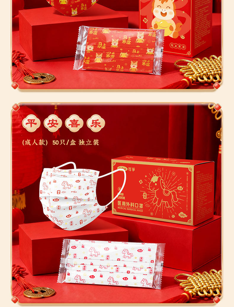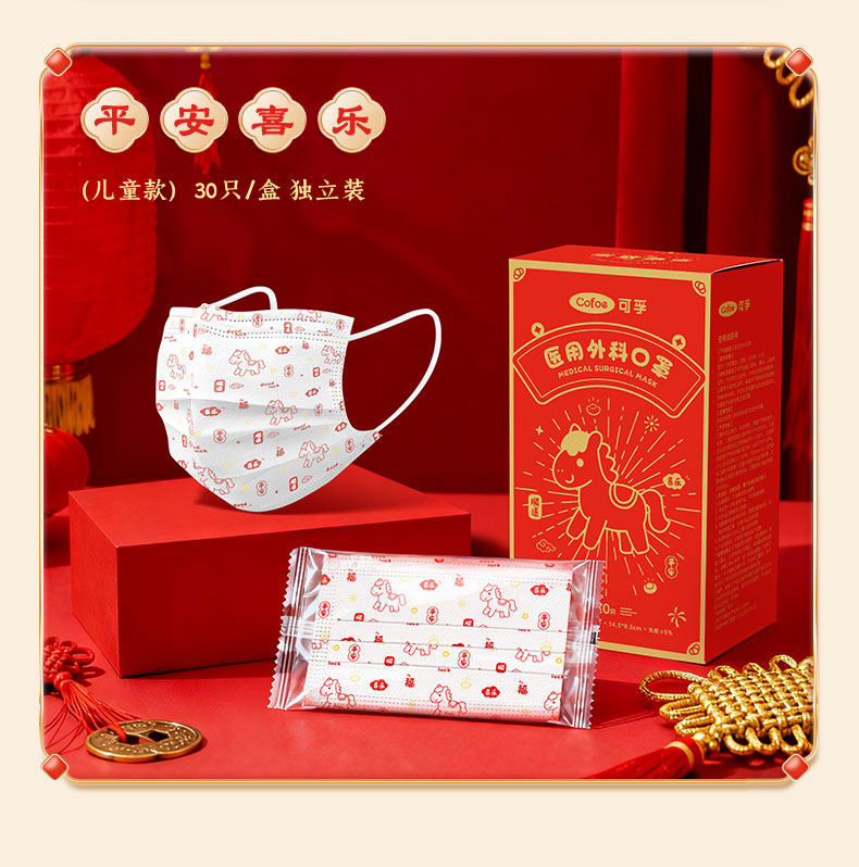 【2026马年】可孚医用外科口罩一次性医疗成人儿童单独包装正品红色