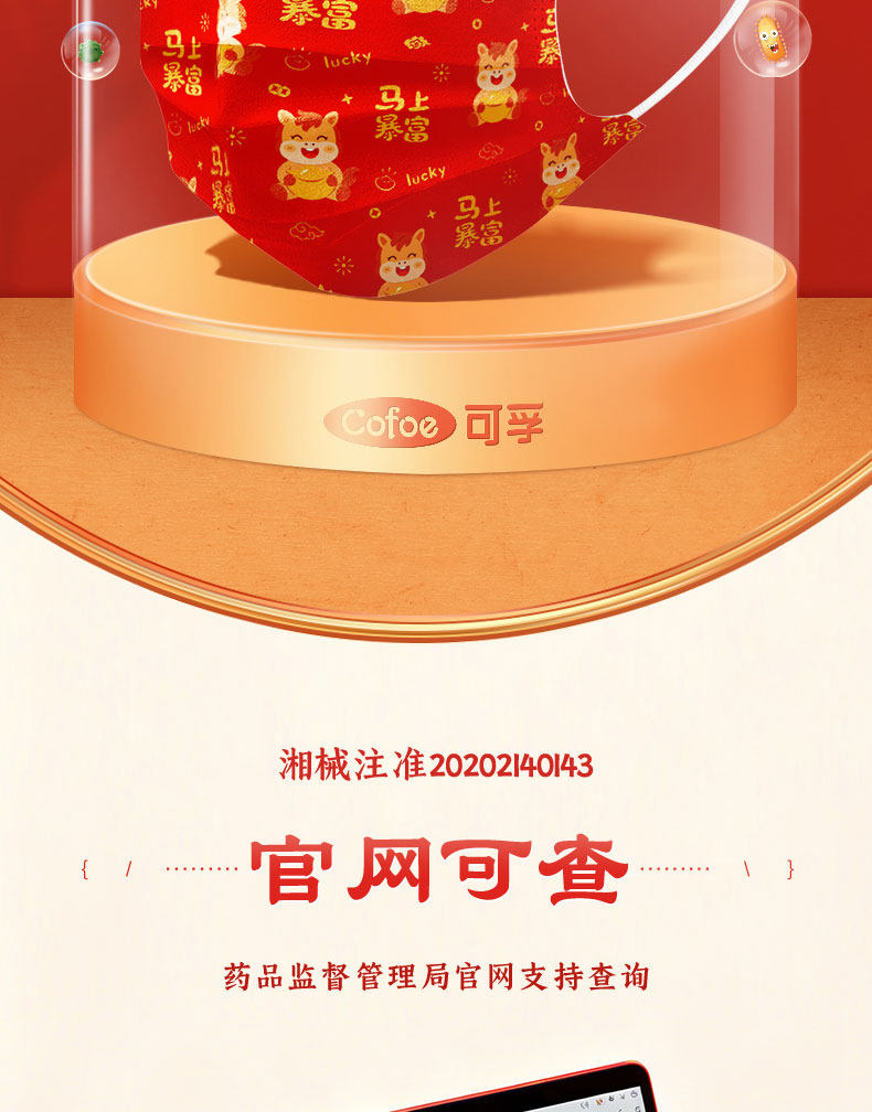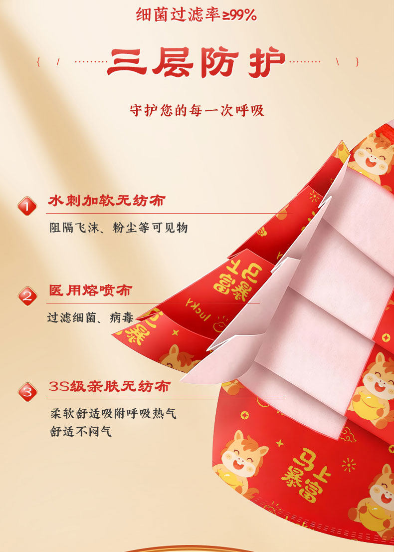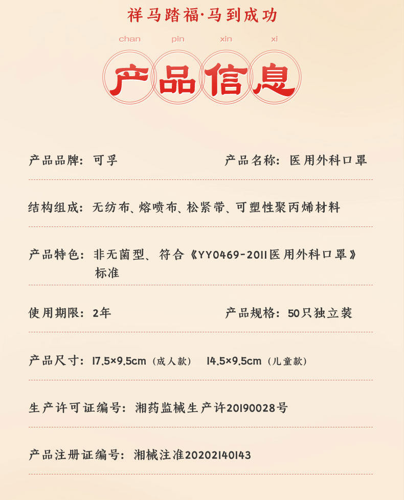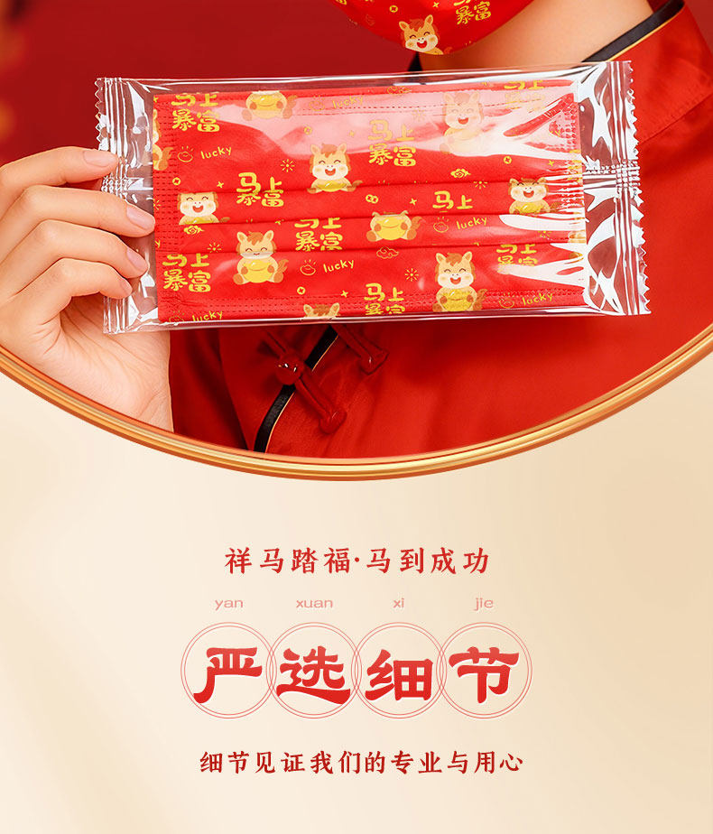 【2026马年】可孚医用外科口罩一次性医疗成人儿童单独包装正品红色
