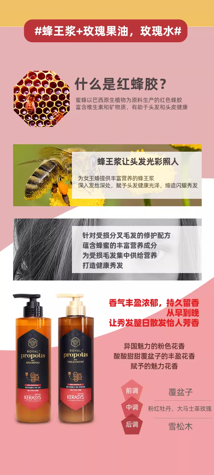 韩国爱敬科娜洗丝蜂胶洗发水护发素套装 受损滋养温和清洁改善毛躁