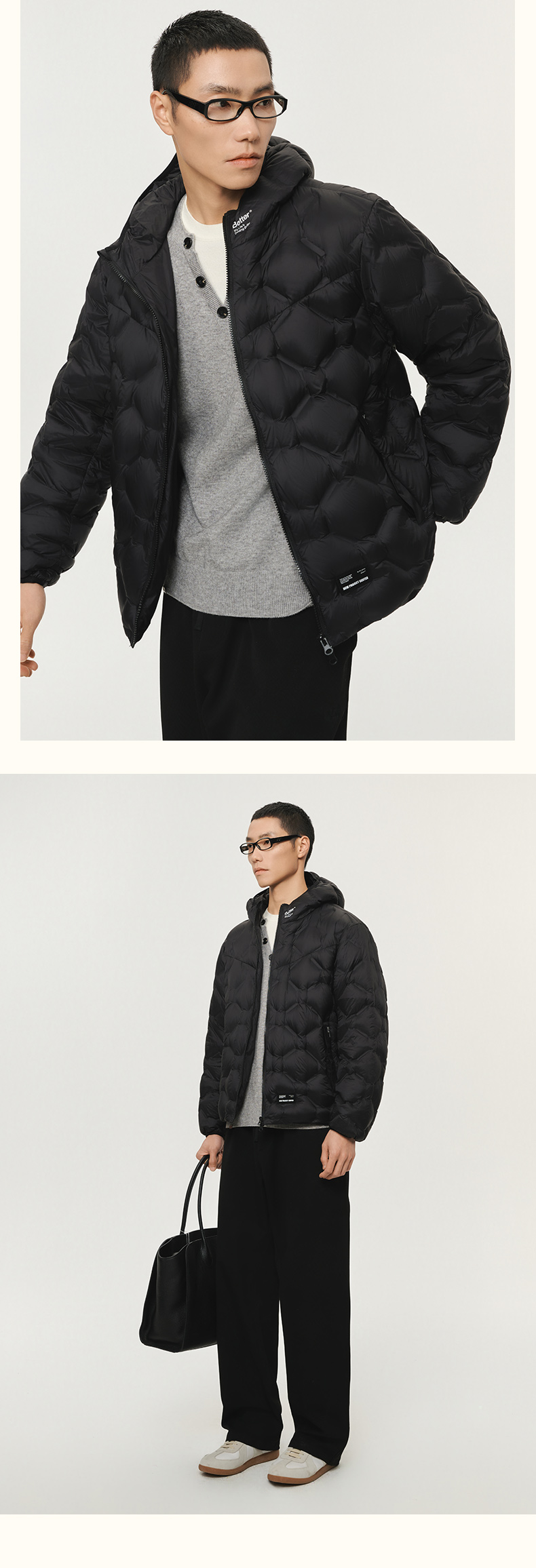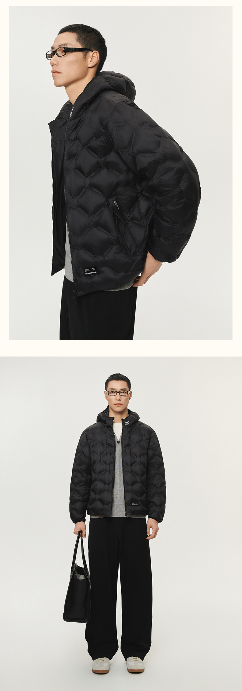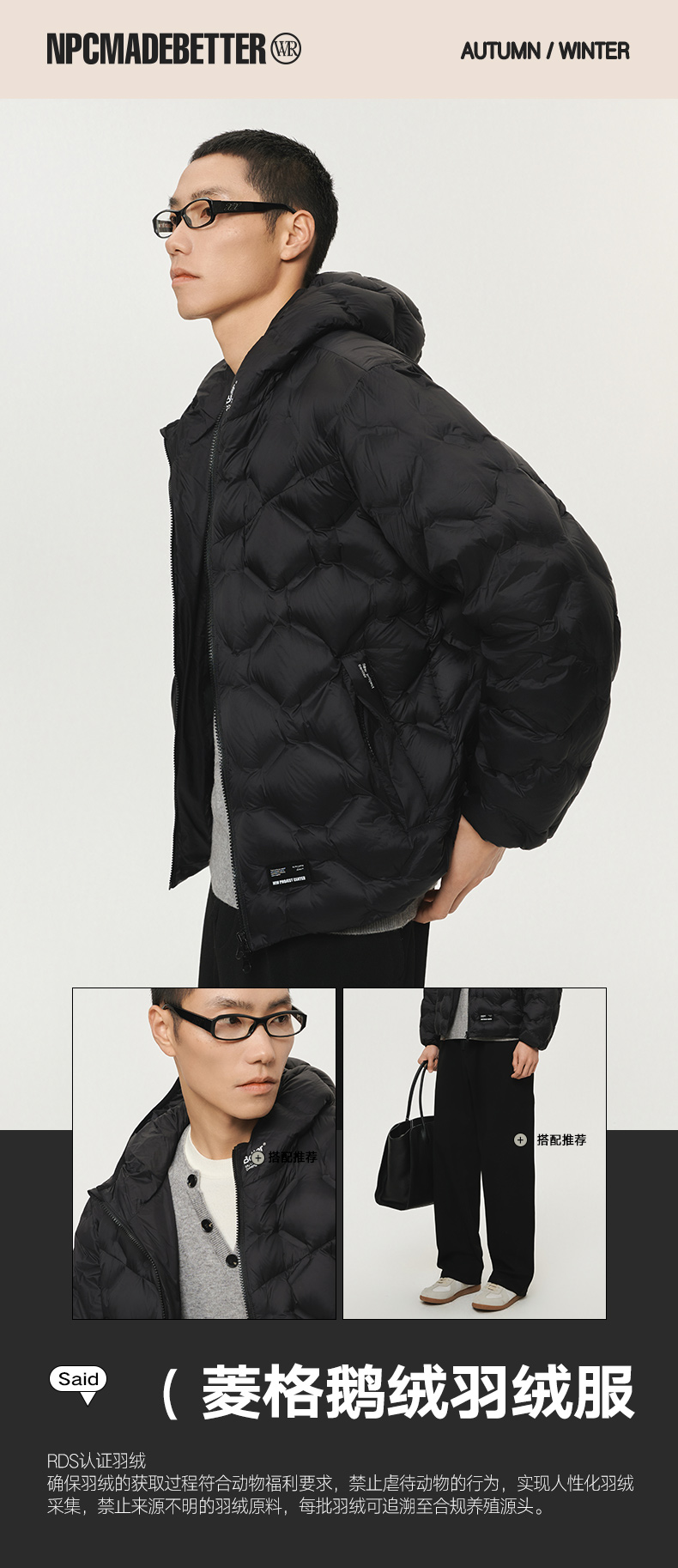 NPC潮牌无缝压胶菱形格90%鹅绒羽绒服15D连帽保暖秋冬NP5ADJ17