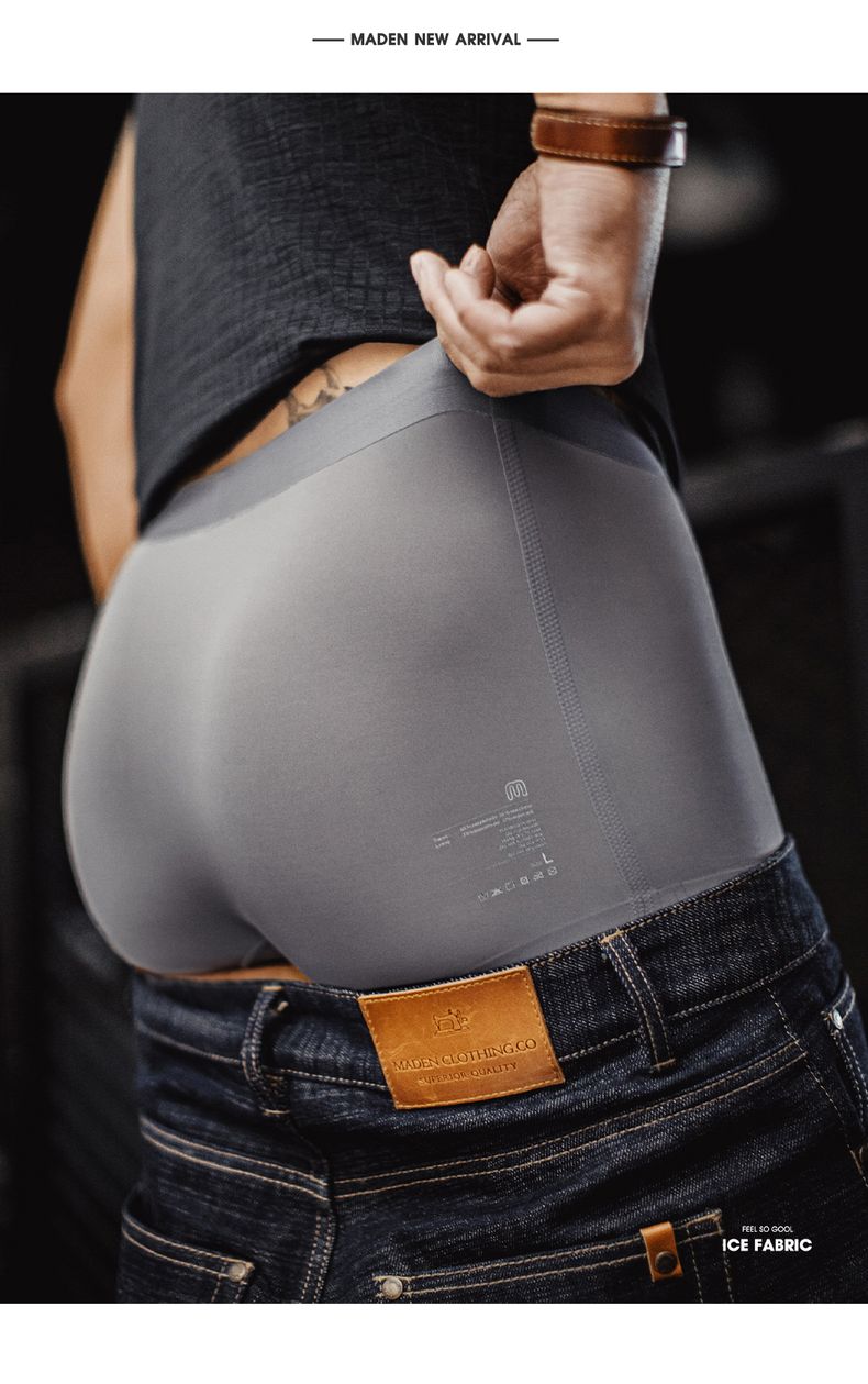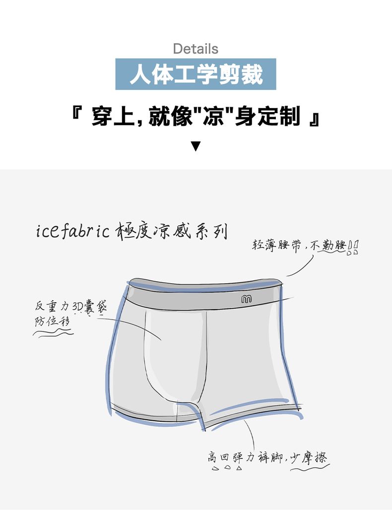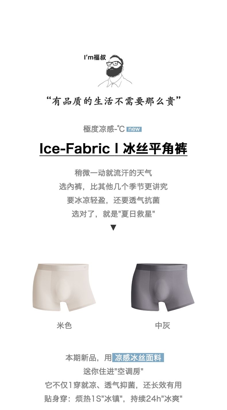 工装优选极度凉感透气冰感无痕薄款平角内裤7A抗菌冰丝四角短裤男