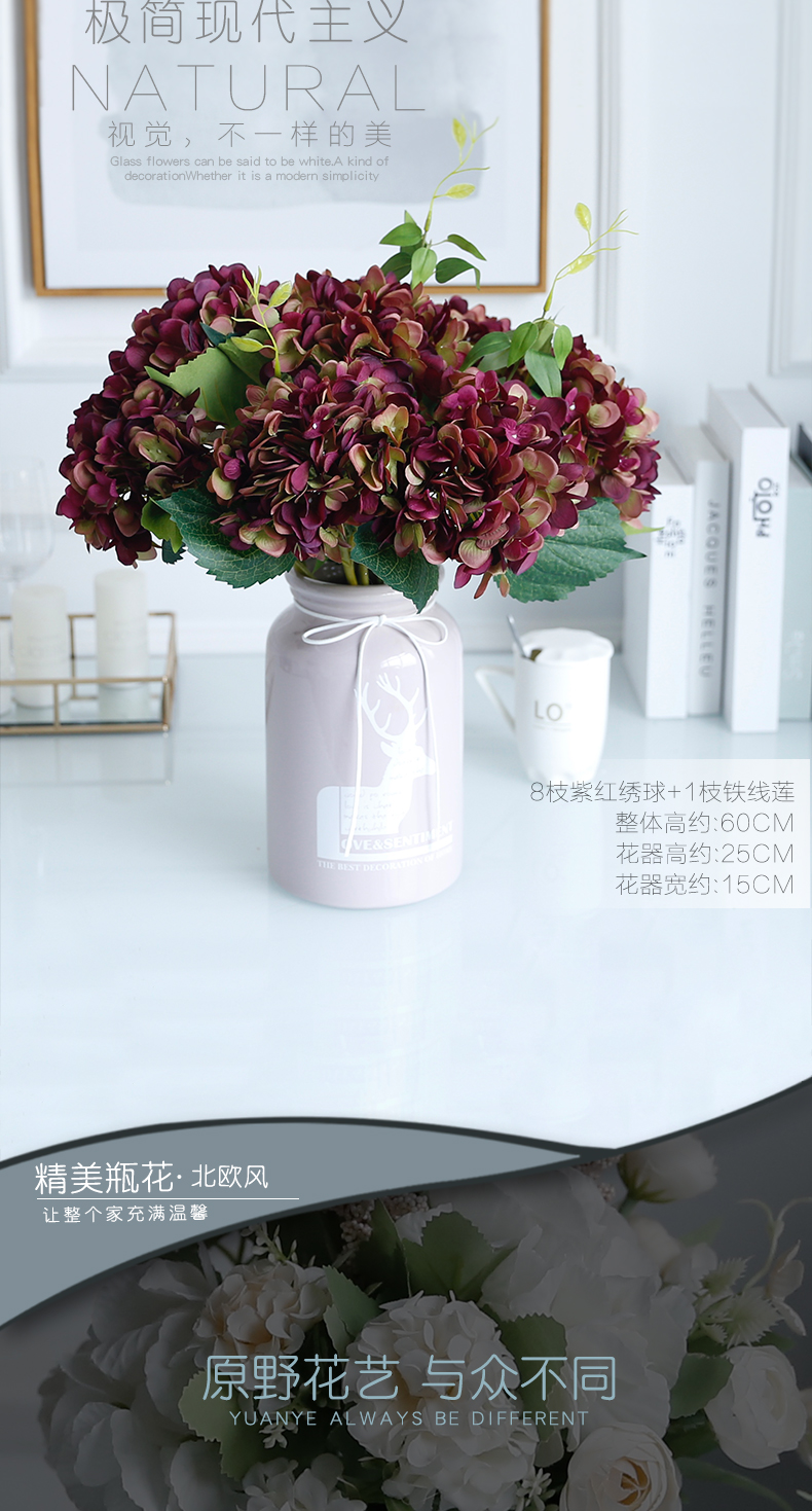 绣球花仿真花束北欧风高档客厅陶瓷假花瓶小清新独特个性卧室书房