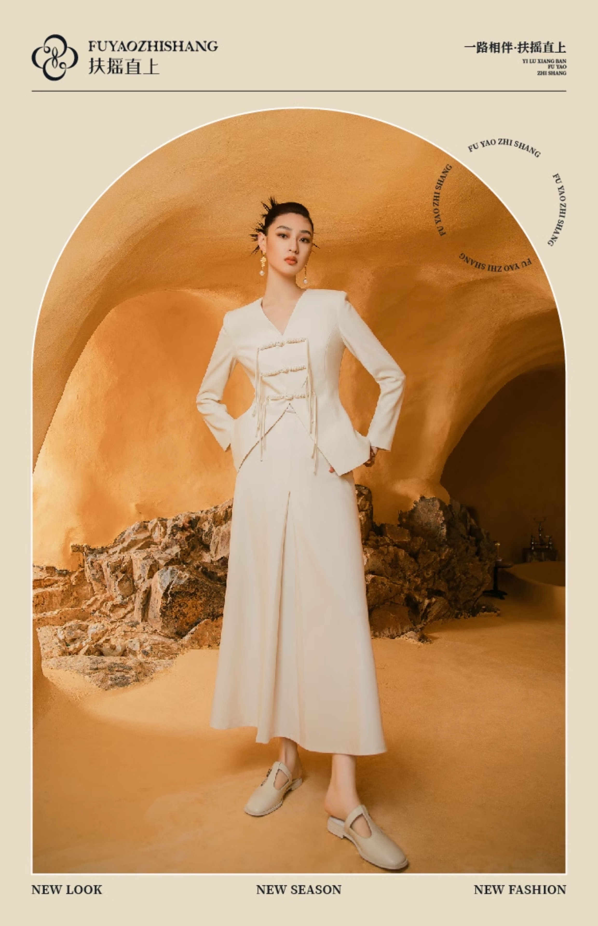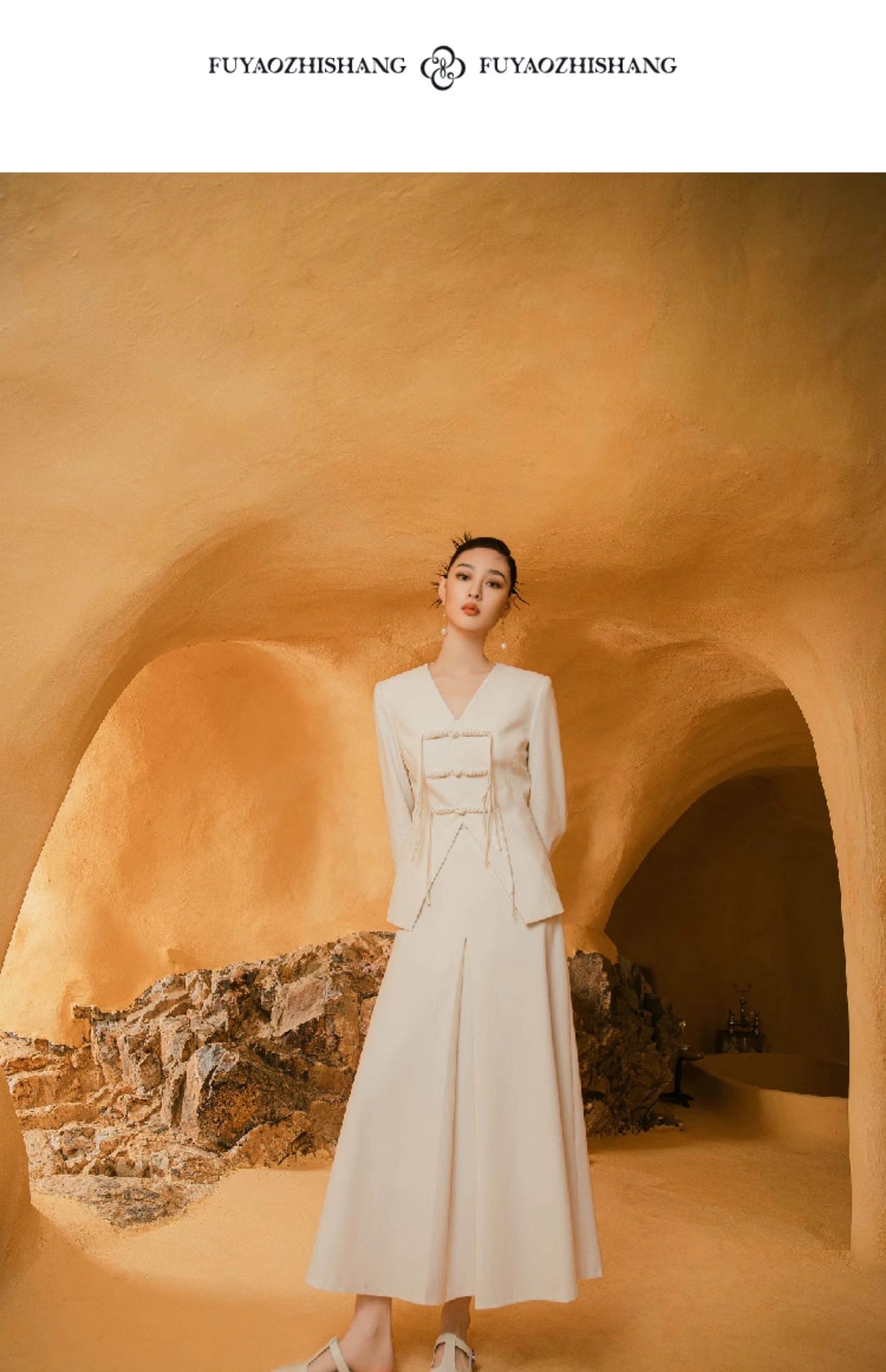 扶摇 流苏盘扣西装外套新中式时尚套装V领上衣半身裙两件套