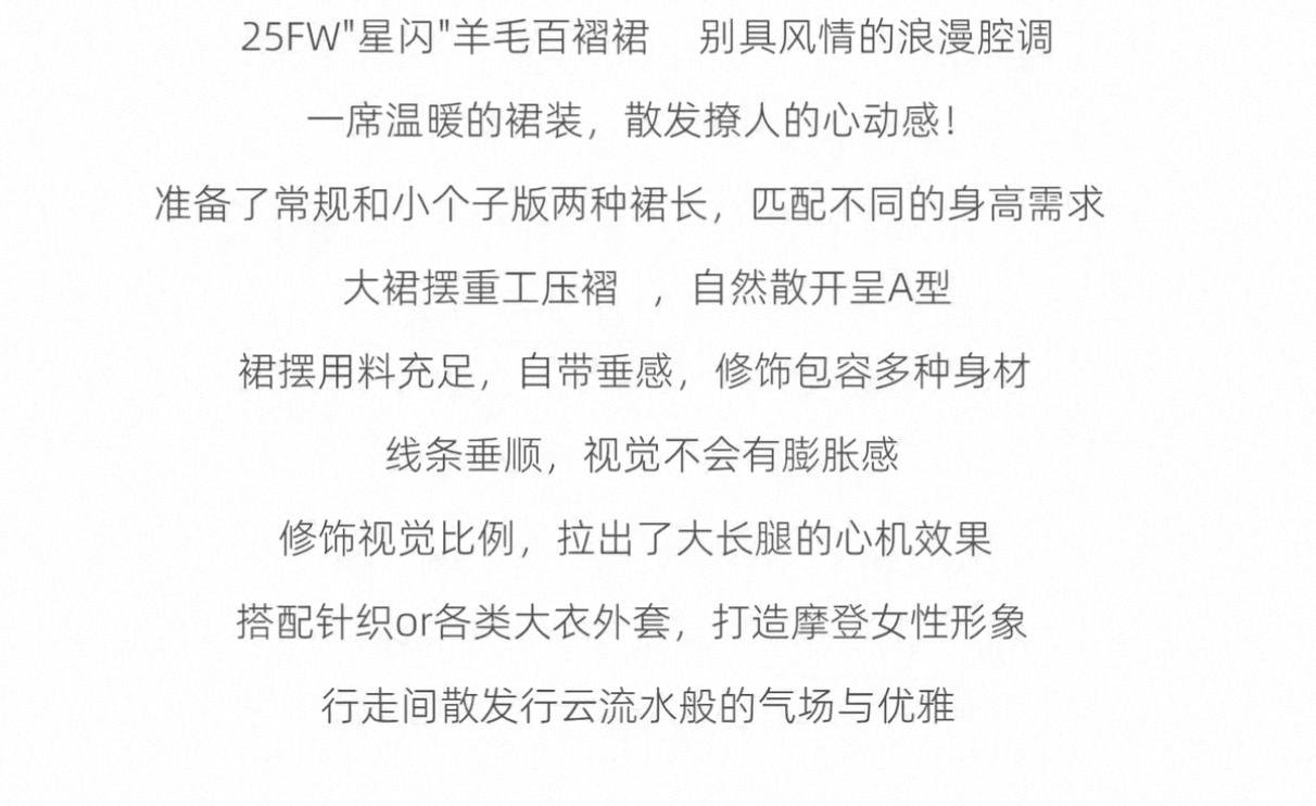 25FW"星闪"羊毛百褶裙别具风情的浪漫腔调~