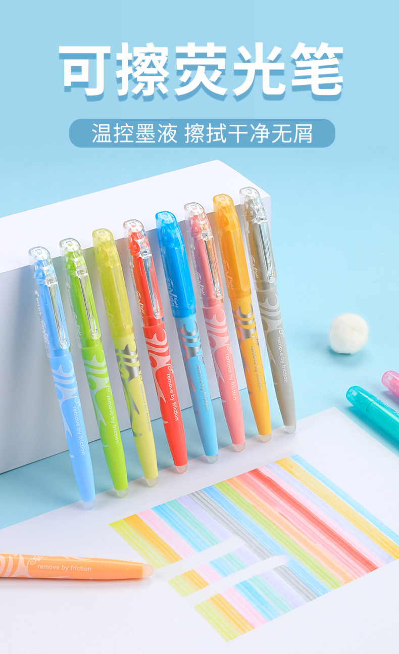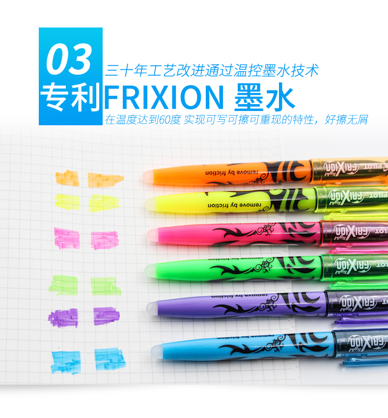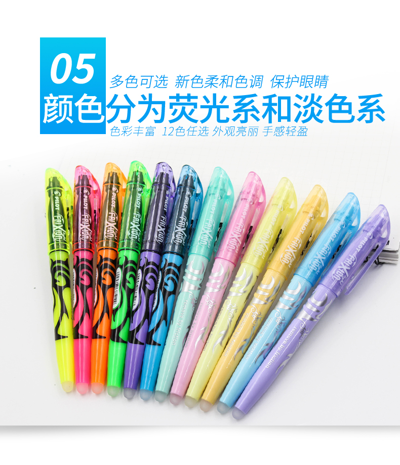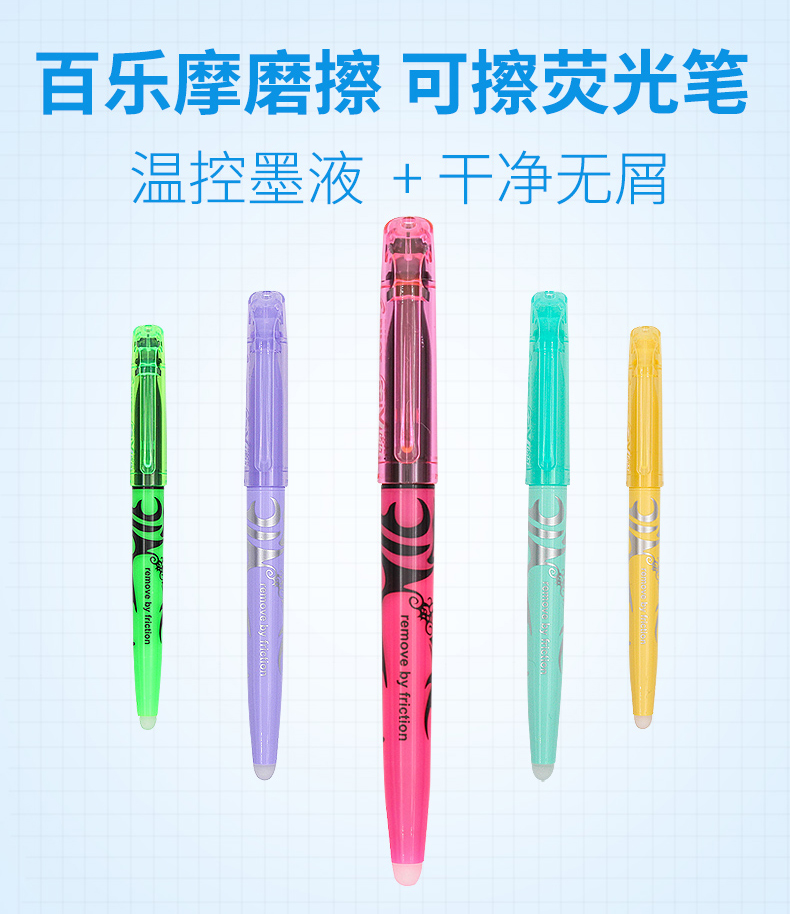 日本百乐(PILOT)摩磨擦可擦荧光笔彩色frixion记号笔画重点标记笔 斜头 淡绿 3色装 2个规格可选