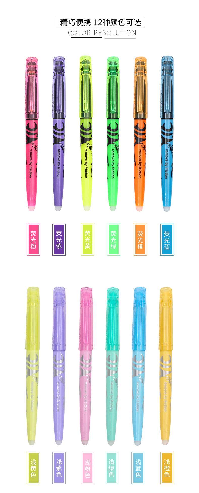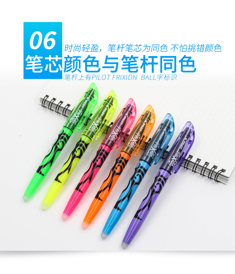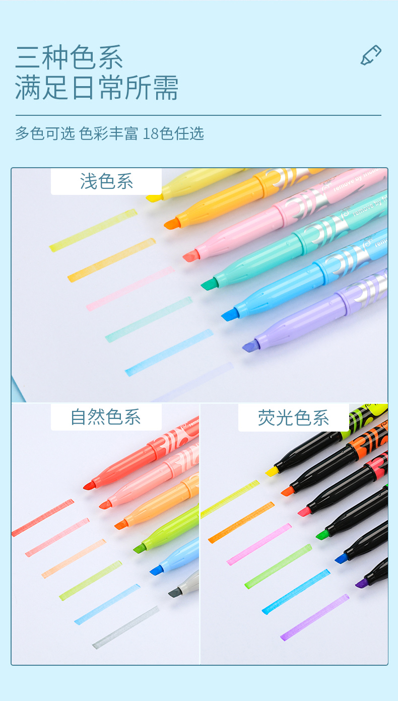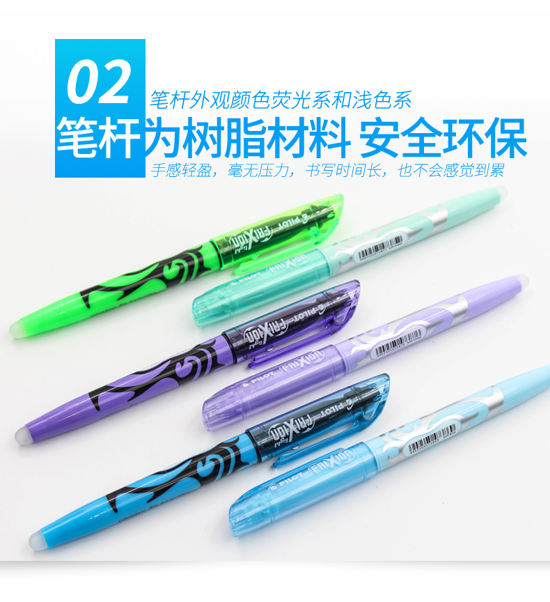 日本百乐(PILOT)摩磨擦可擦荧光笔彩色frixion记号笔画重点标记笔 斜头 淡绿 3色装 2个规格可选