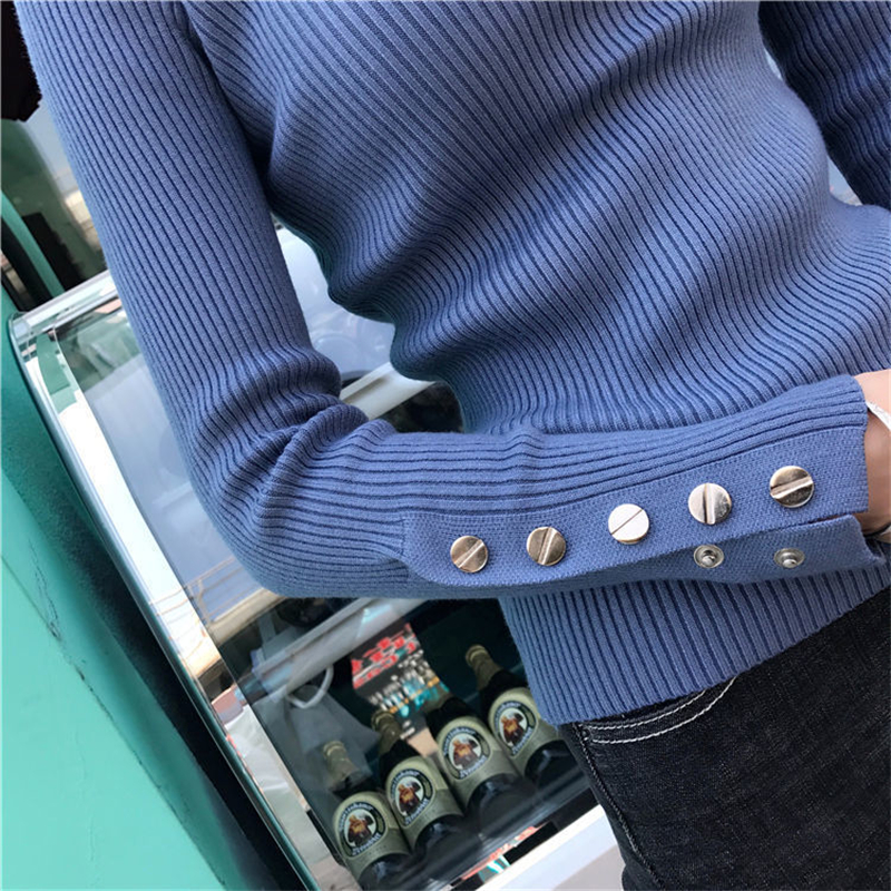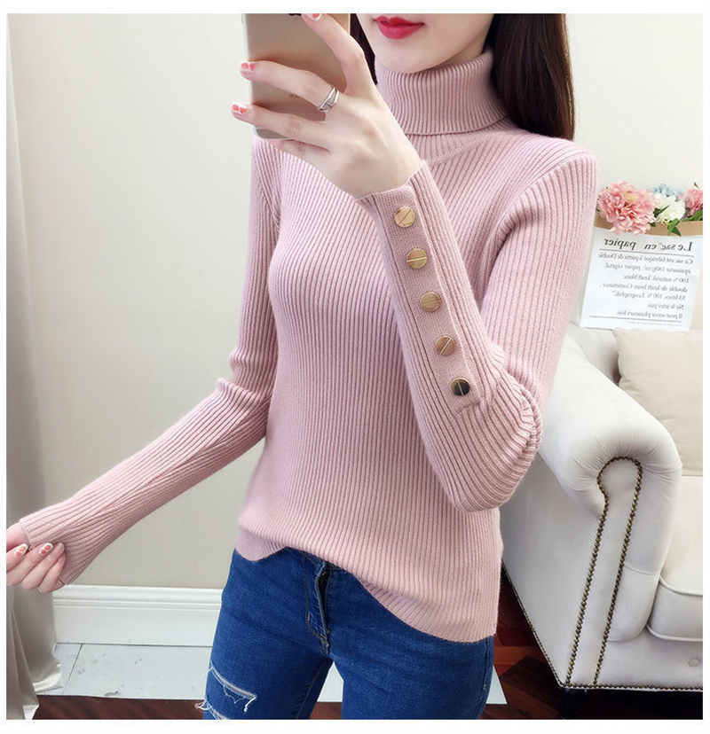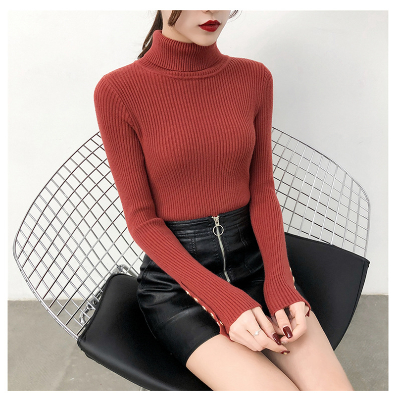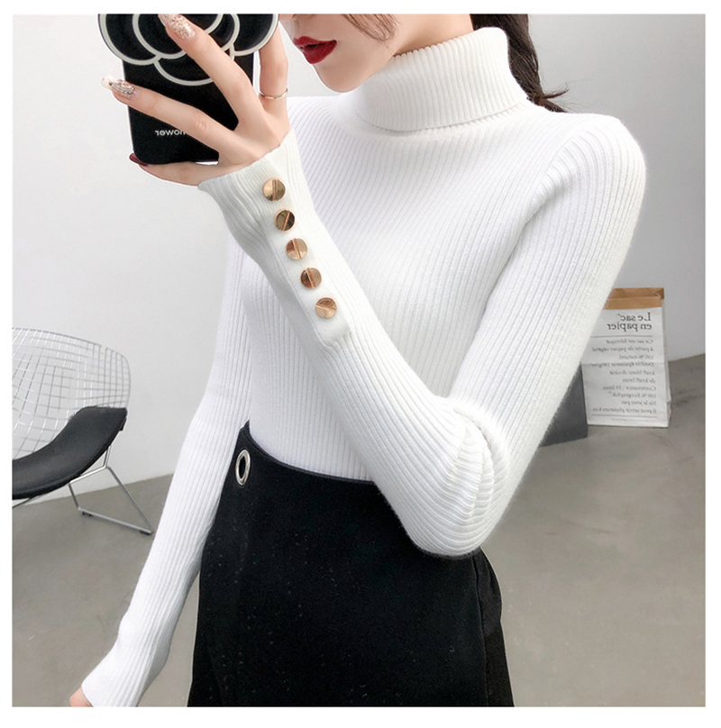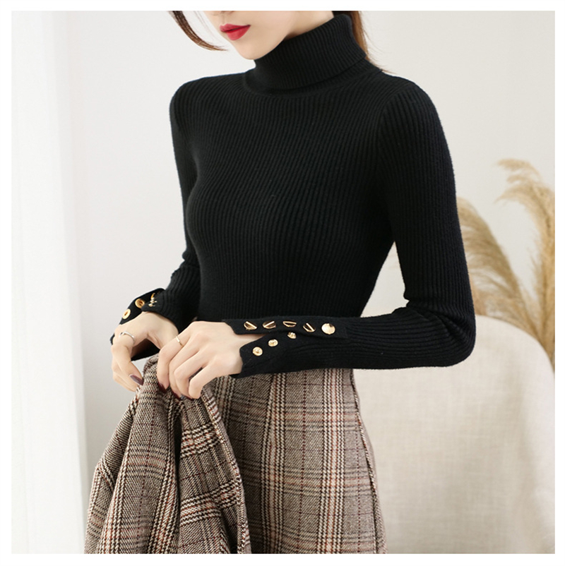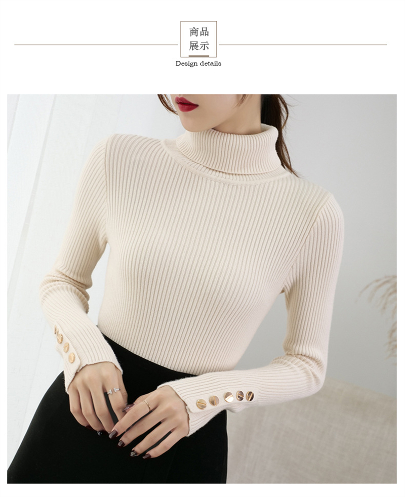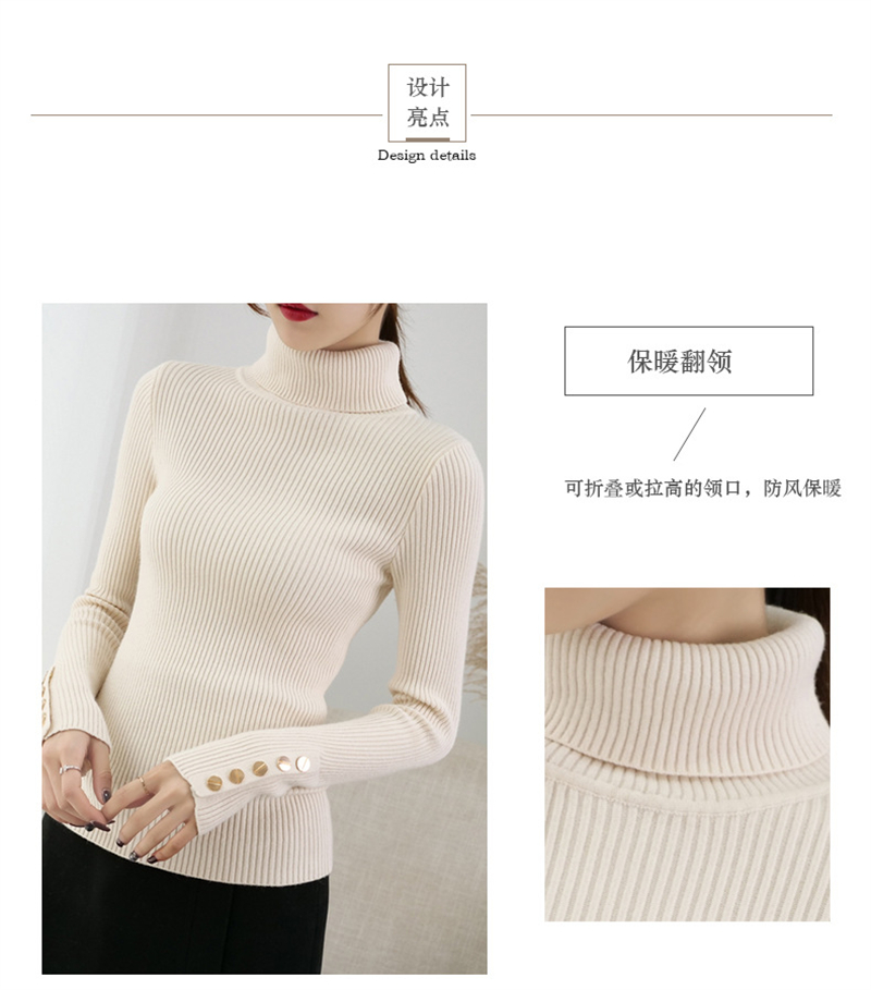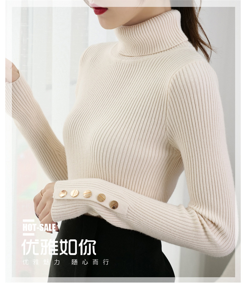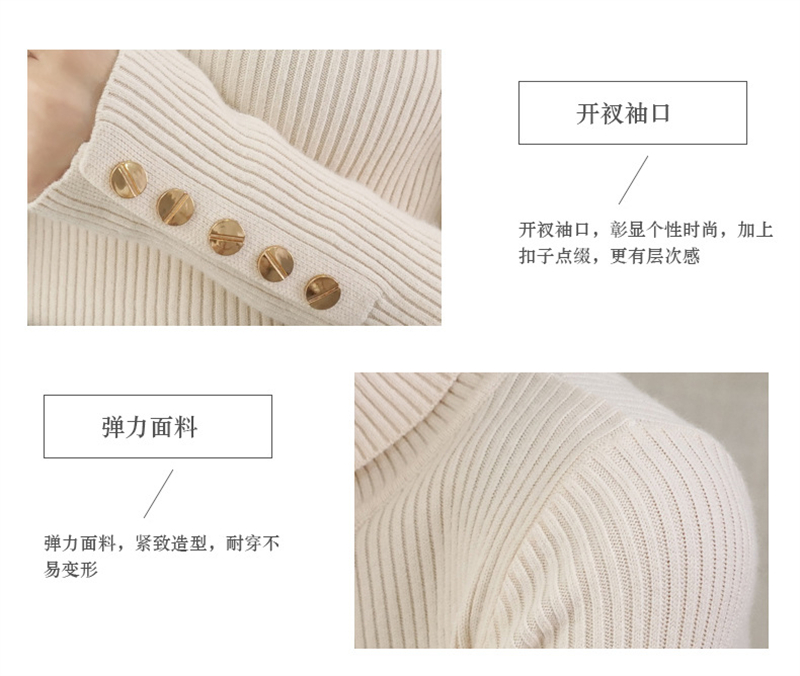 【2023上新长袖内搭打底衫】秋冬高领针织衫毛衣女套头 修身显瘦针织衫上衣 袖口纽扣设计 时尚显气质显身材