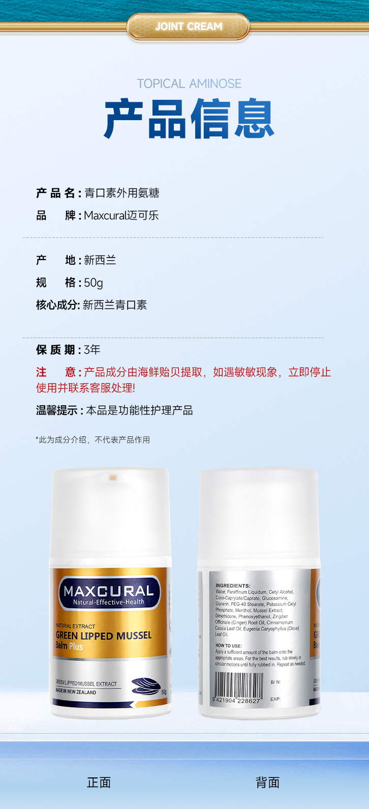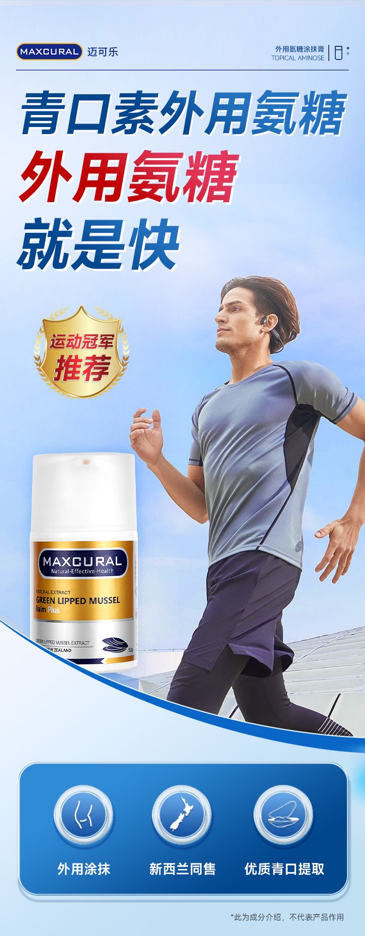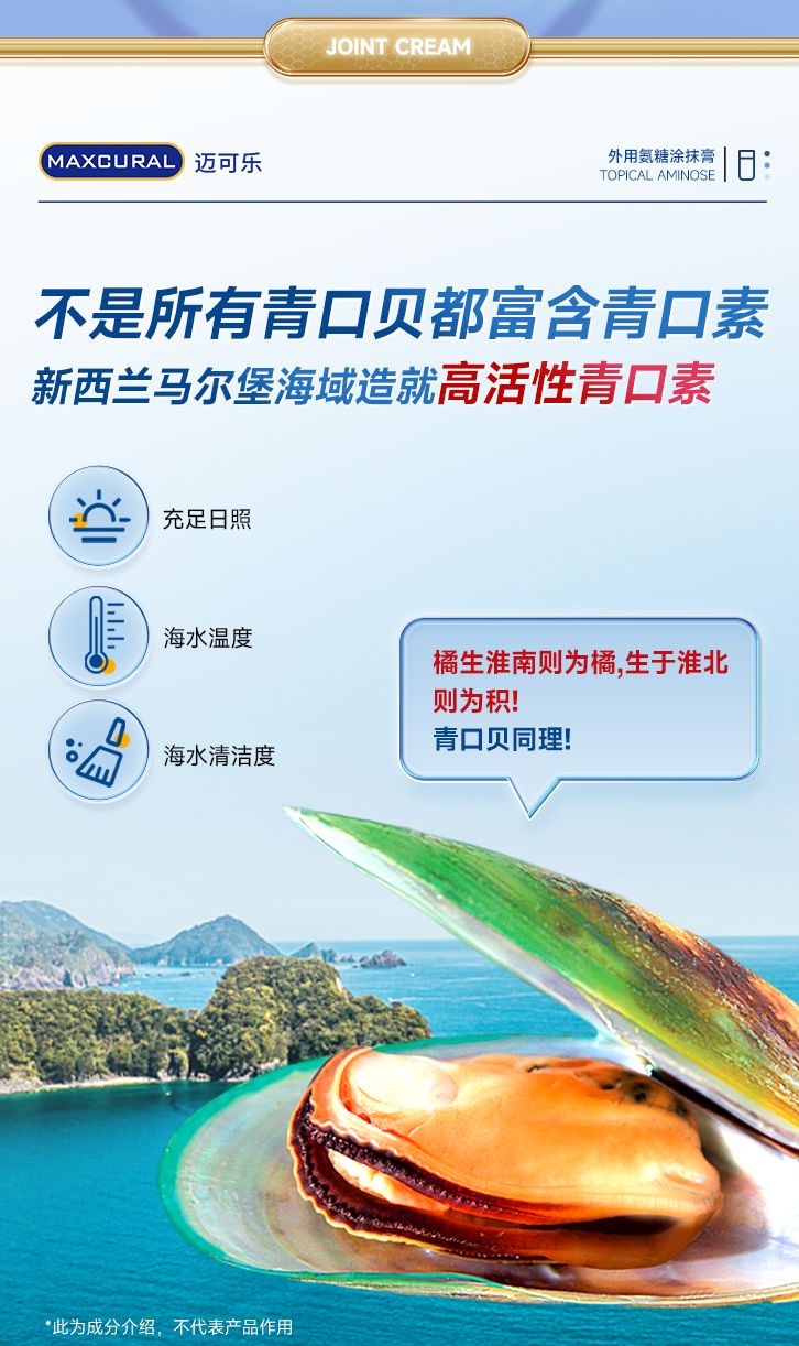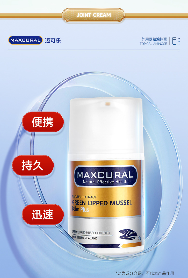 新西兰Maxcural迈可乐青口素关节膏黄金版外用涂金装绿唇贻贝50g
