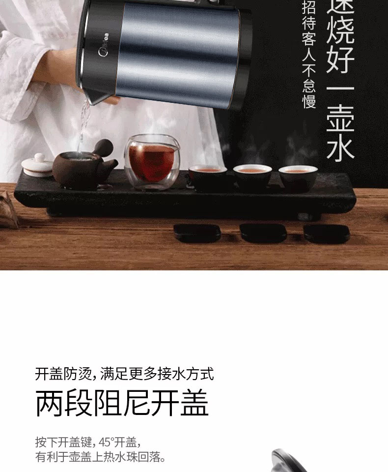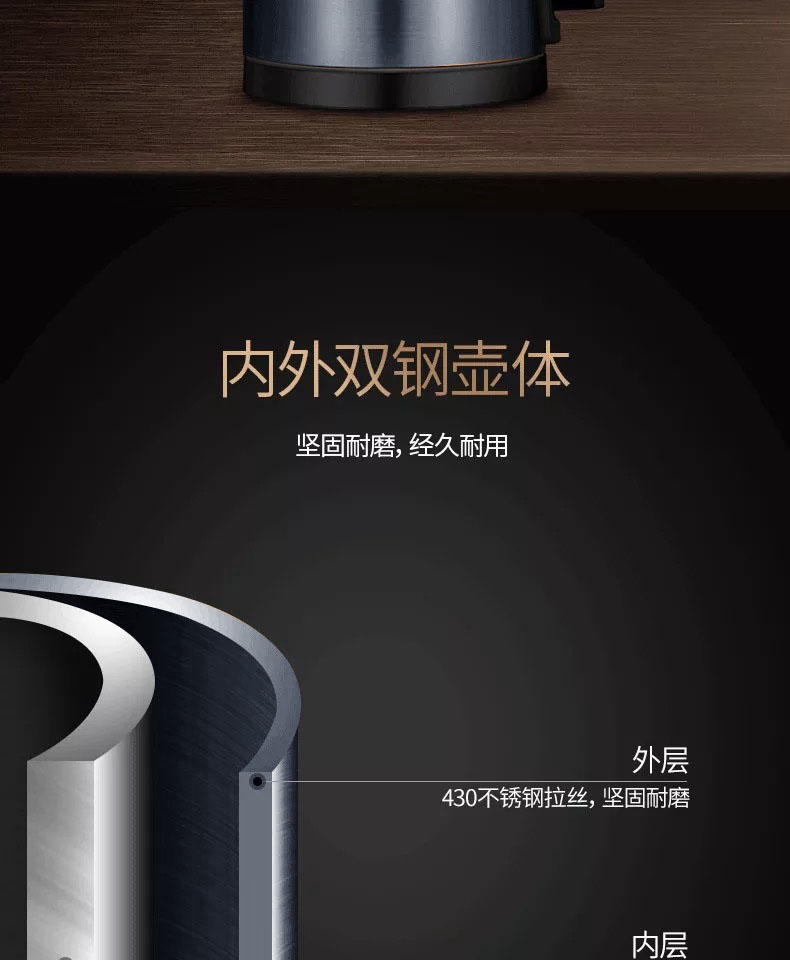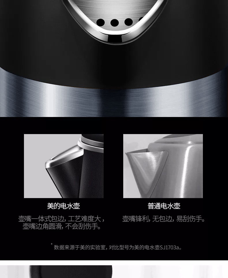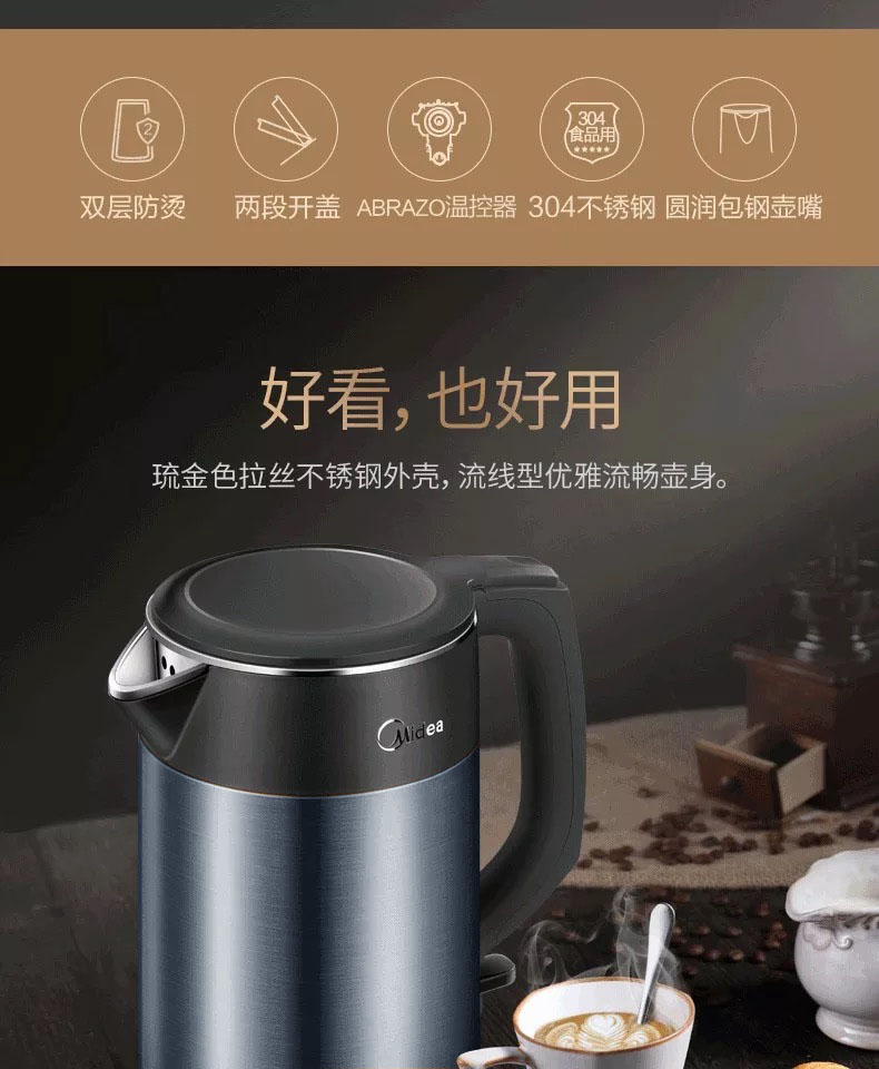 美的(Midea)电热水壶 双层防烫电水壶 烧水壶1.5升容量 食品级304不锈钢 HJ1511a