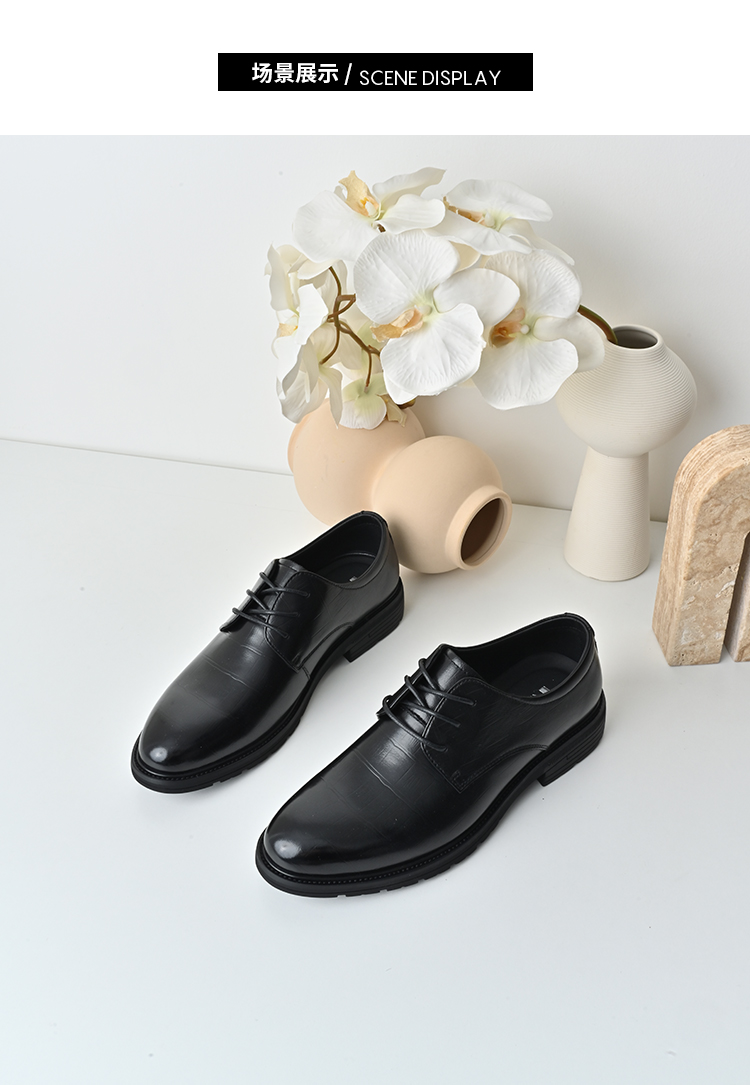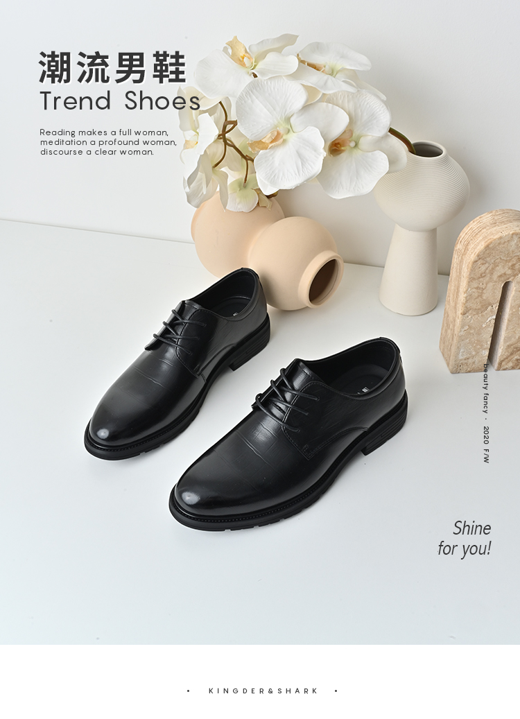 经典鲨2025年秋季专柜新款牛皮革黑色男士平底系带正装商务皮鞋KW08-533511