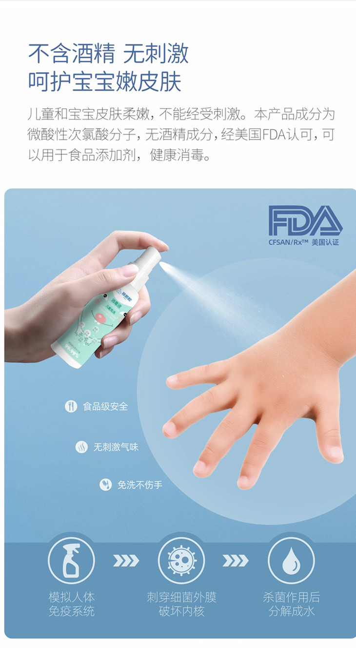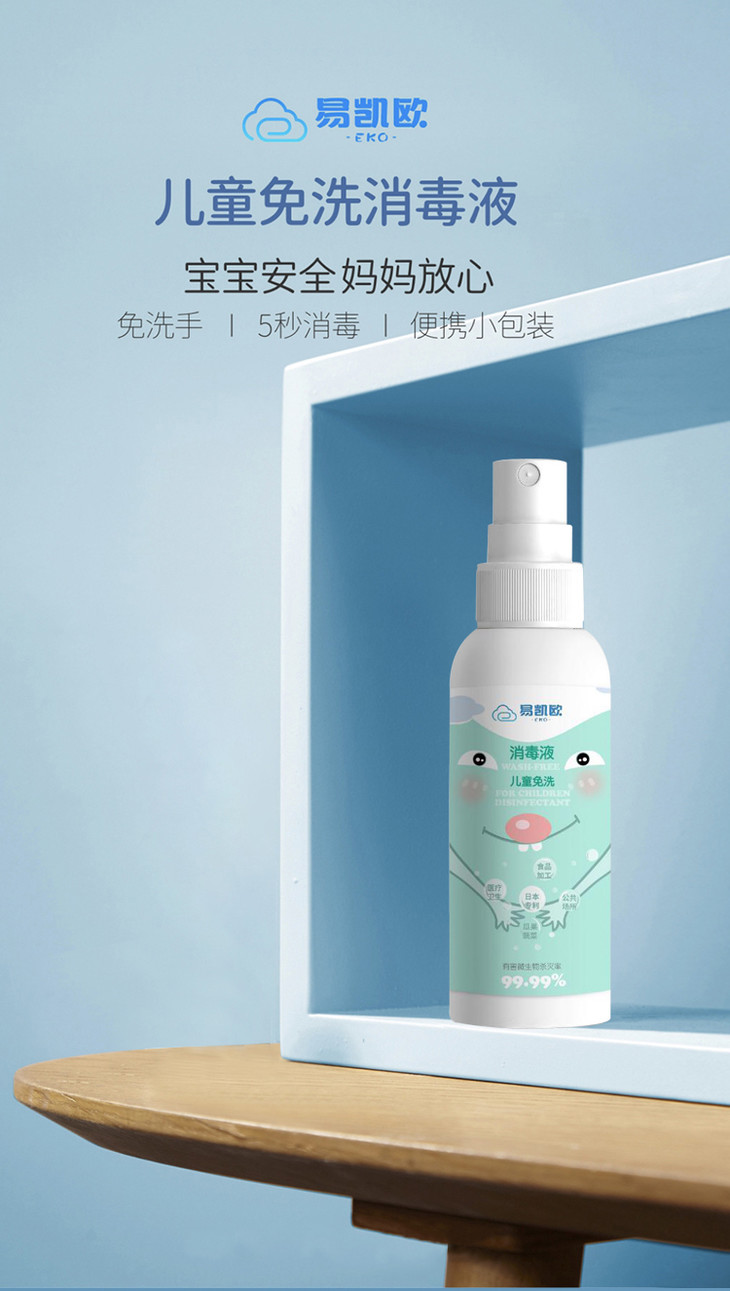 【临期特惠,2瓶19.9元 包邮】易凯欧儿童免洗消毒液 不含酒精 (海南分院)