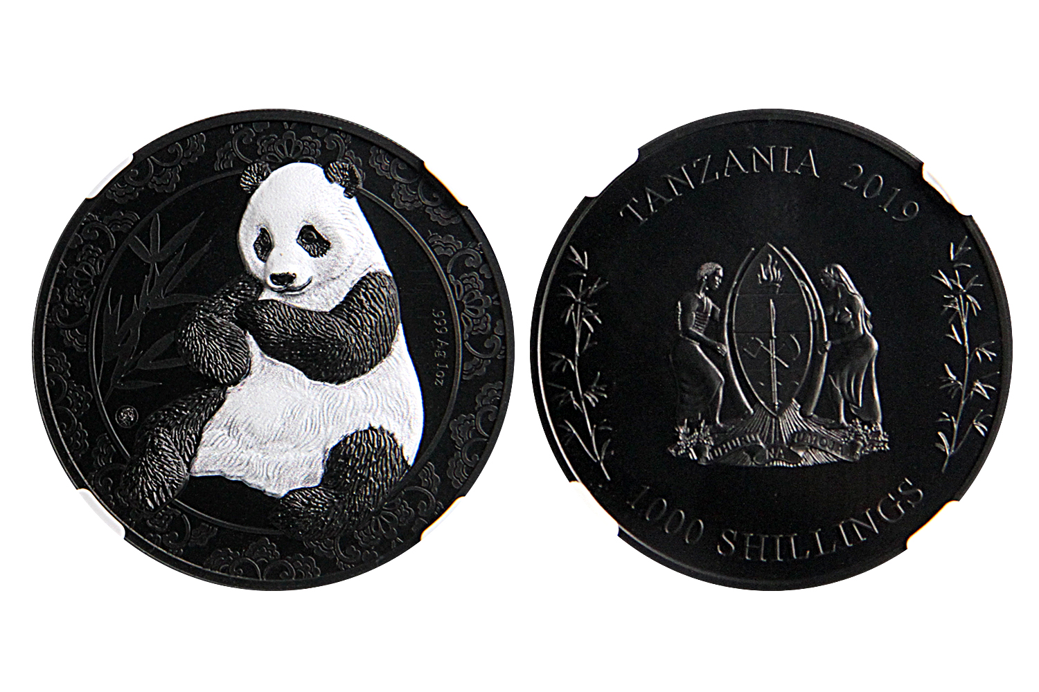 2019年坦桑尼亚1000先令纳米熊猫纪念银币是在坦桑尼亚联合共和国的授权下发行的由德国梅耶造币厂制造,运用最新的纳米技术上海造币有限公司高级工艺美术师余敏设计