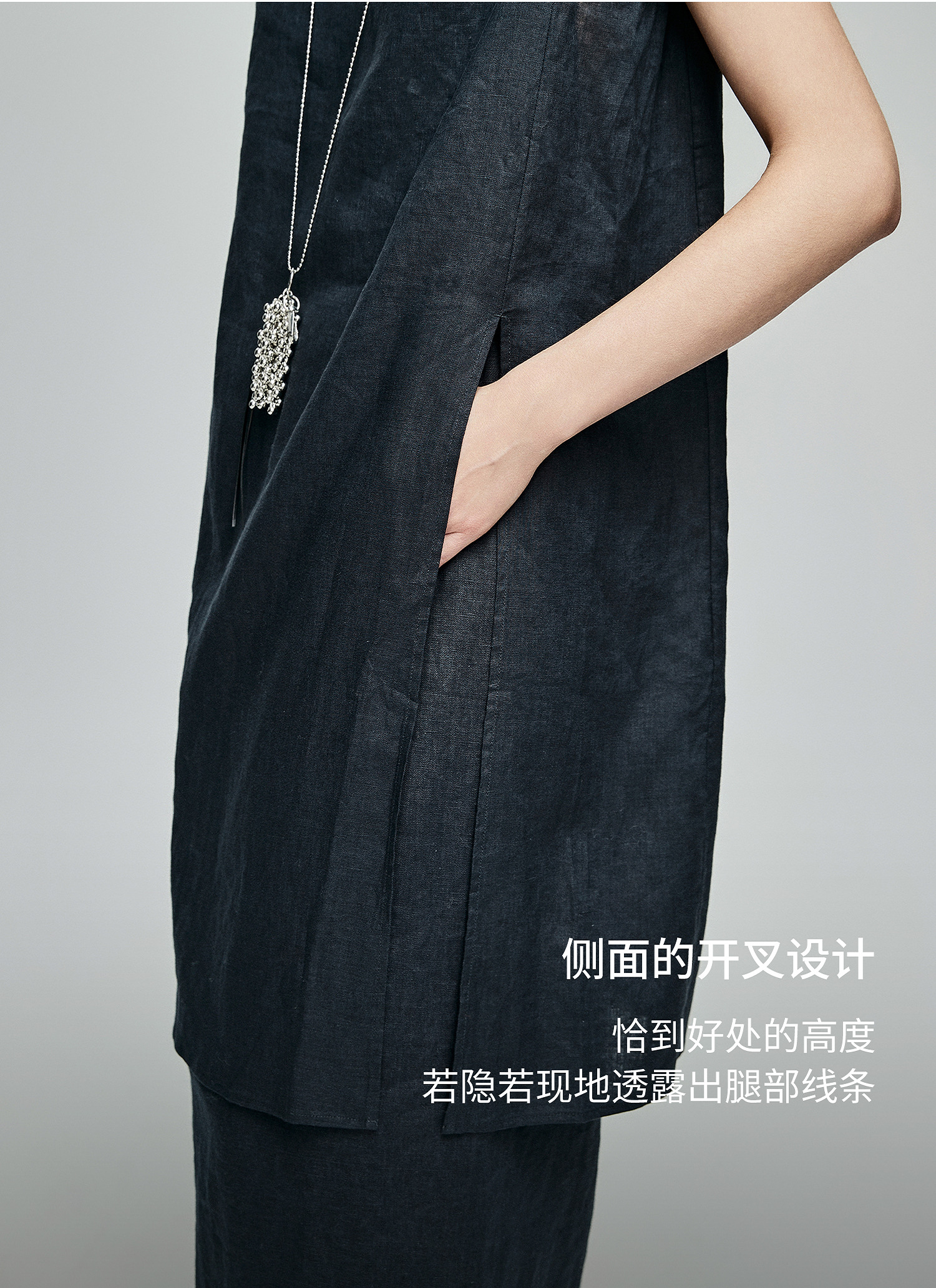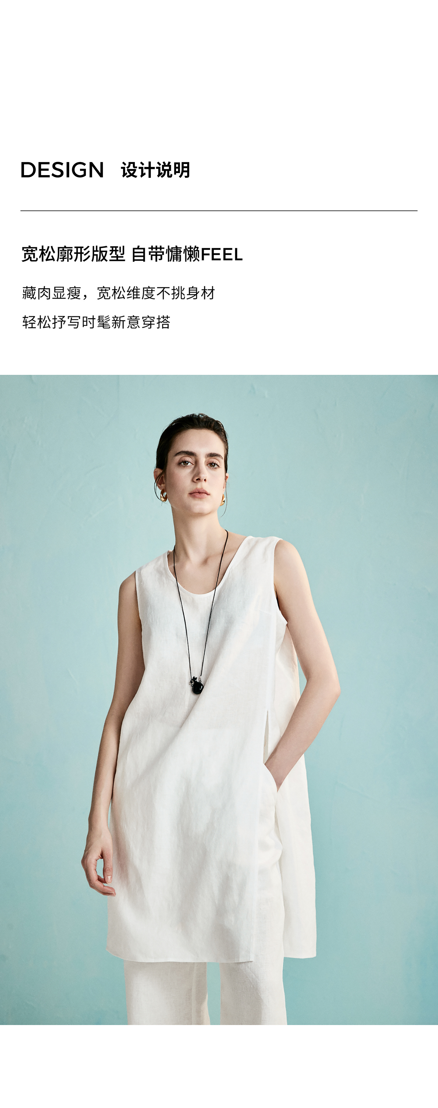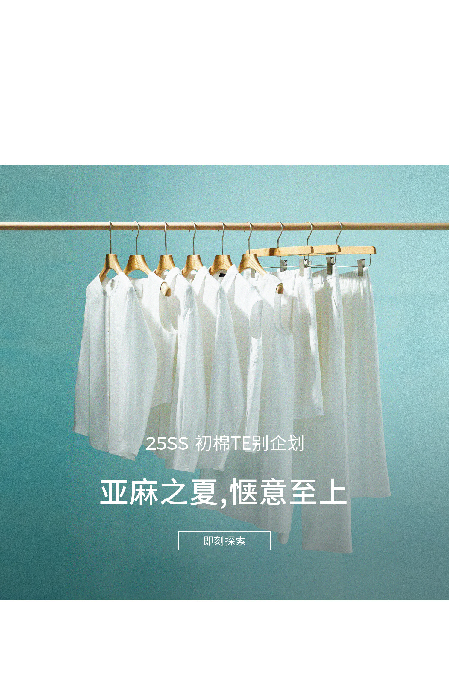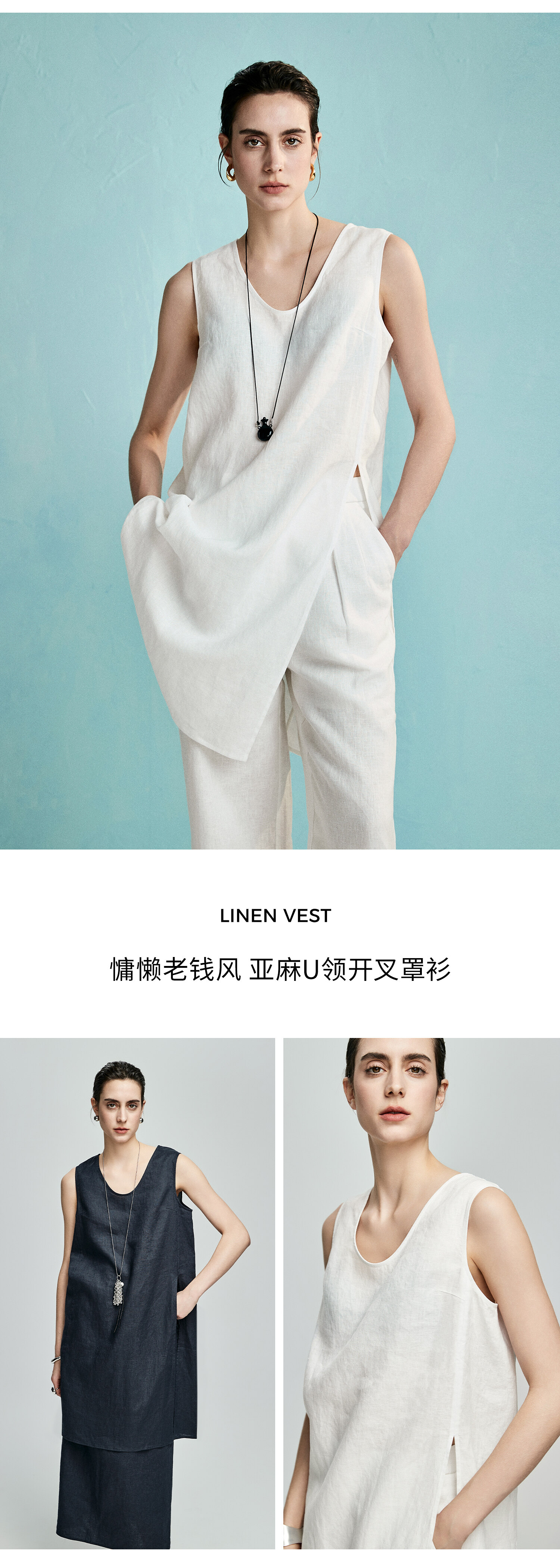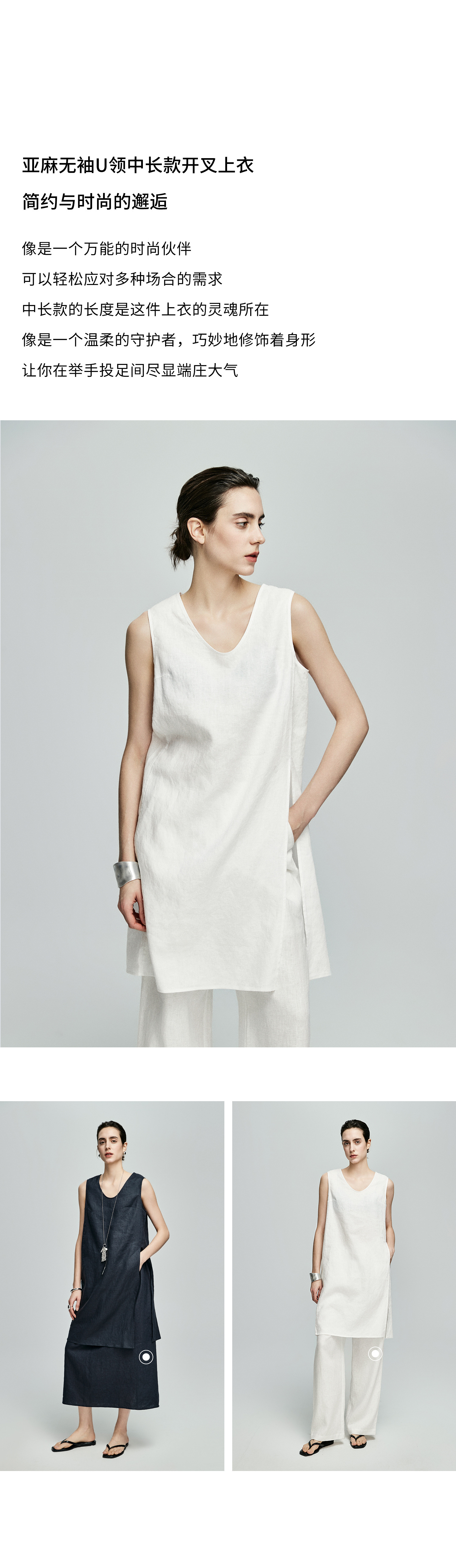 棉仓363616003-初棉亚麻U领中长款开叉上衣