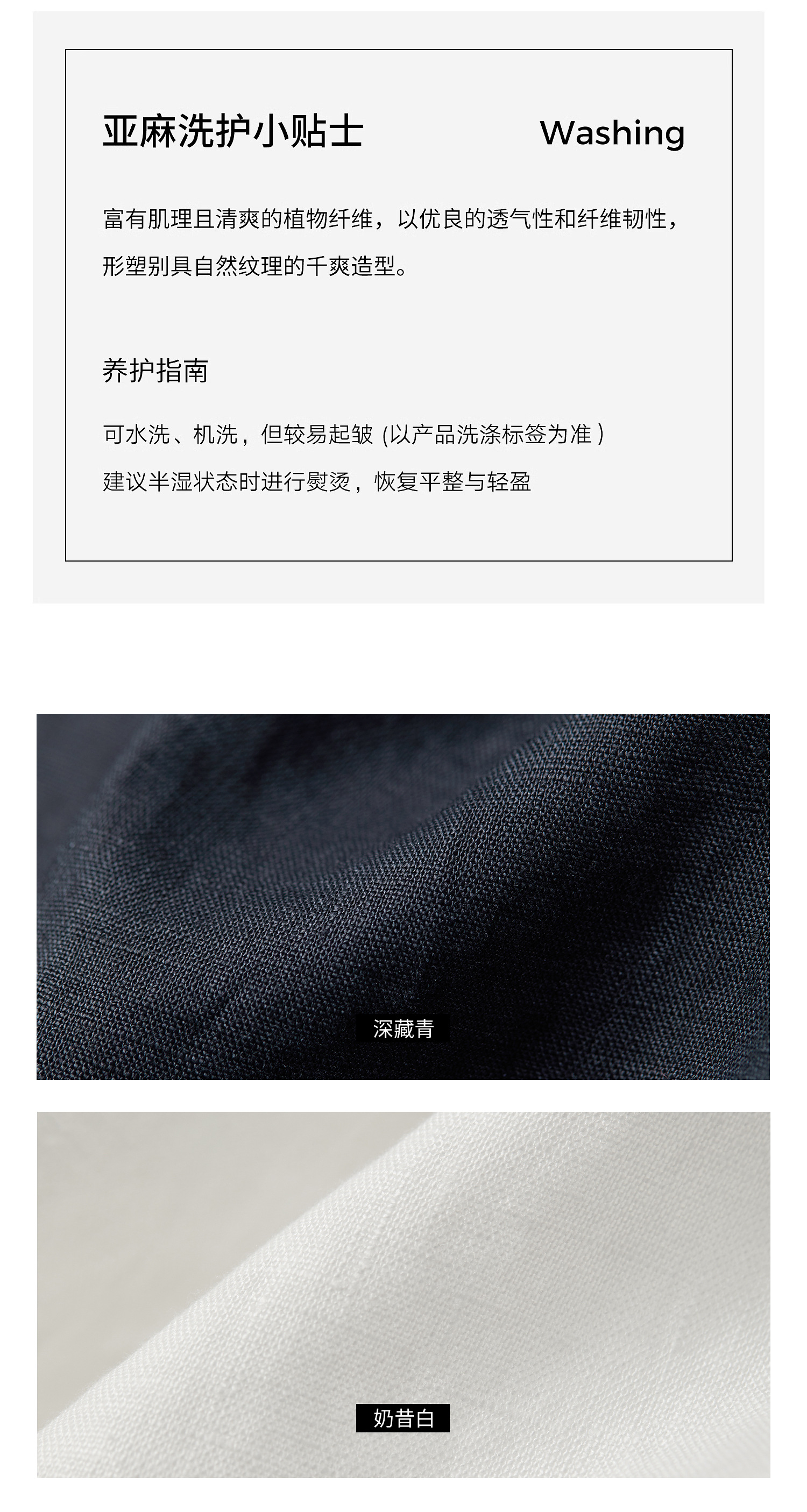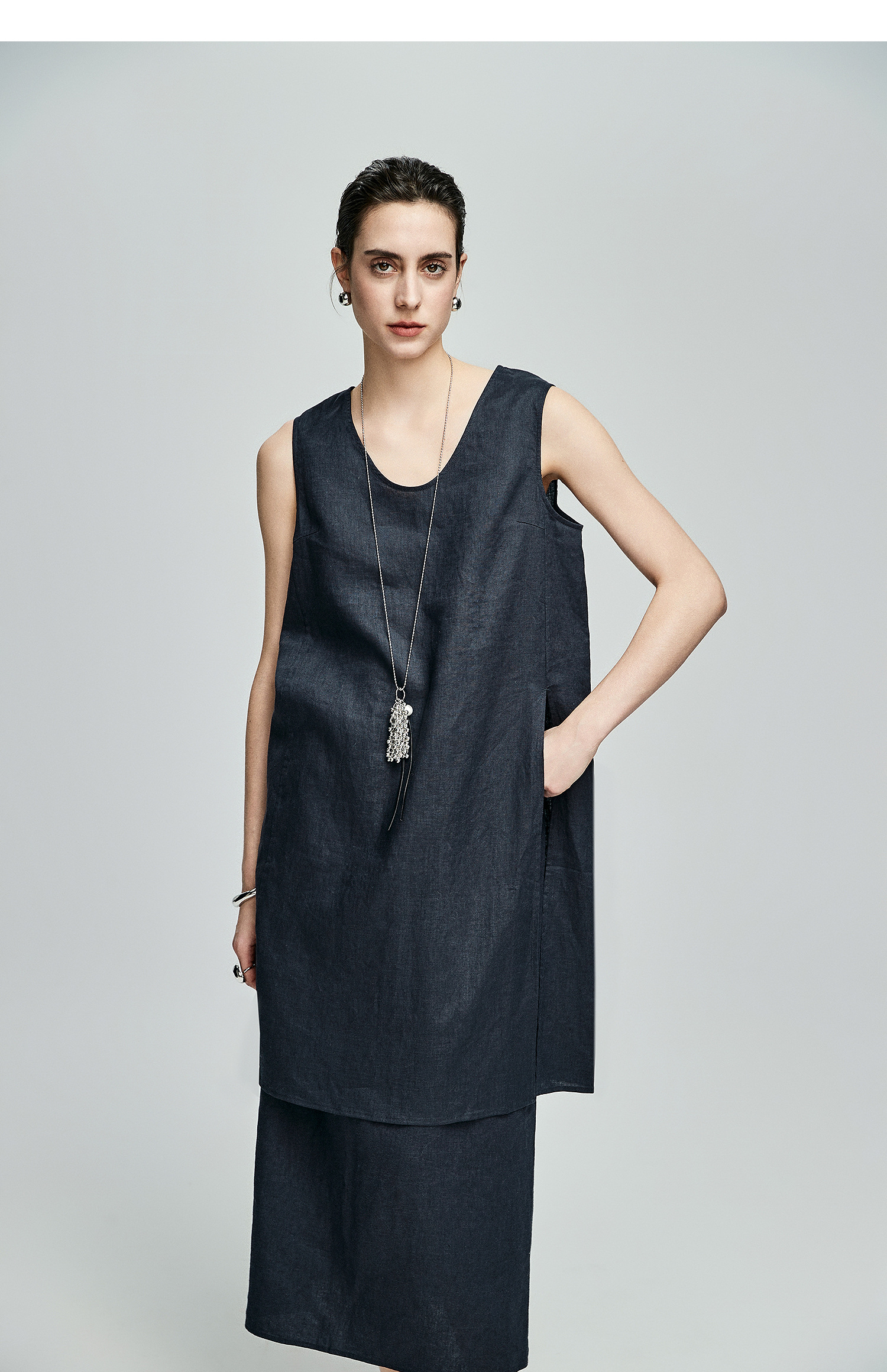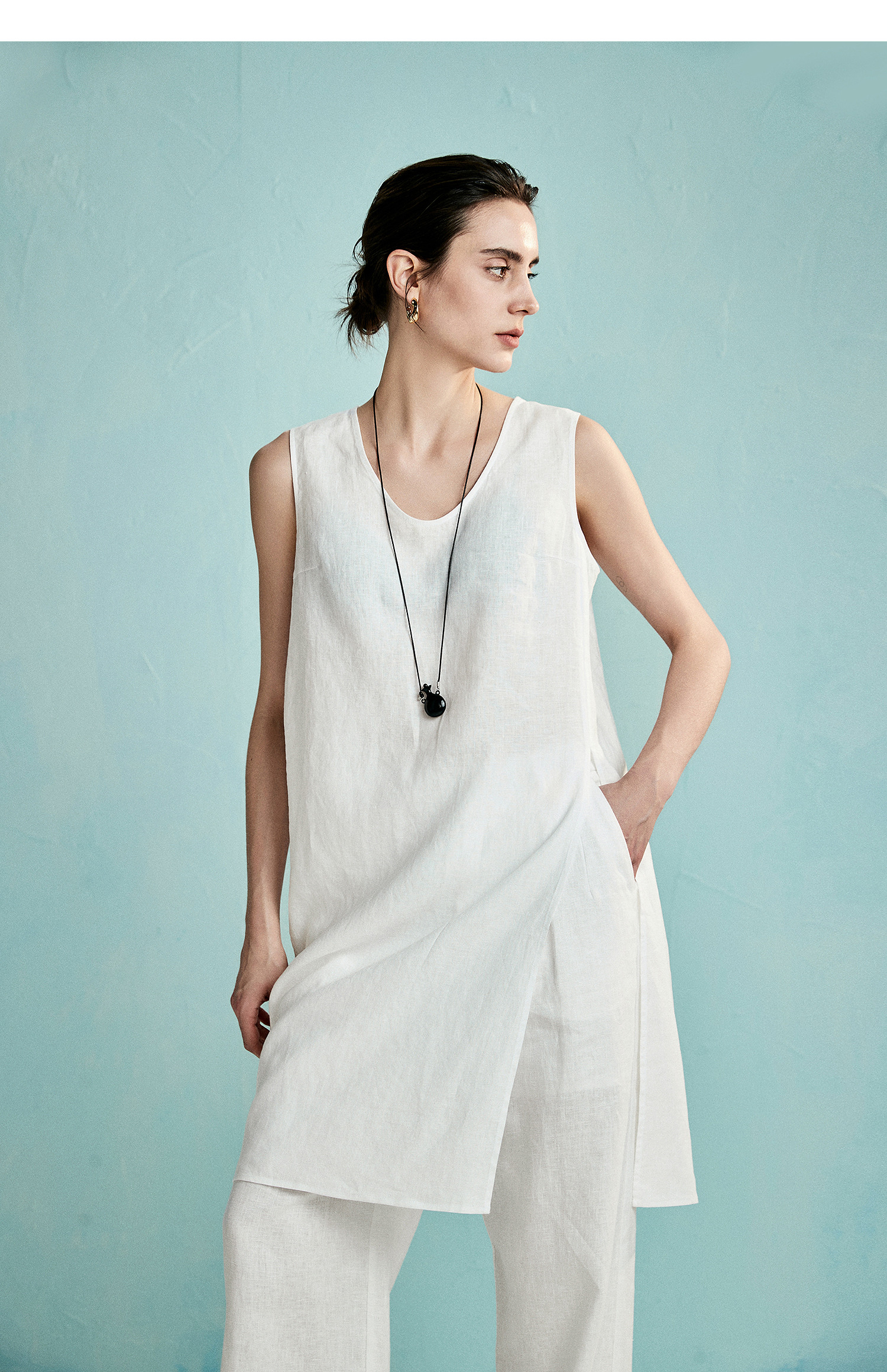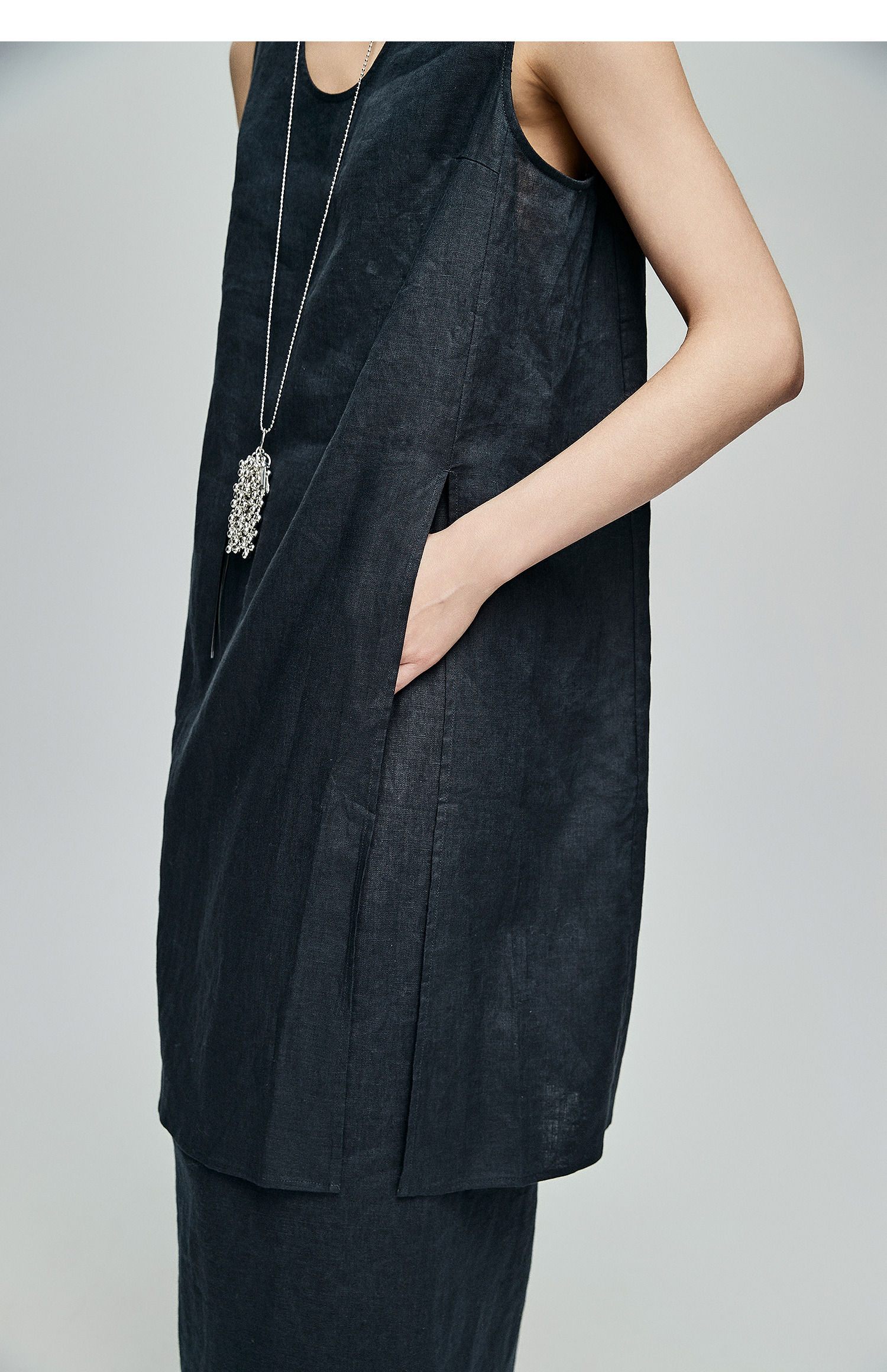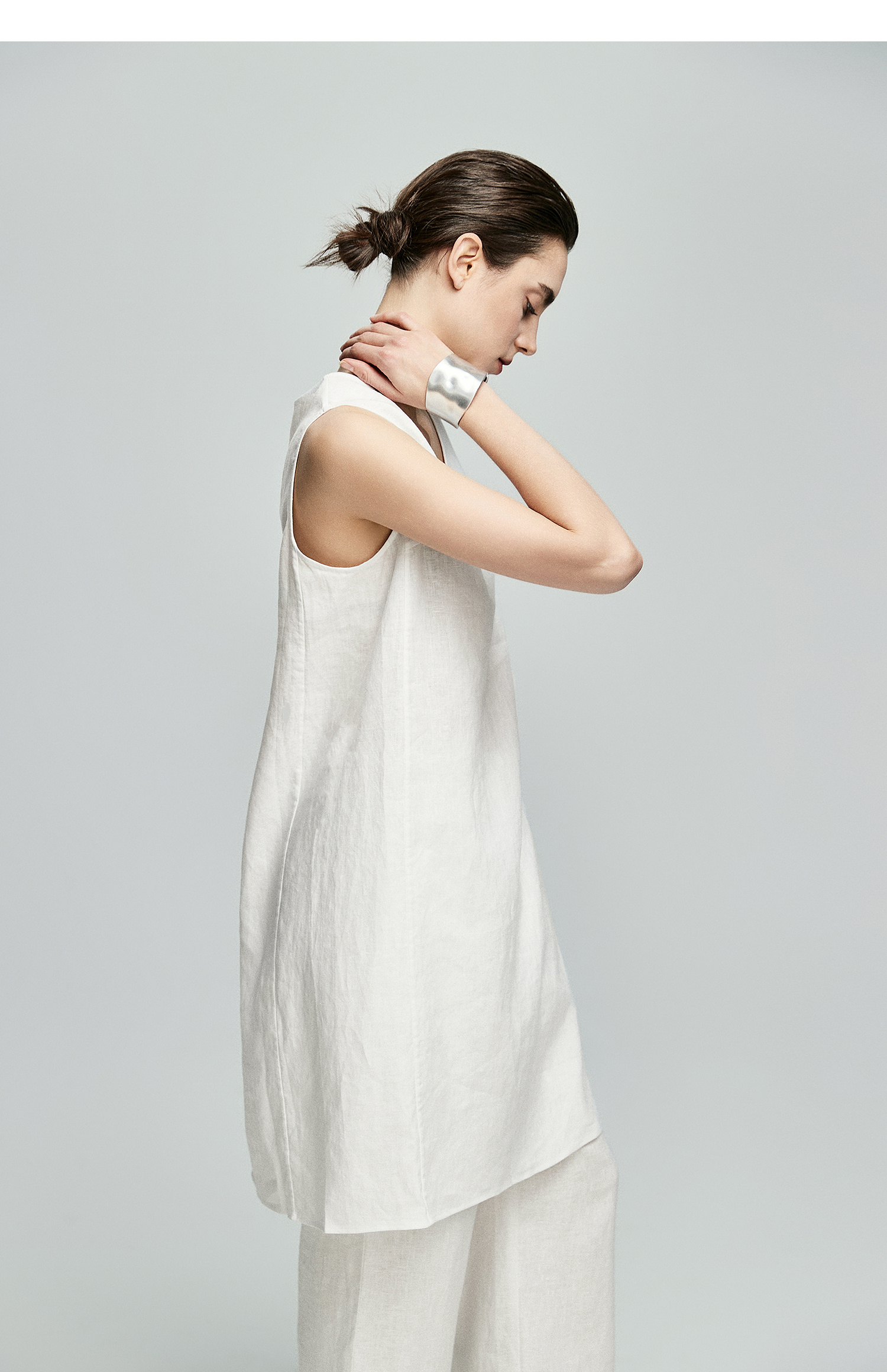 棉仓363616003-初棉亚麻U领中长款开叉上衣