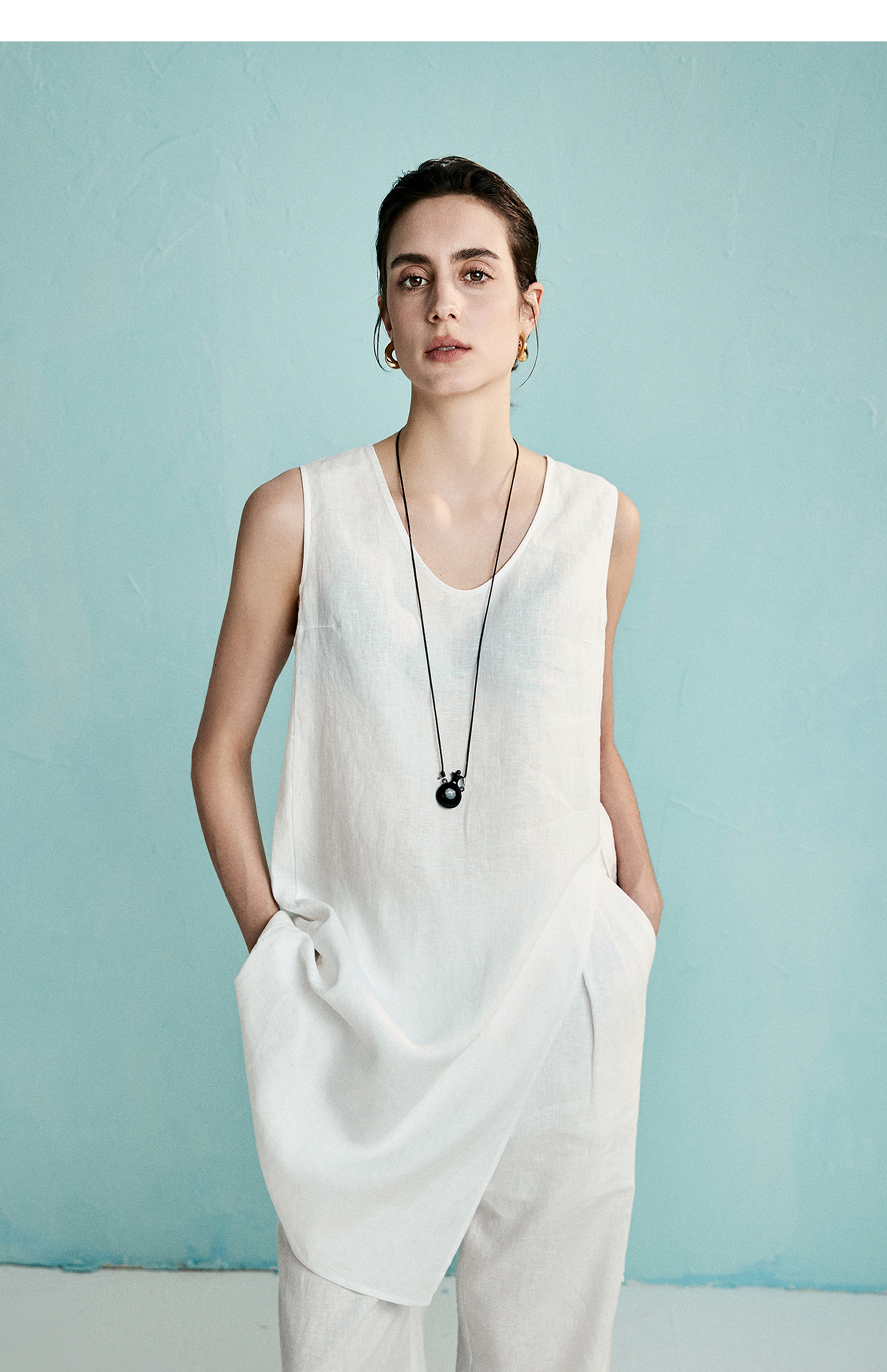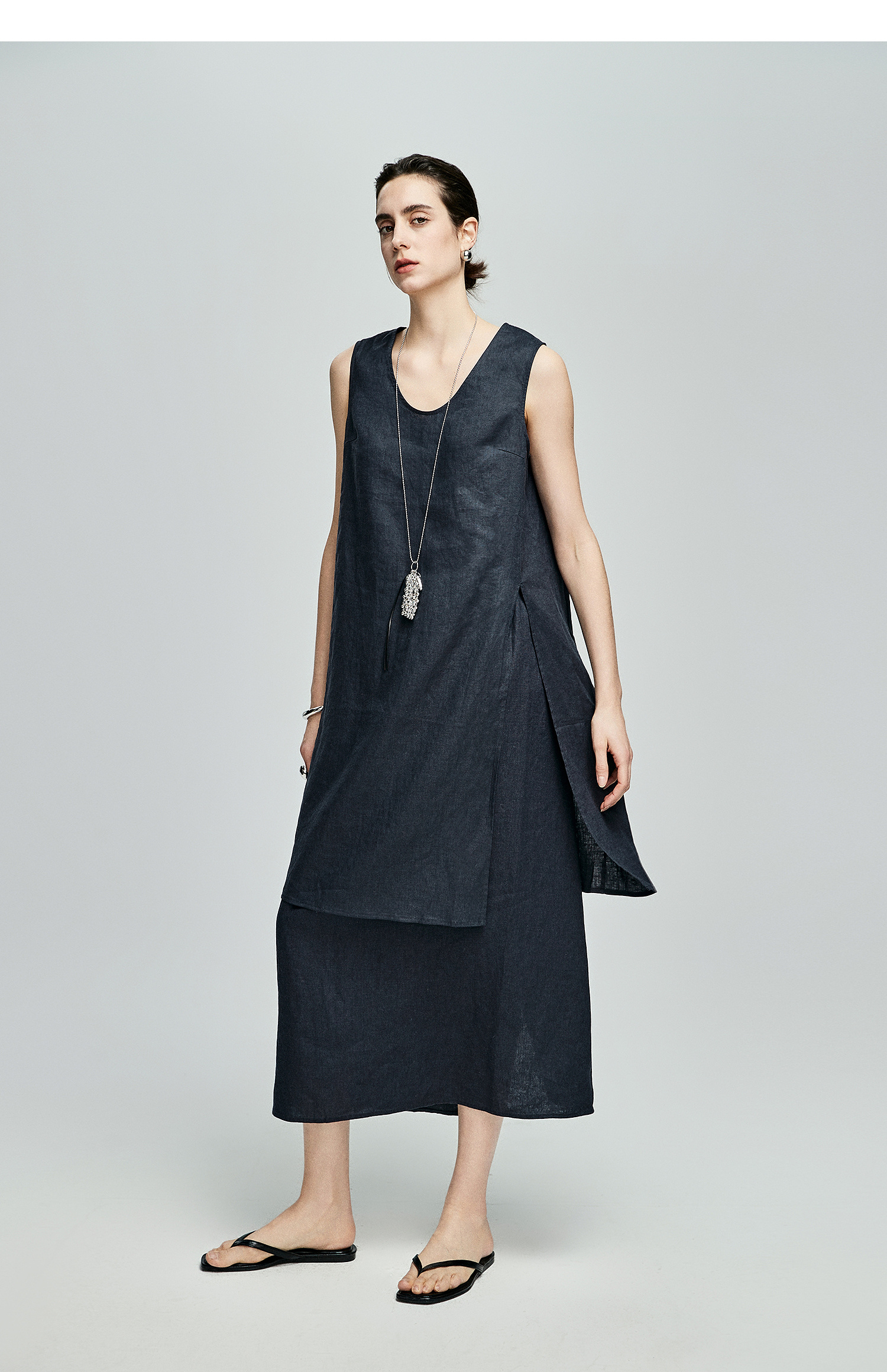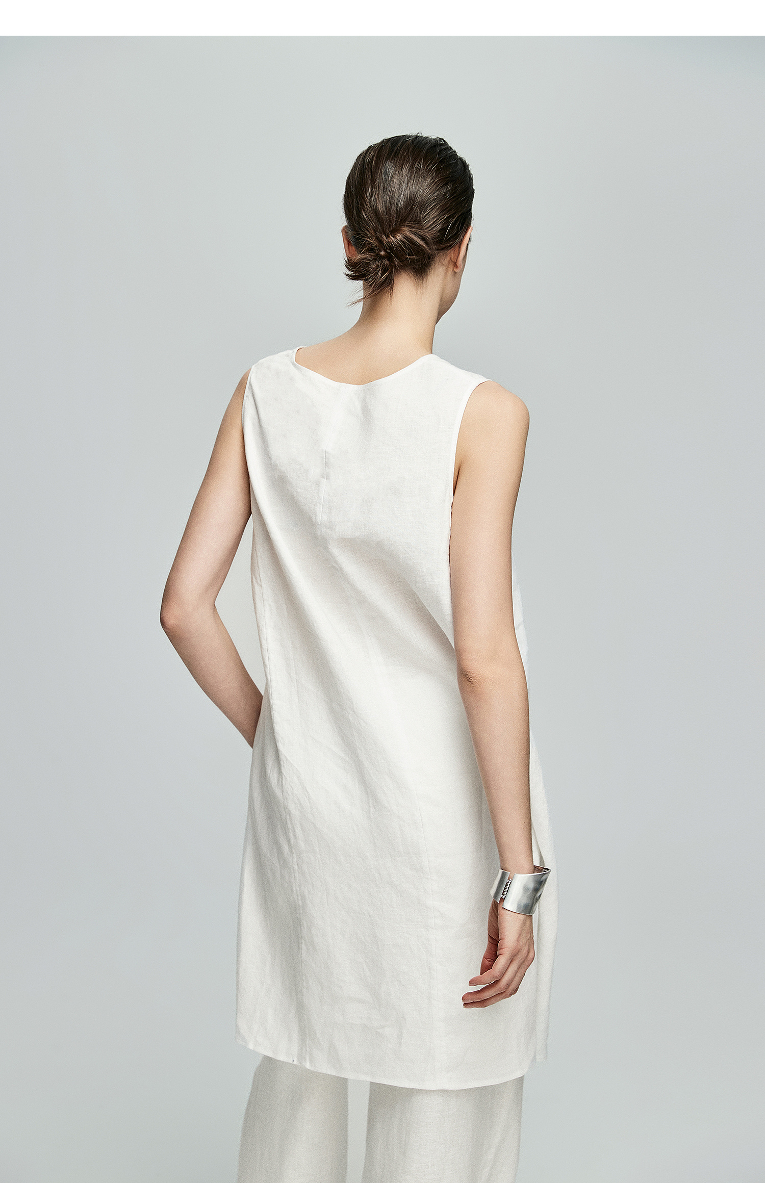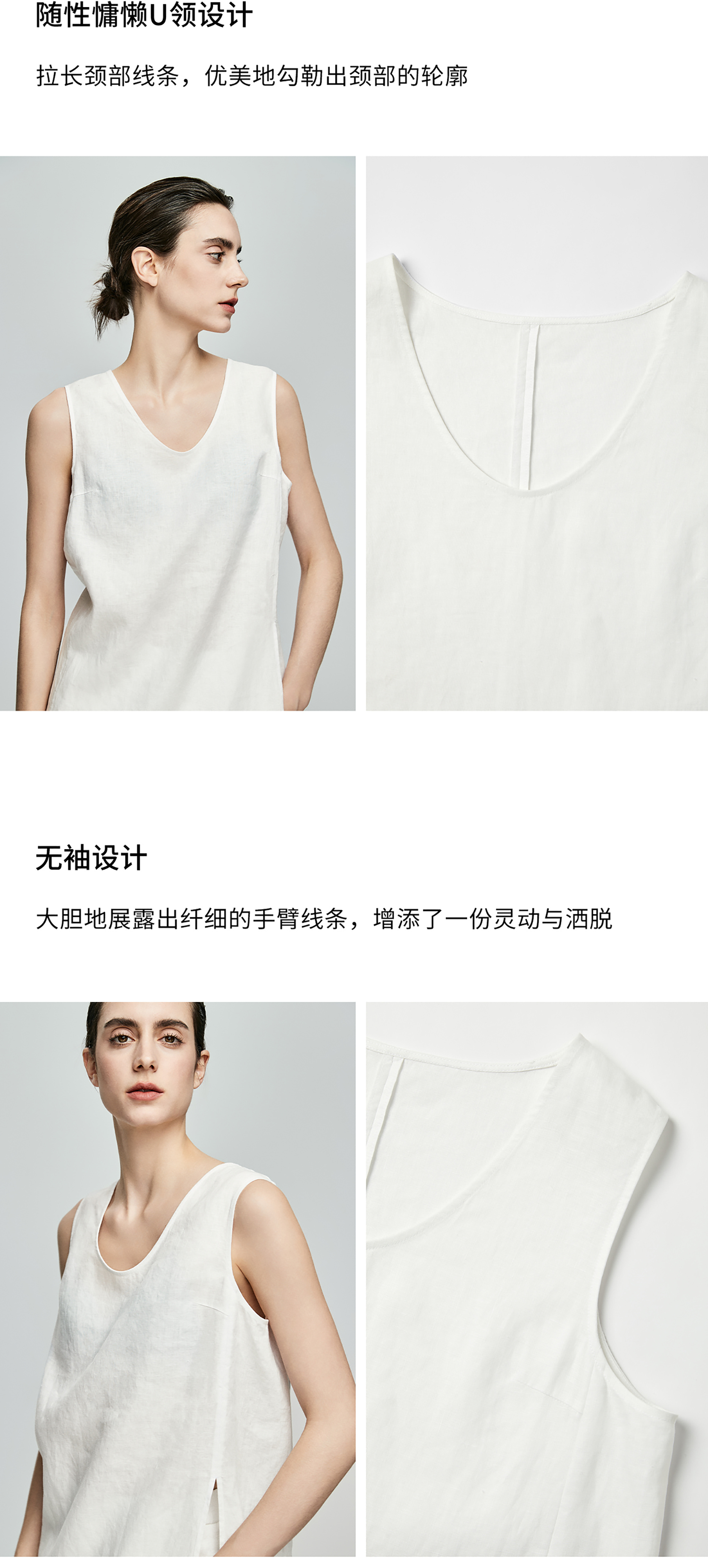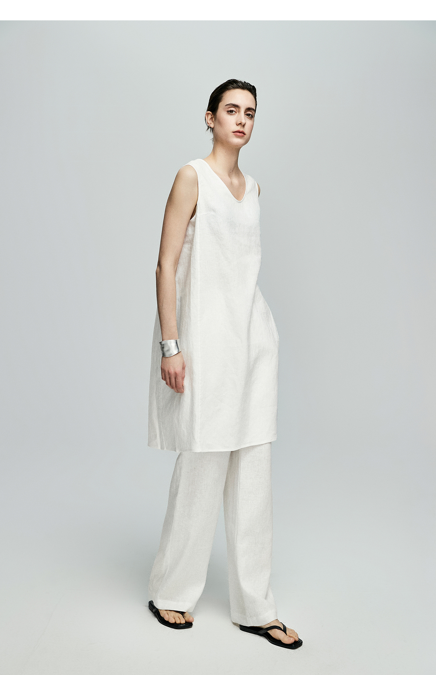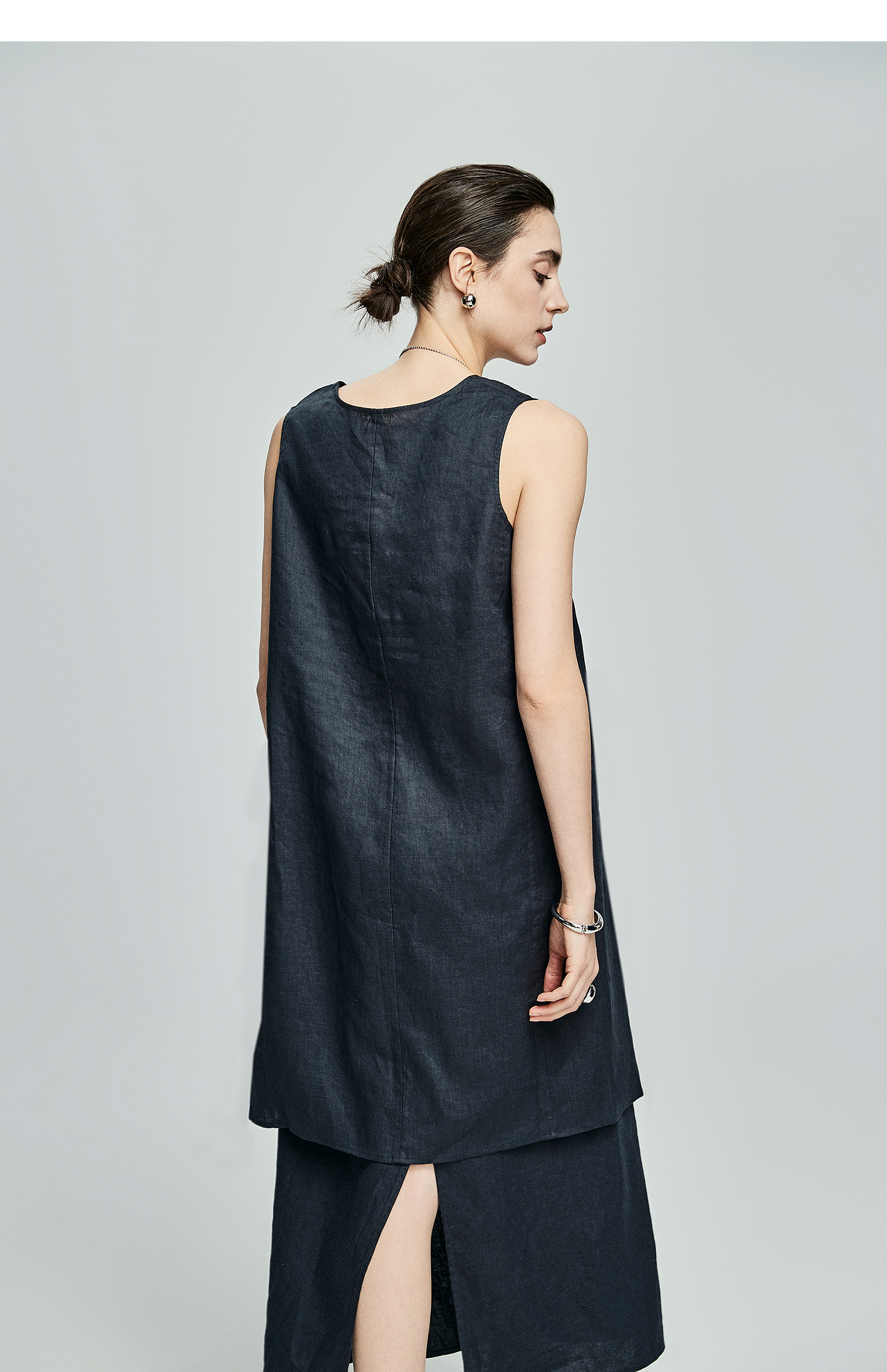 棉仓363616003-初棉亚麻U领中长款开叉上衣