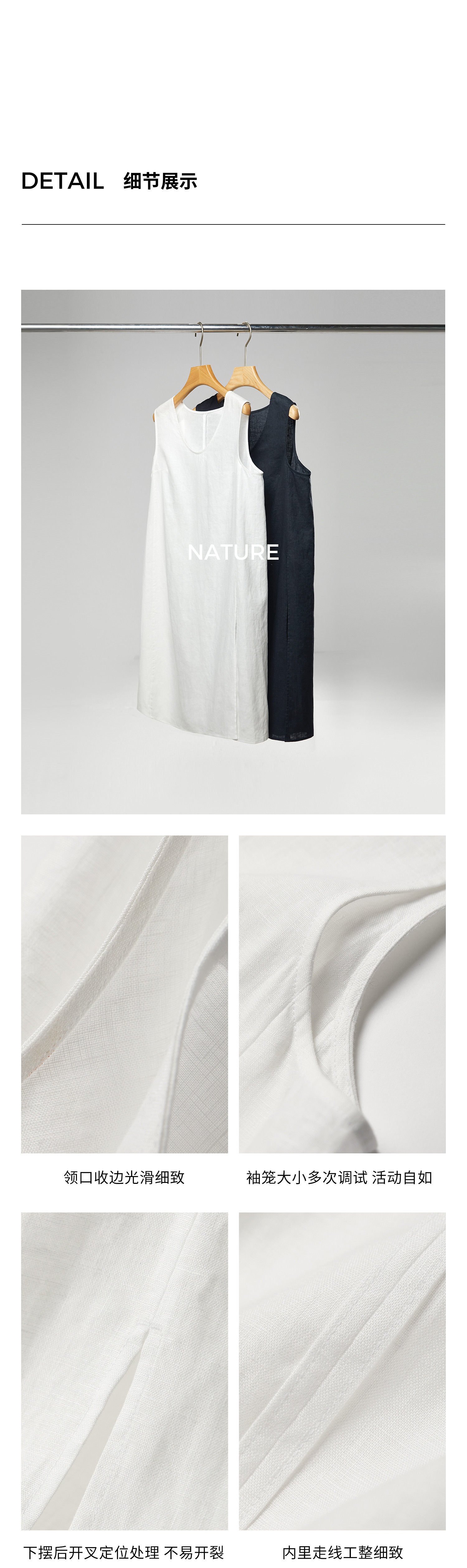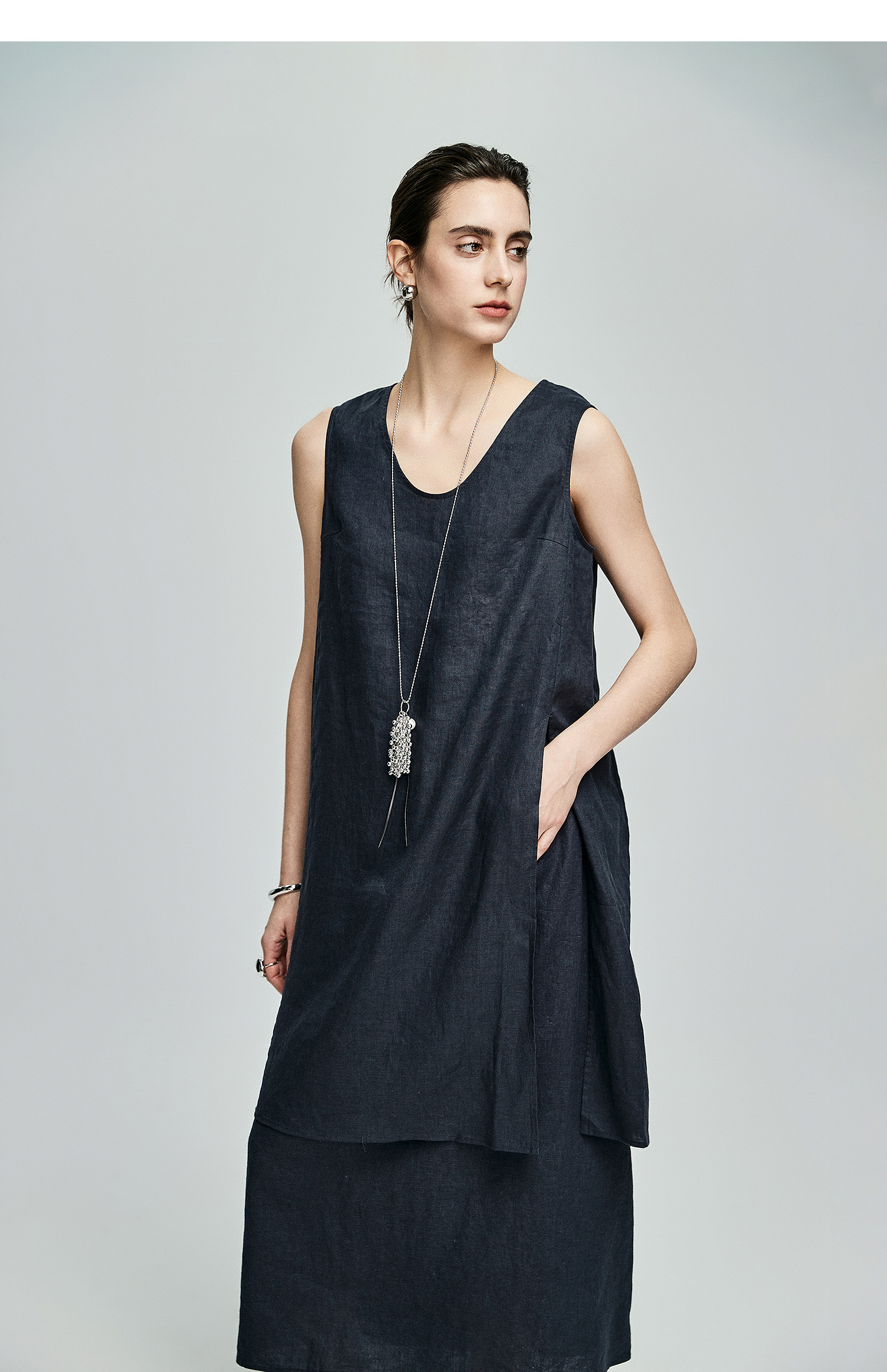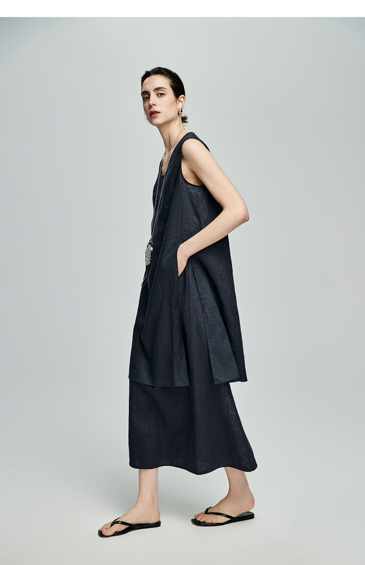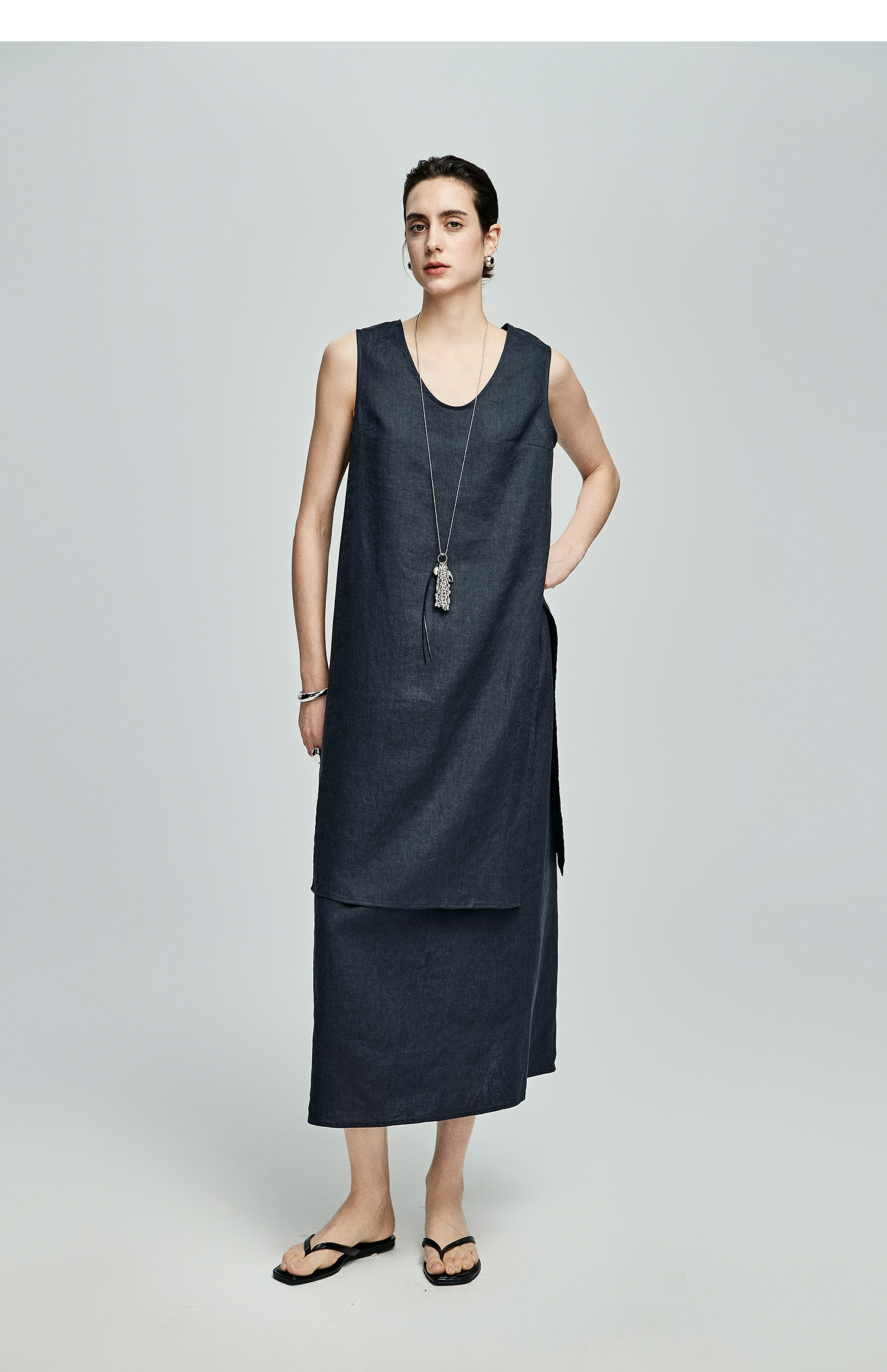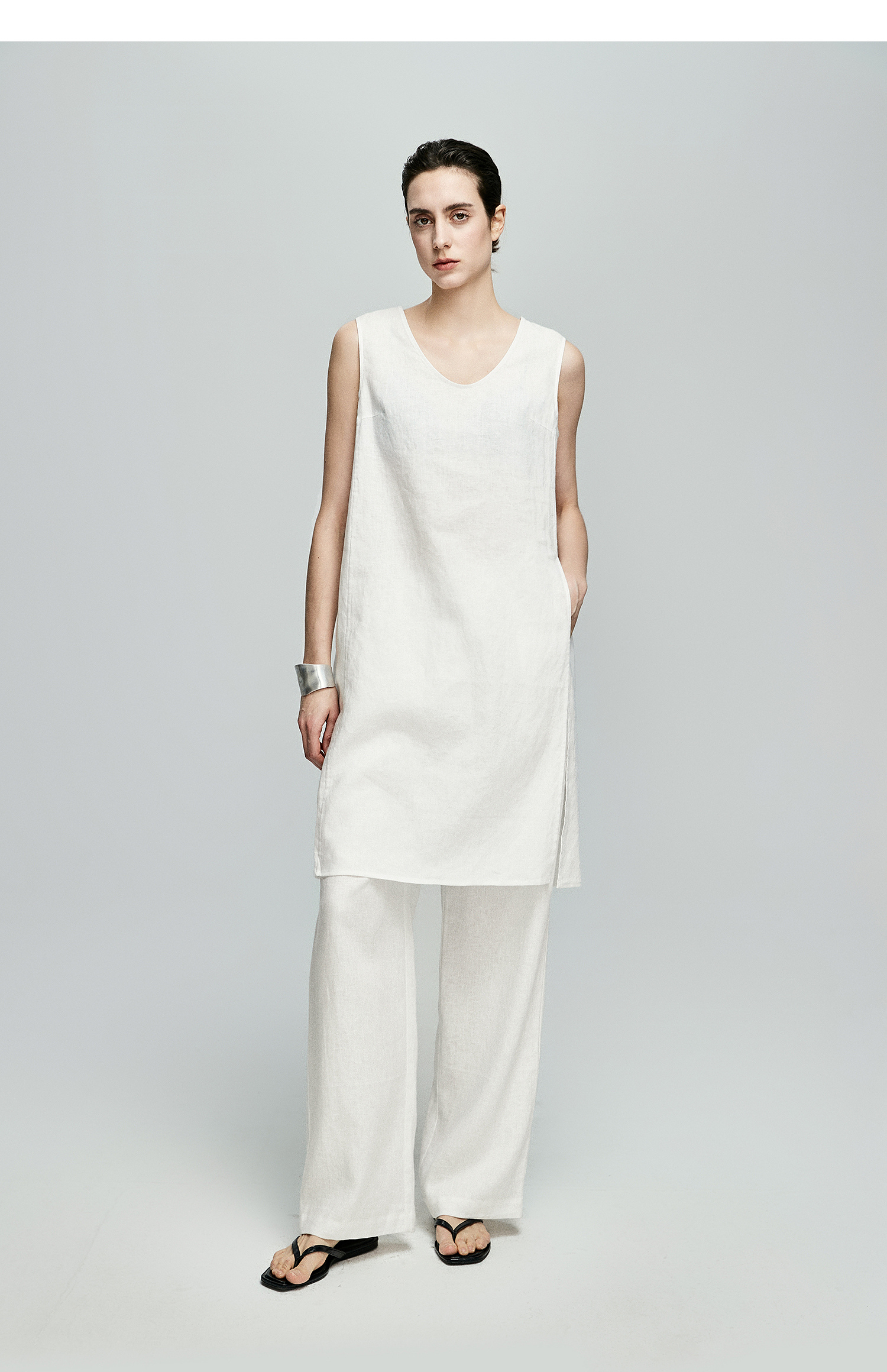 棉仓363616003-初棉亚麻U领中长款开叉上衣