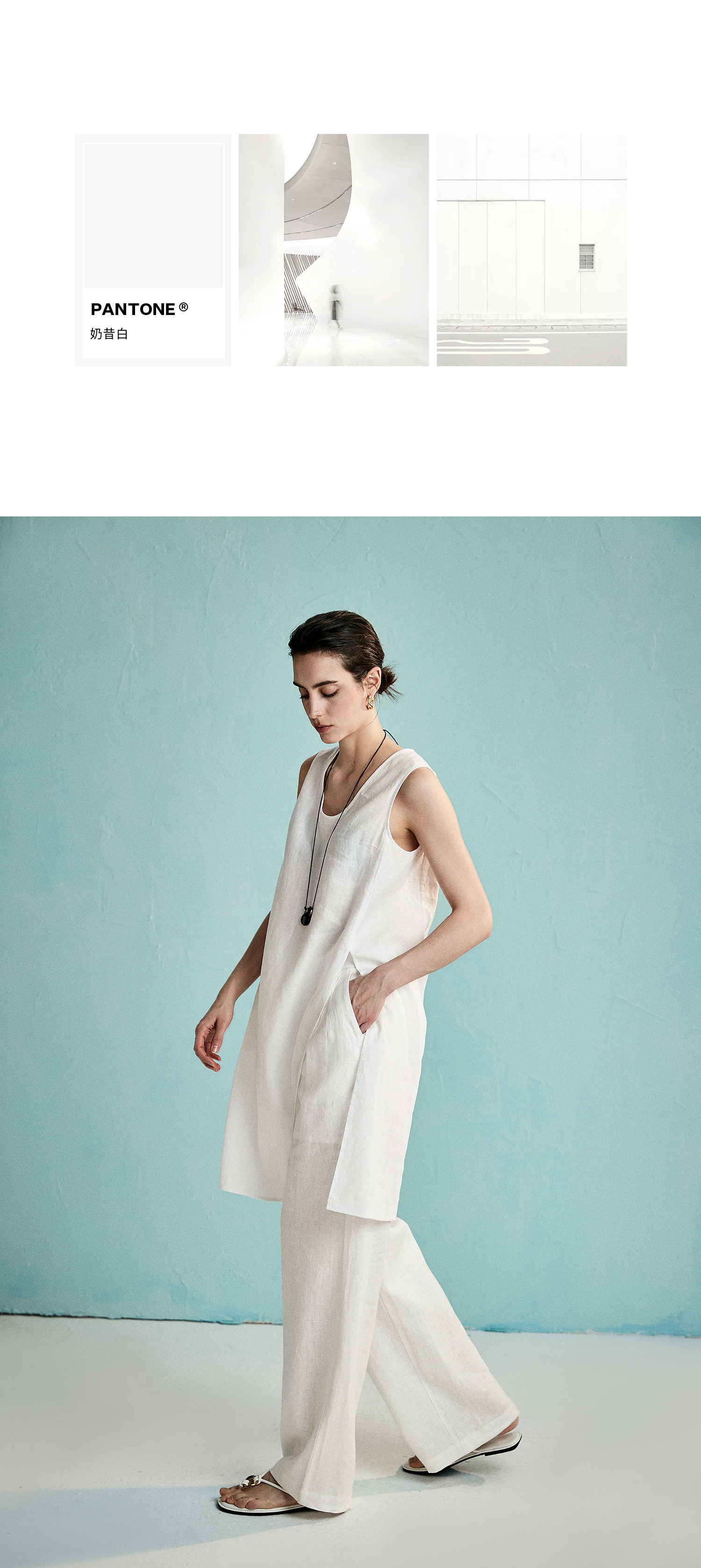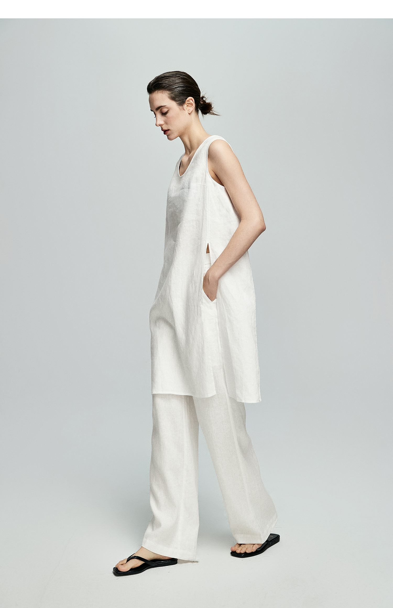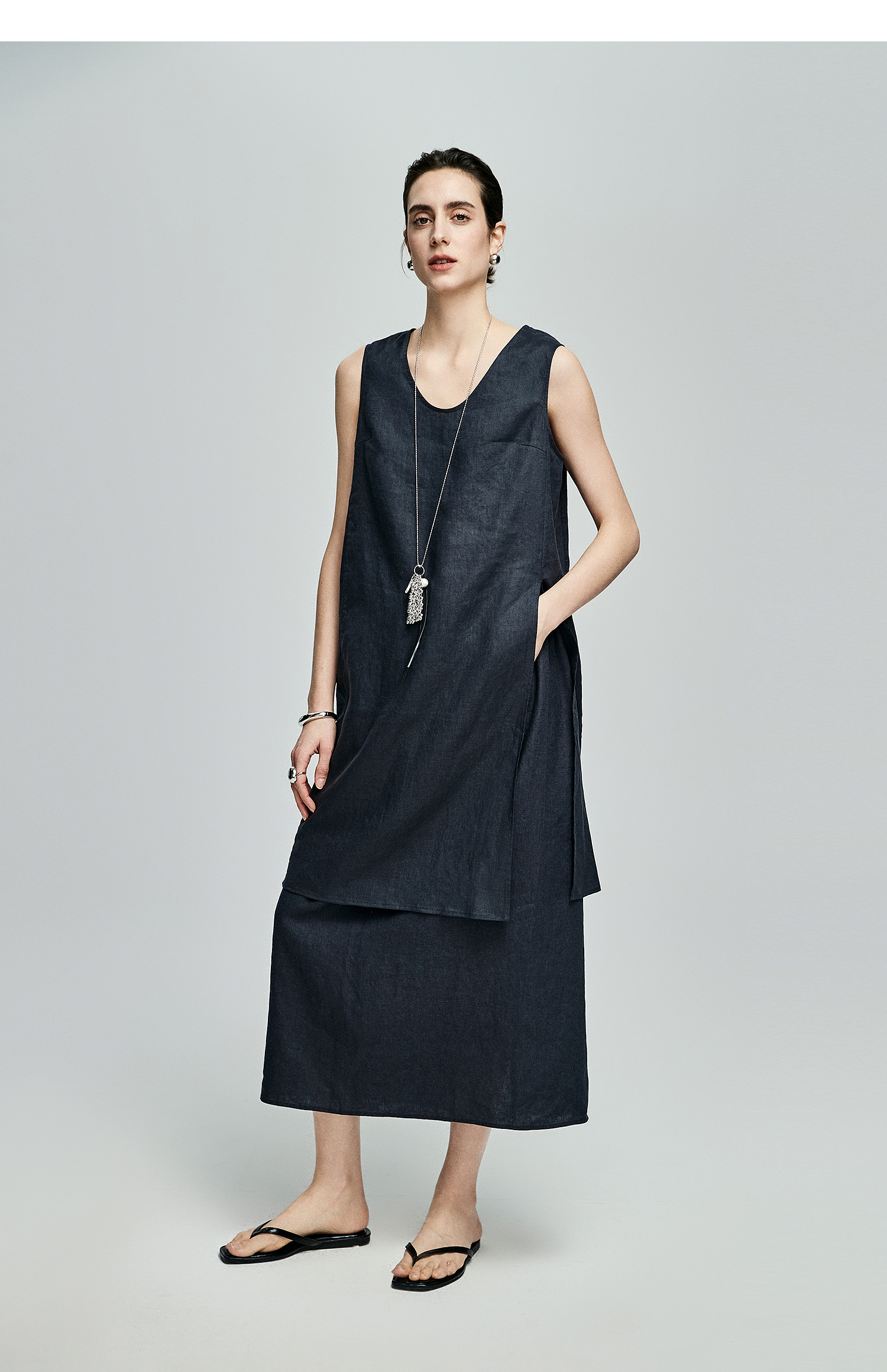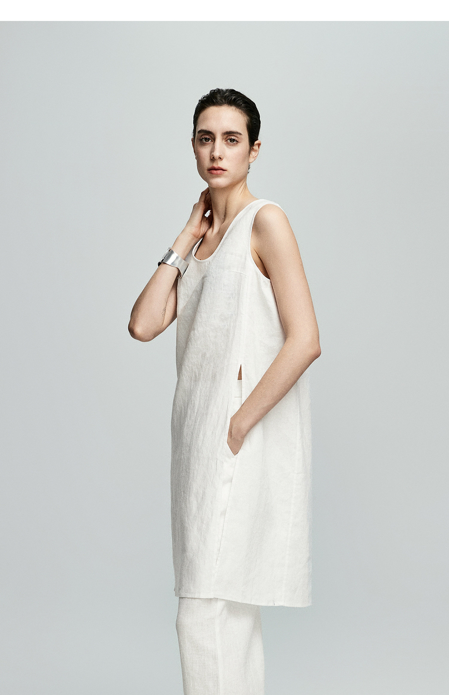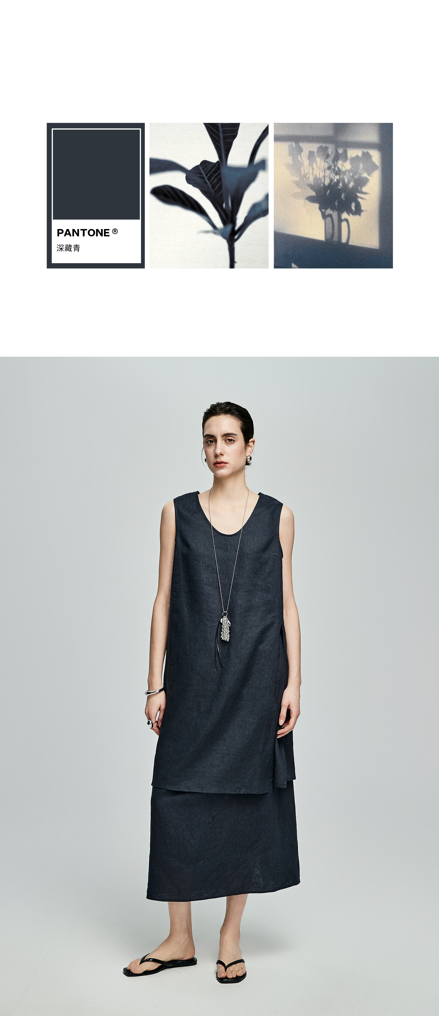 棉仓363616003-初棉亚麻U领中长款开叉上衣