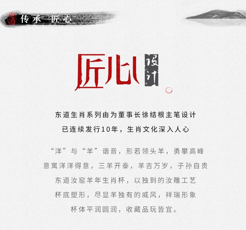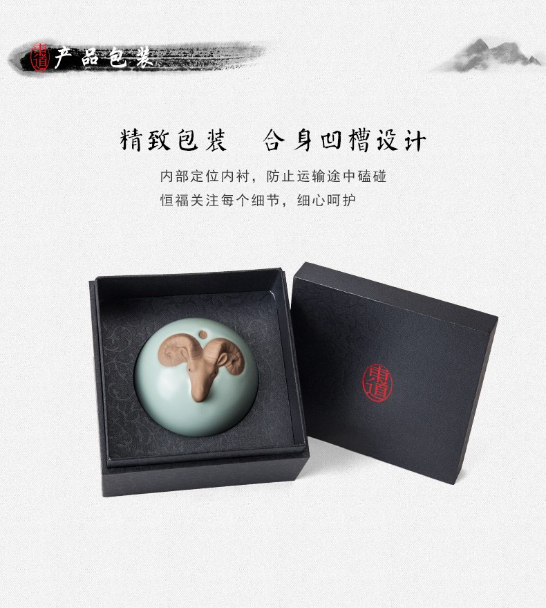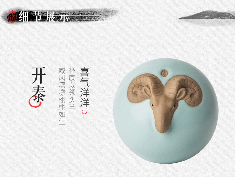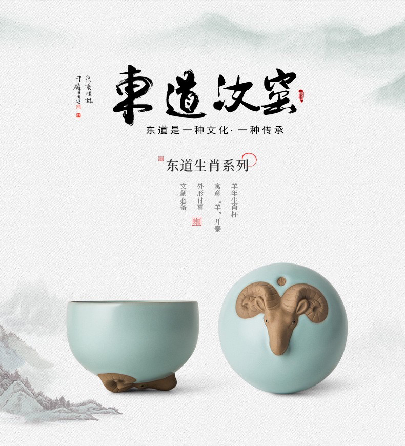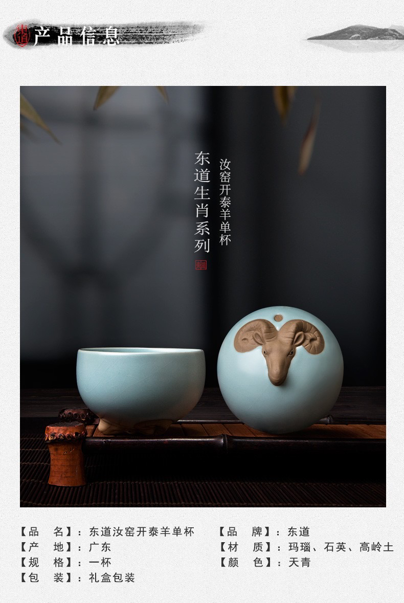 东道汝窑|三羊开泰主人杯B杯(天青)