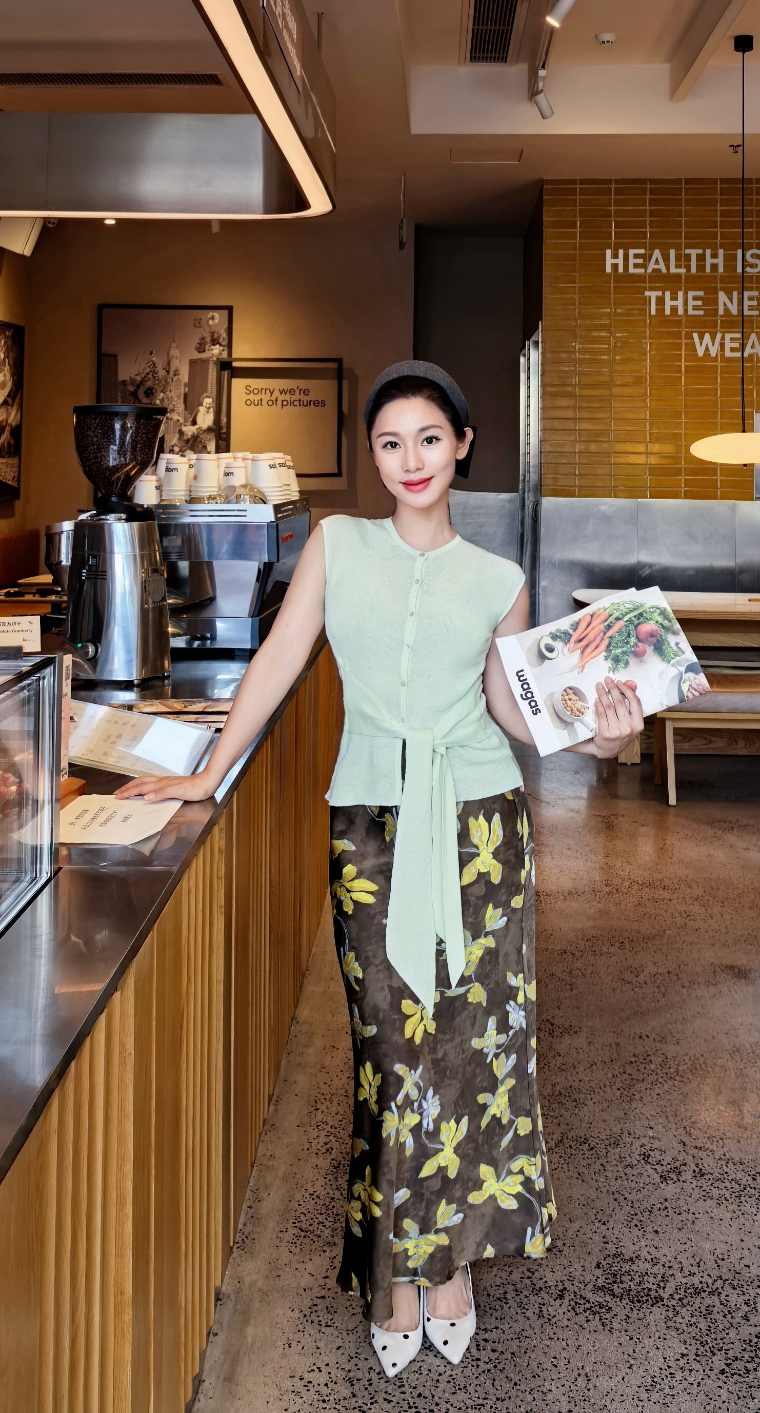 垂顺裙摆摇曳生姿,似塞纳河畔的鸢尾花,将上衣的腰带随意束起 ,立刻拥有黄金比例的身型~!