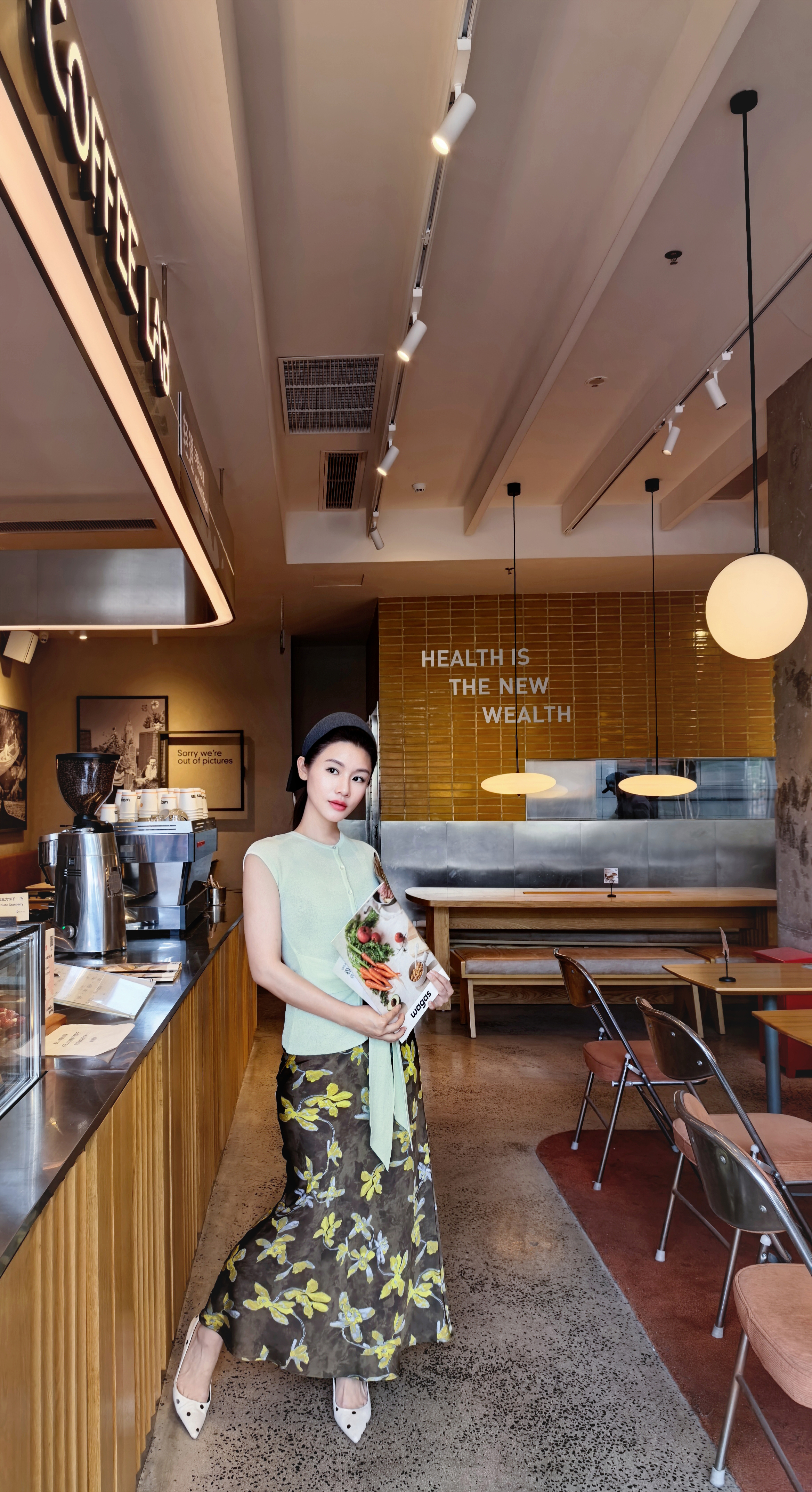 · 解开两粒纽扣 让锁骨与草编包共享咖啡时光