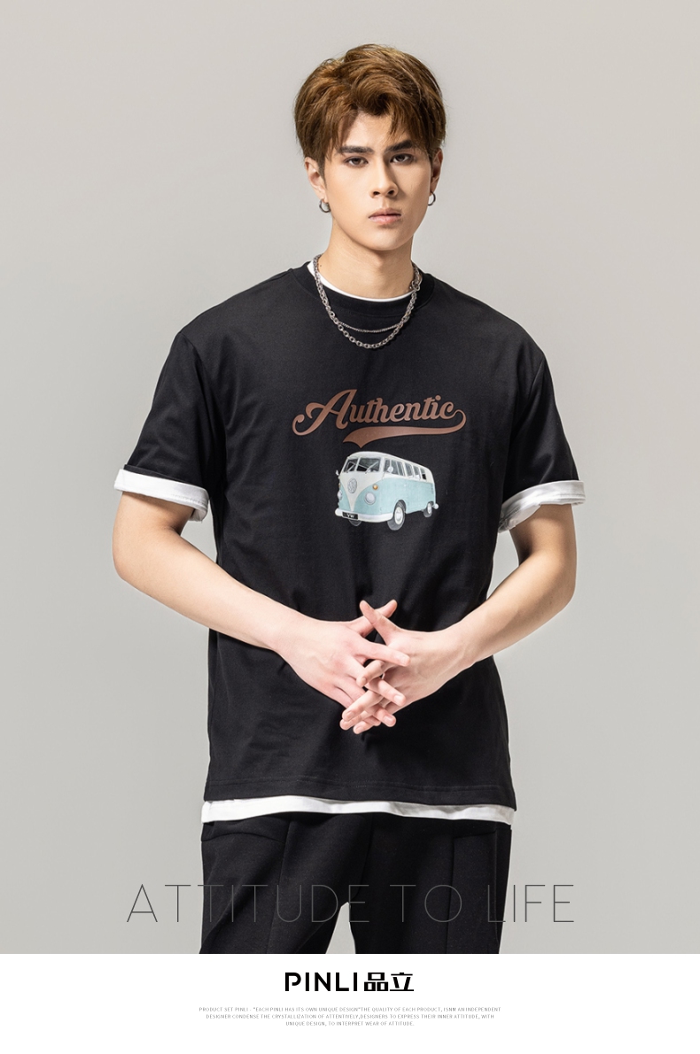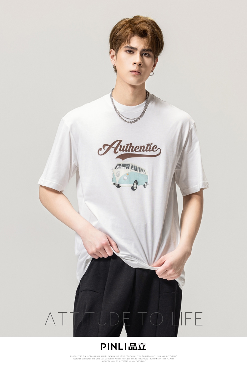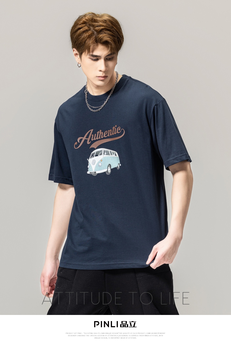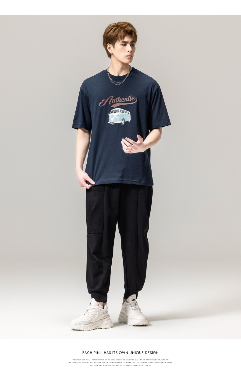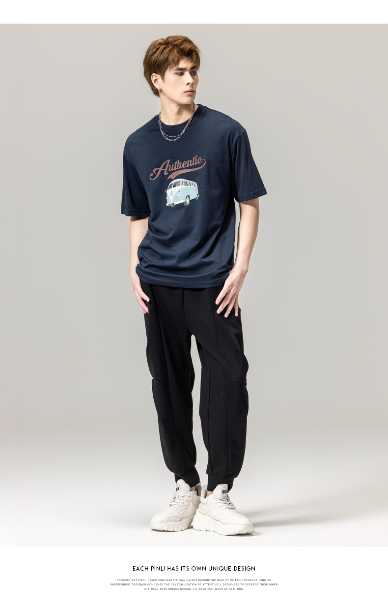 PINLI品立春季新款男士休闲体恤印花圆领短袖T恤BG231111045