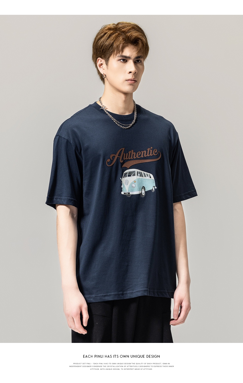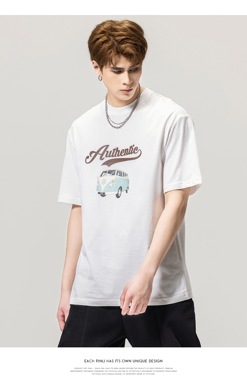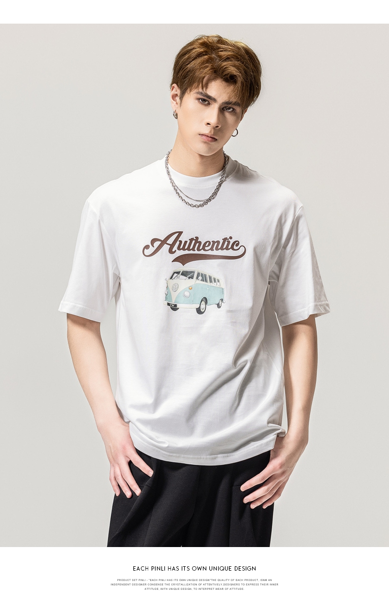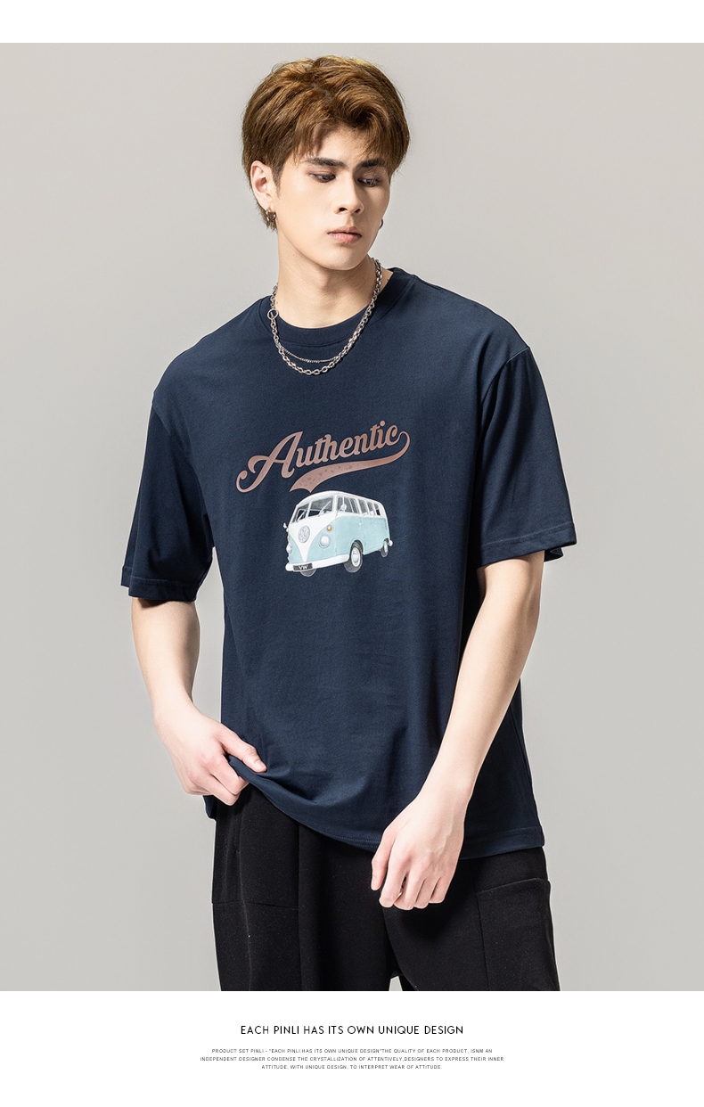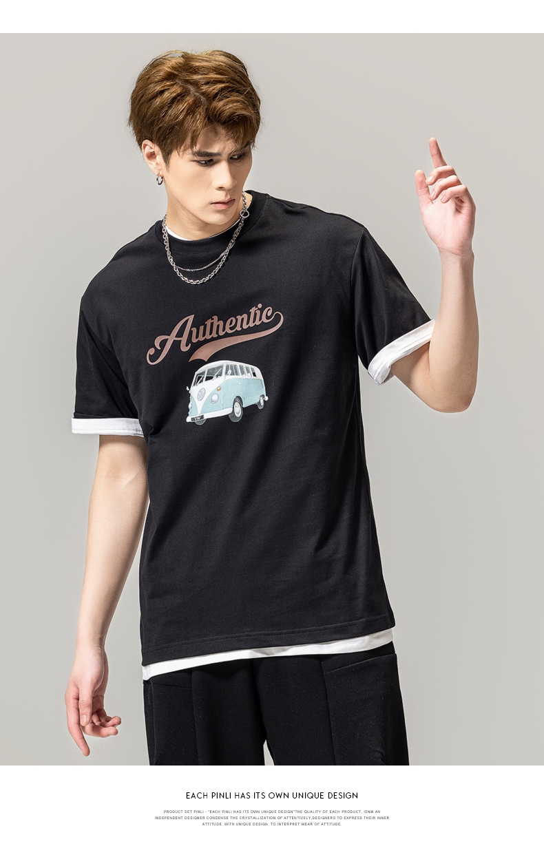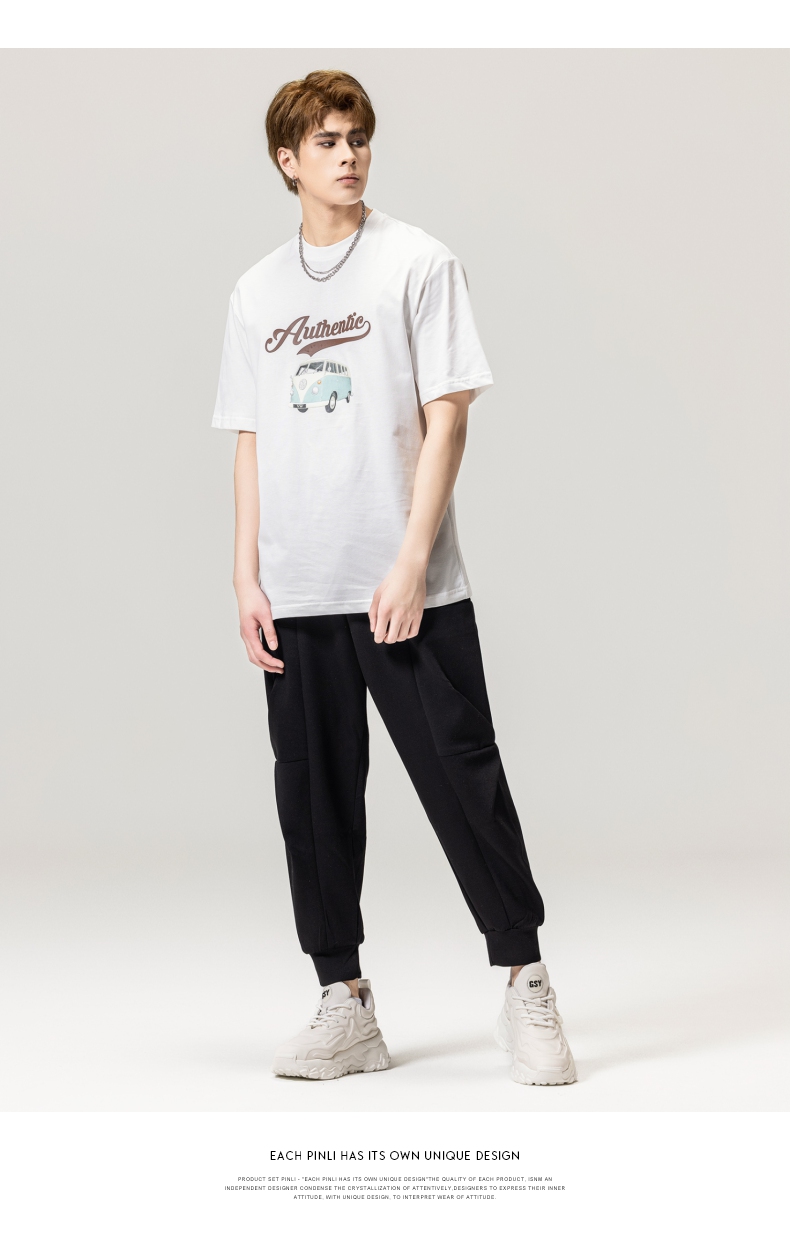 PINLI品立春季新款男士休闲体恤印花圆领短袖T恤BG231111045