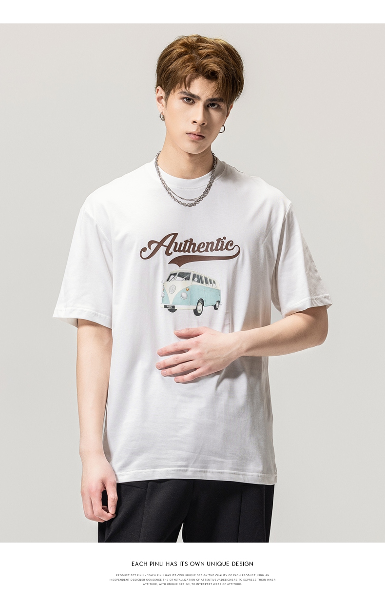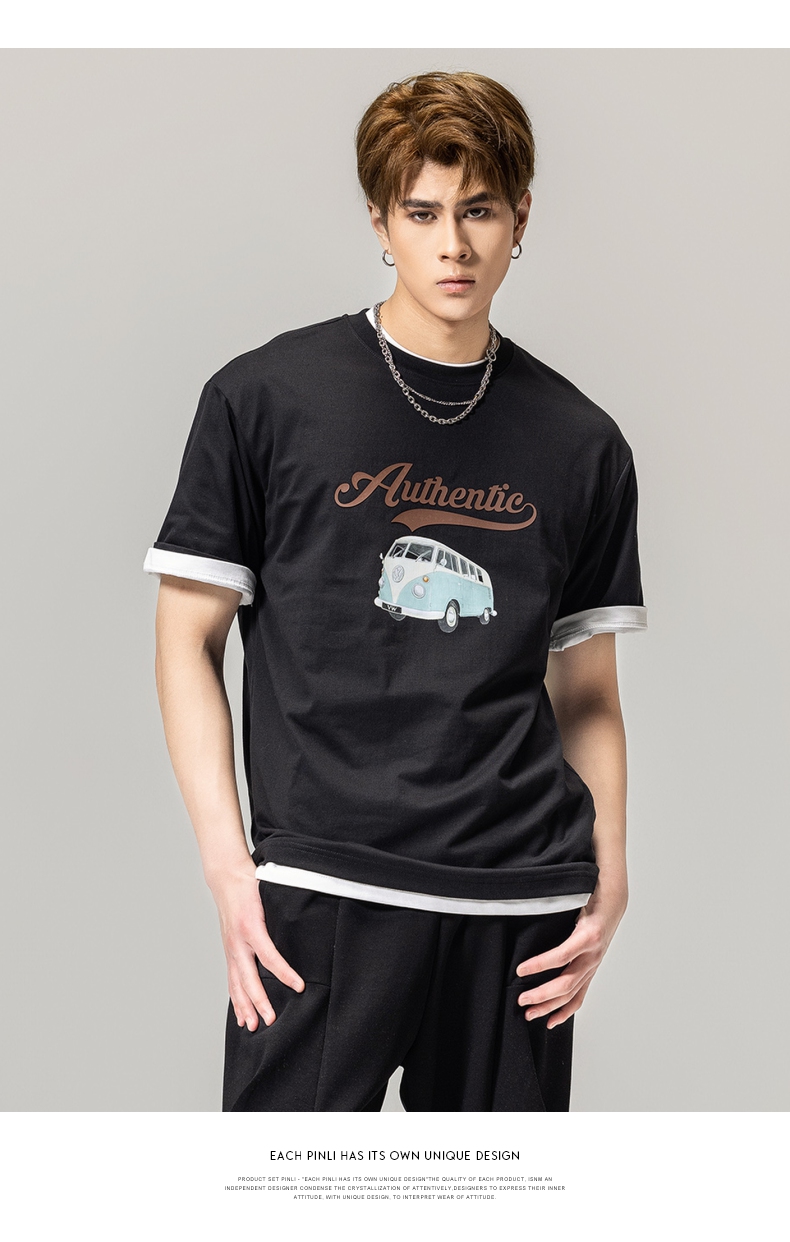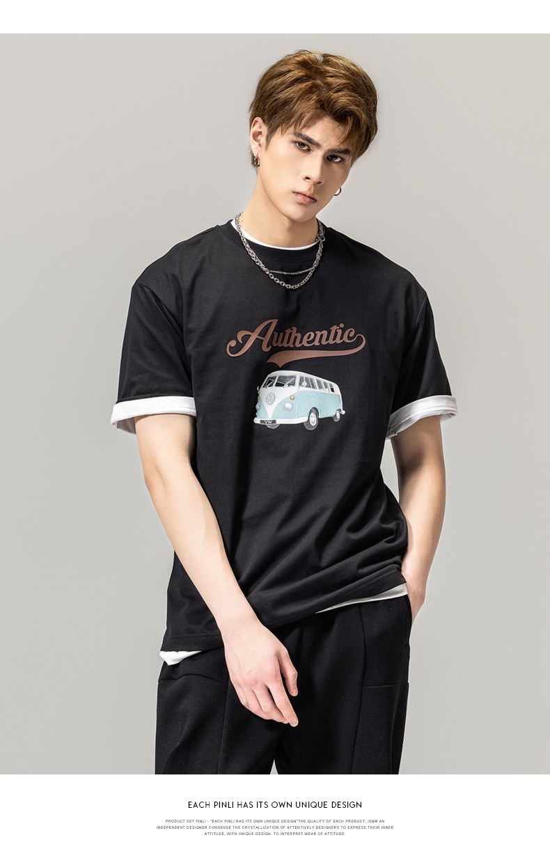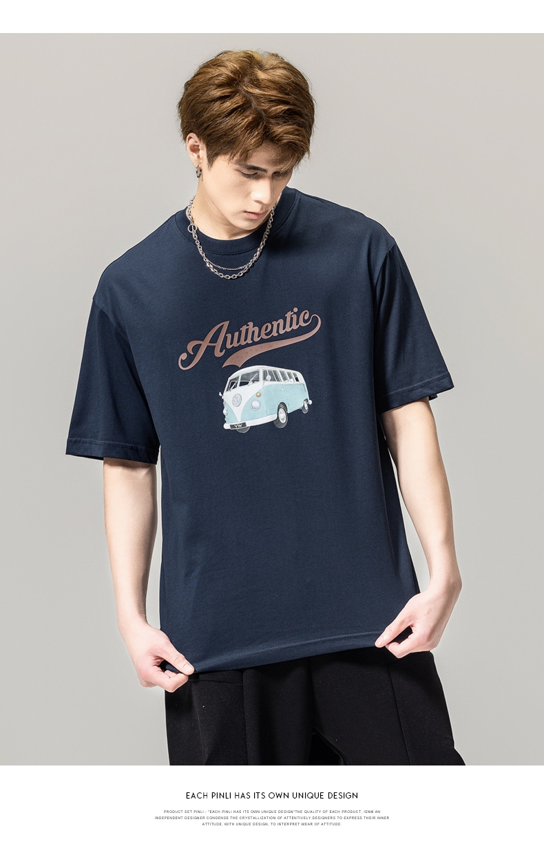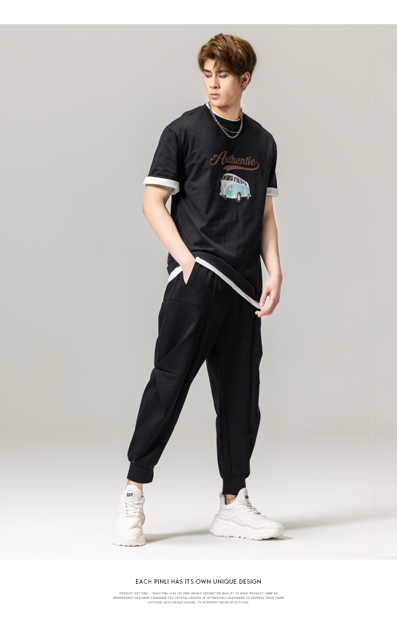PINLI品立春季新款男士休闲体恤印花圆领短袖T恤BG231111045