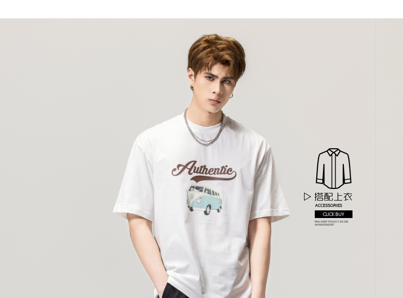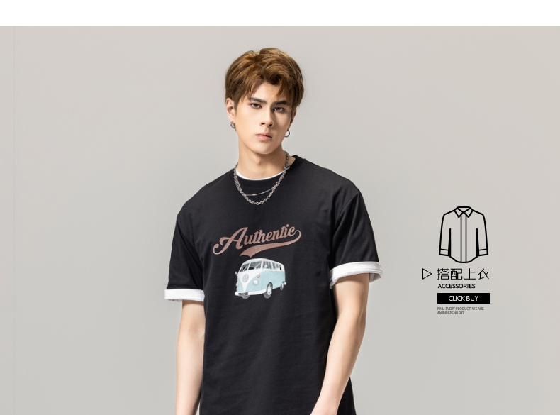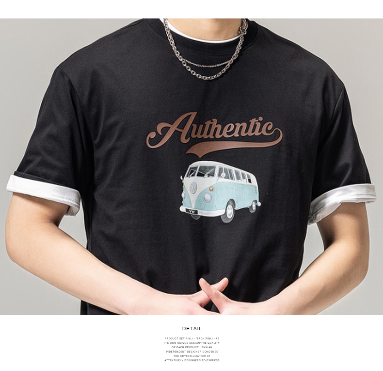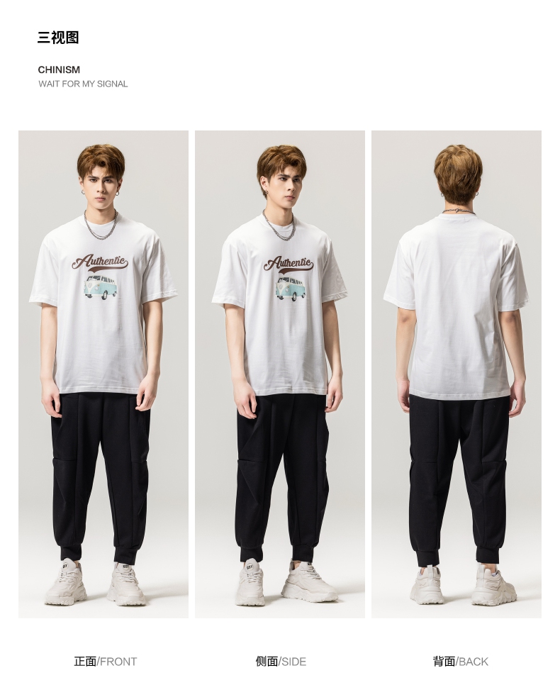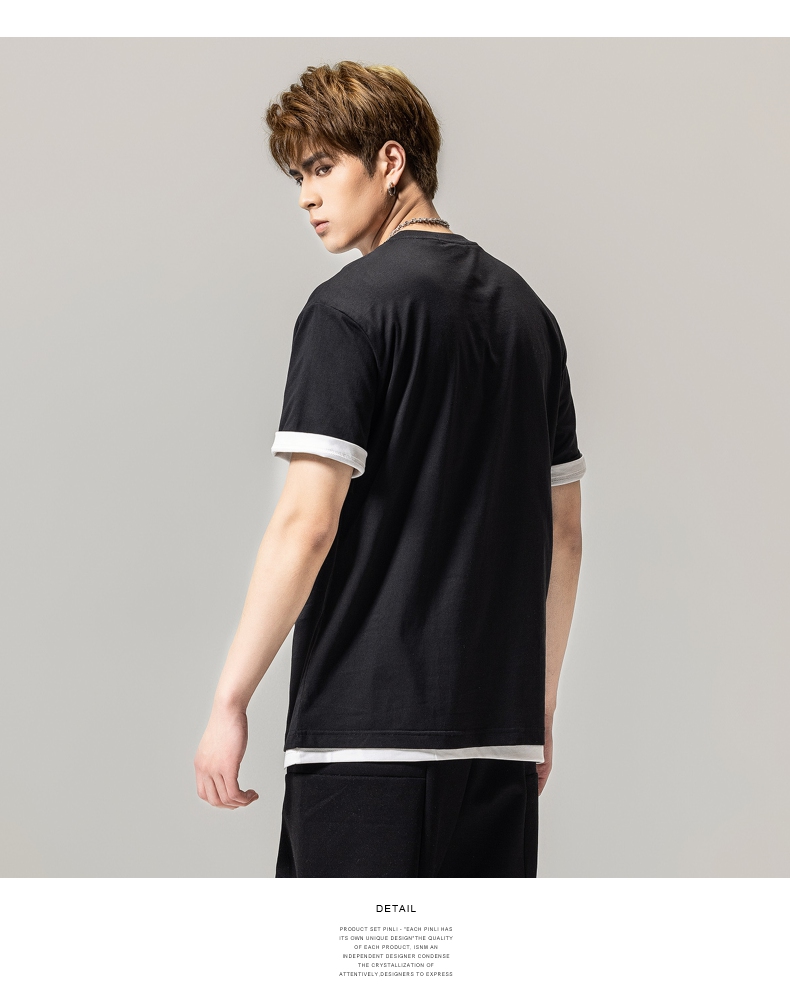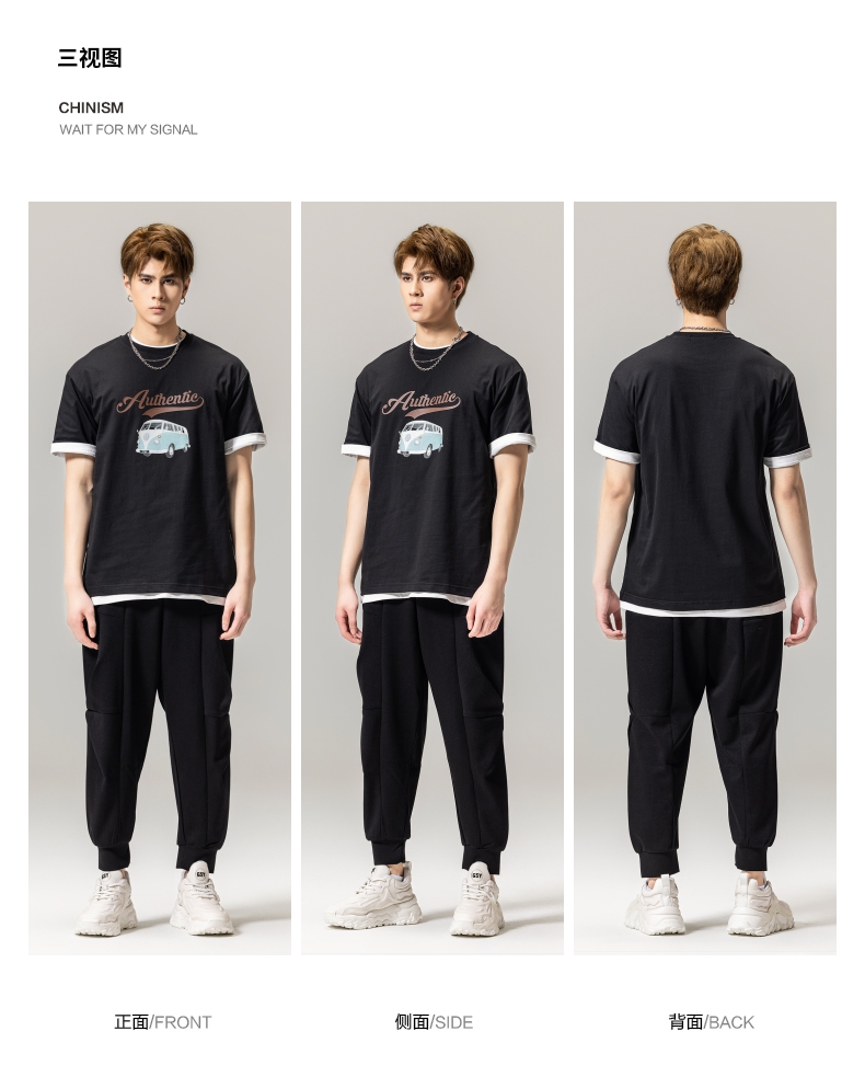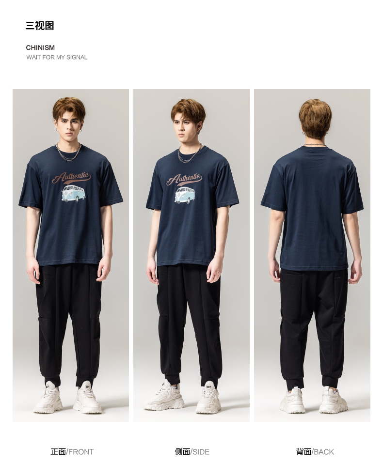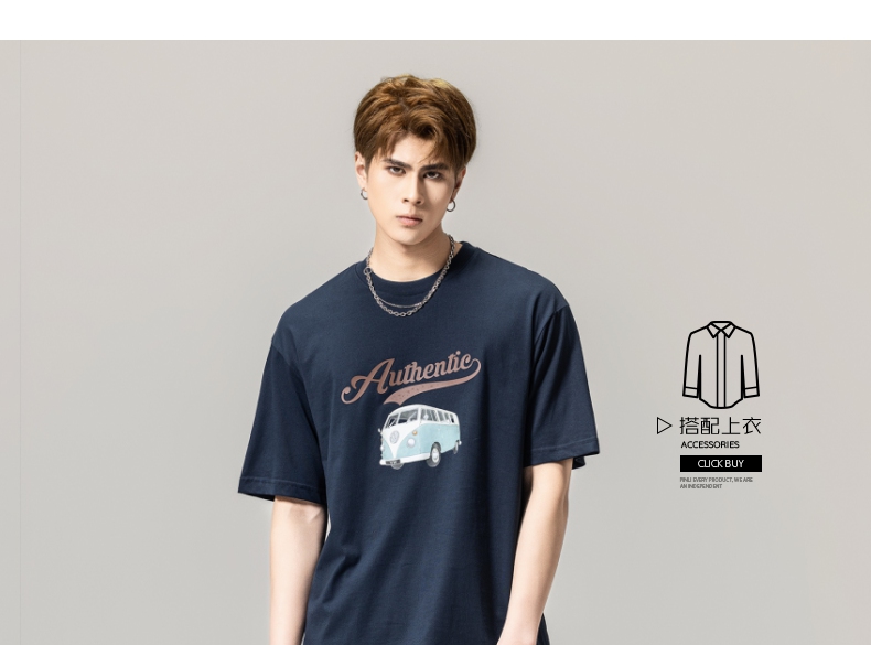 PINLI品立春季新款男士休闲体恤印花圆领短袖T恤BG231111045