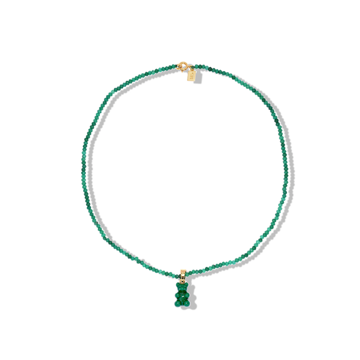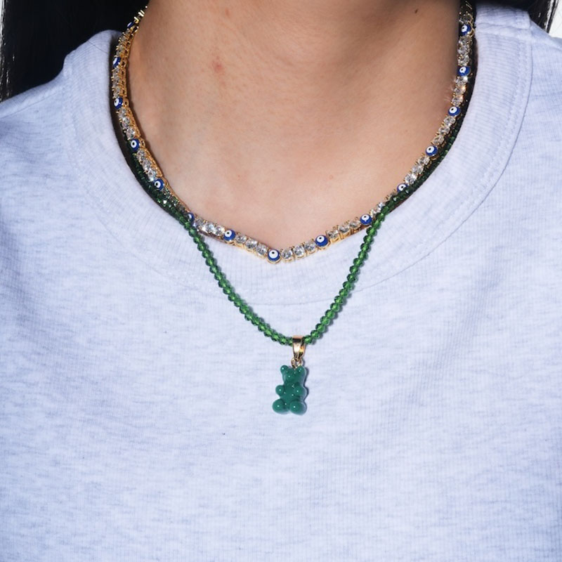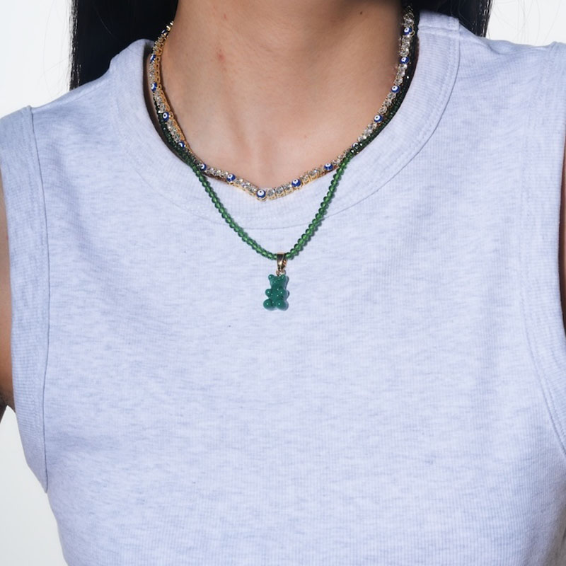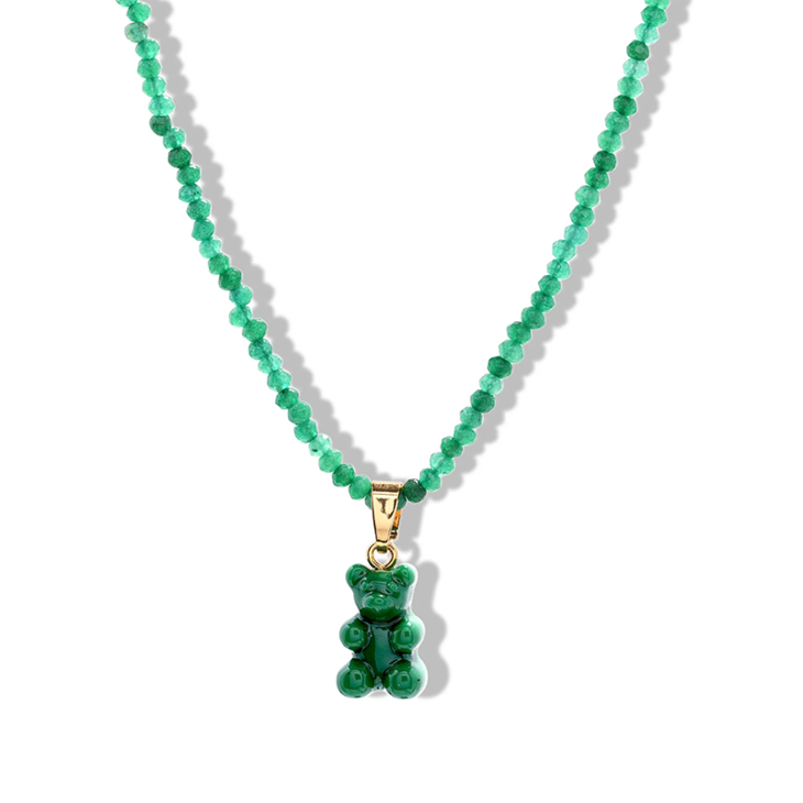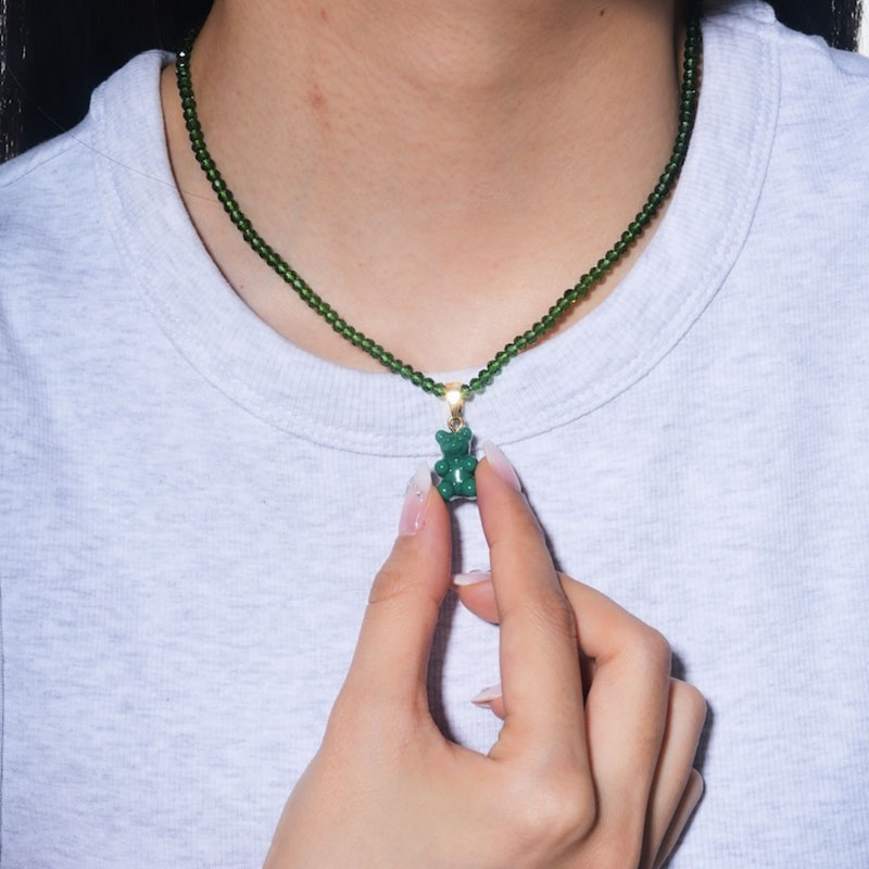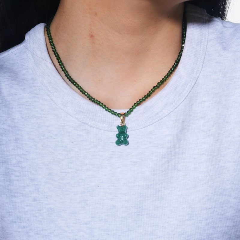 北京仓|CRYSTAL HAZE-Beaded Nostalgia Bear-绿色小熊 项链(金色环扣)[挪威设计师]