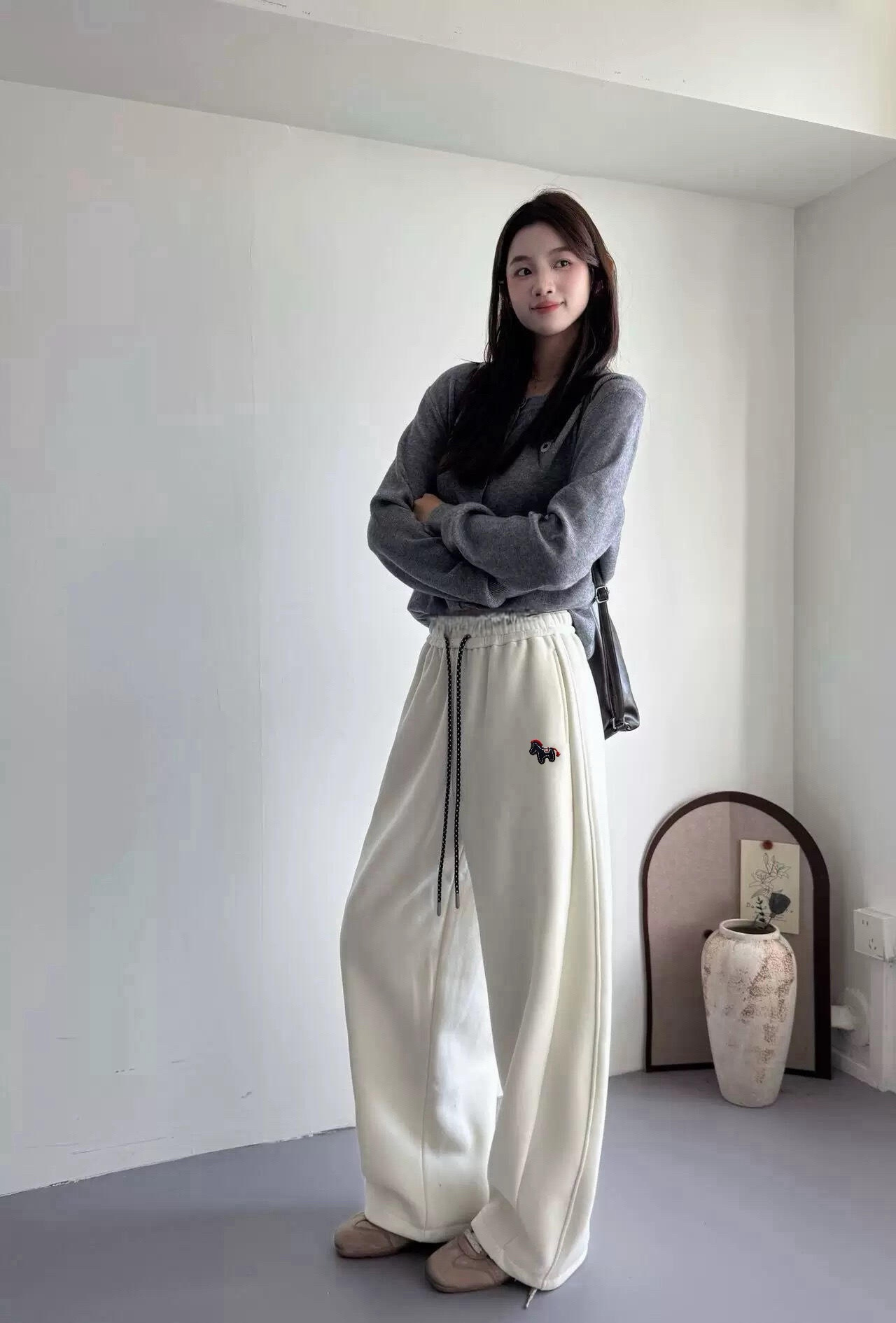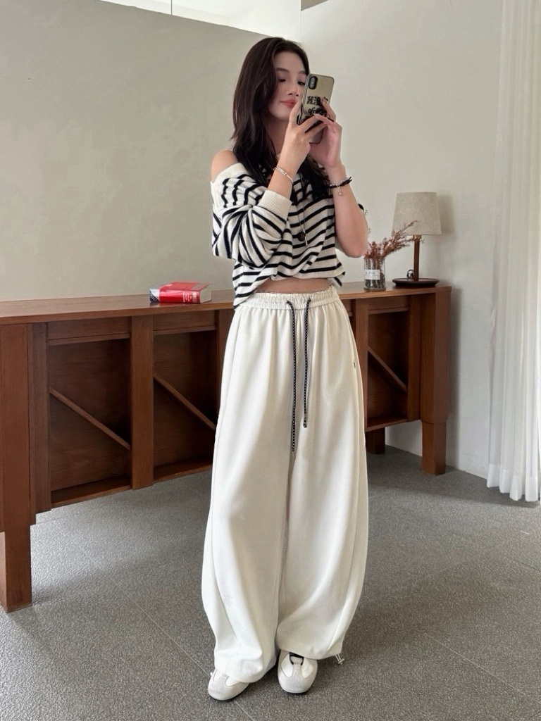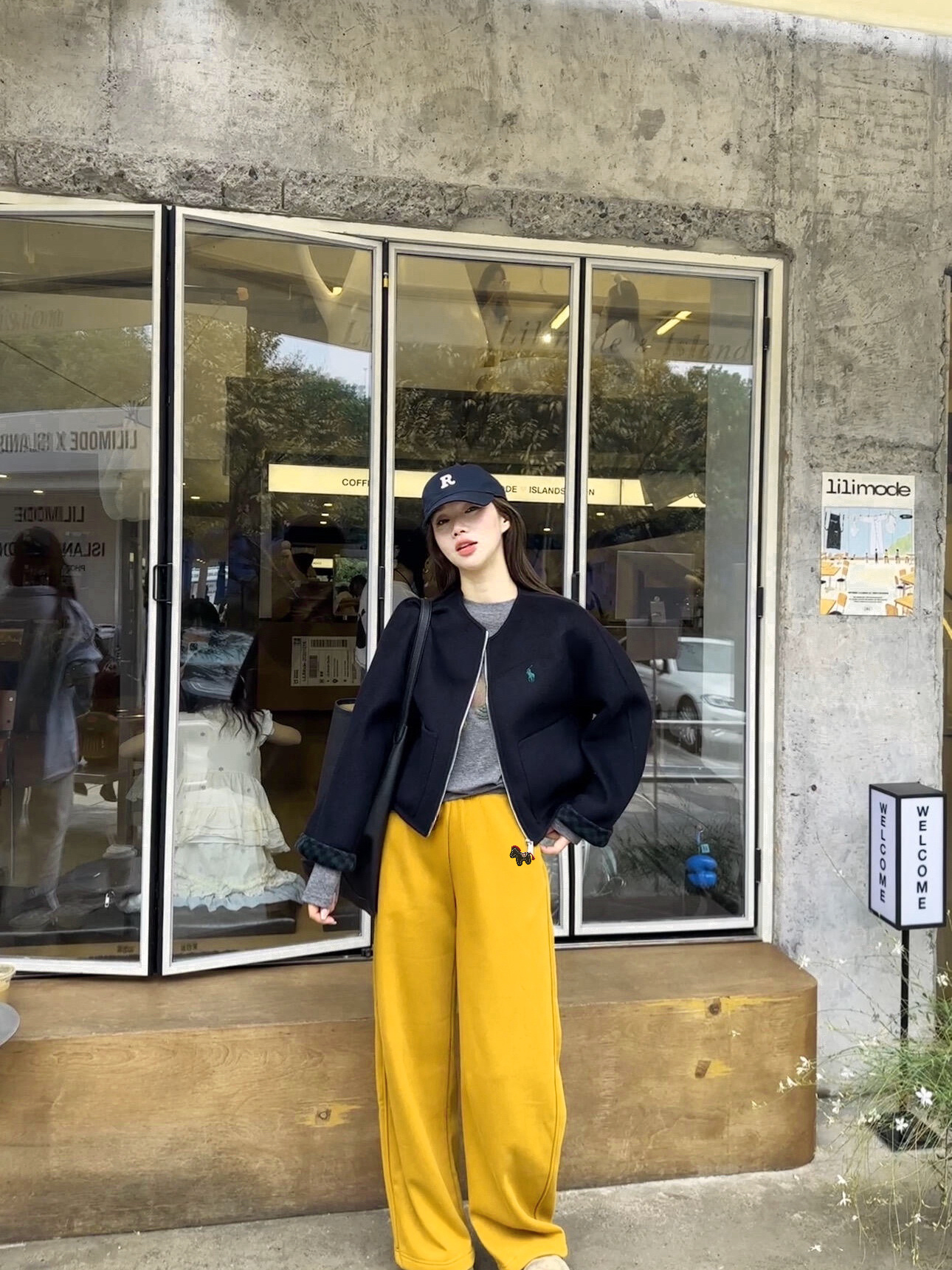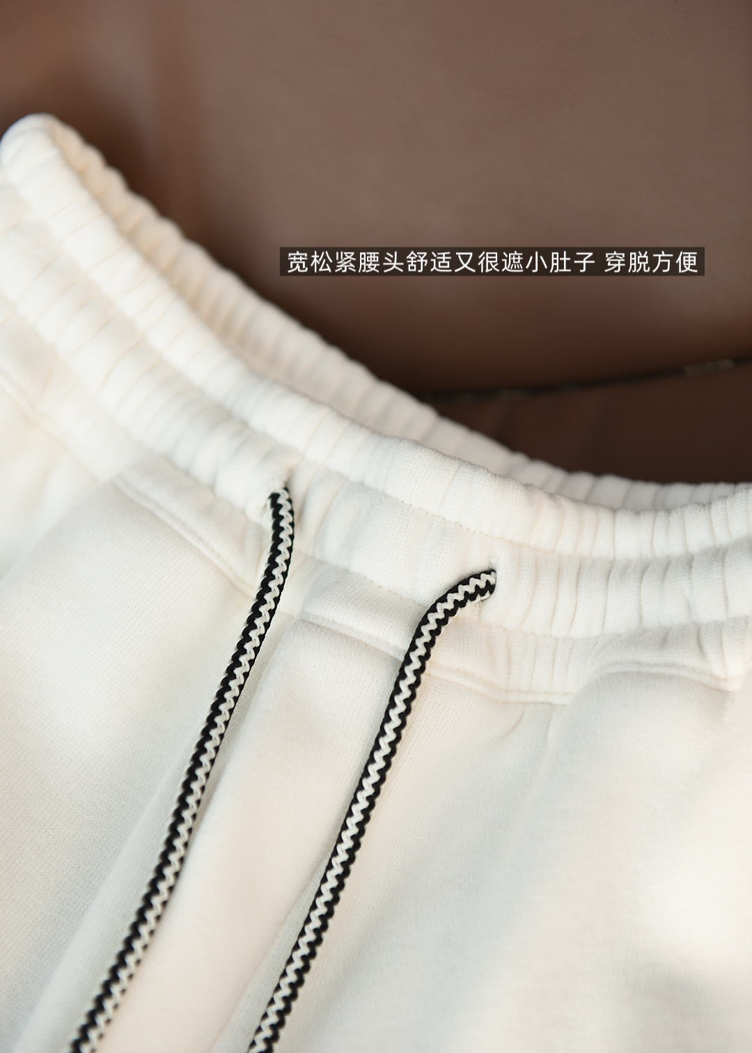 镰刀裤型加宽拼接设计,裤型上身中空感足,只有显瘦。