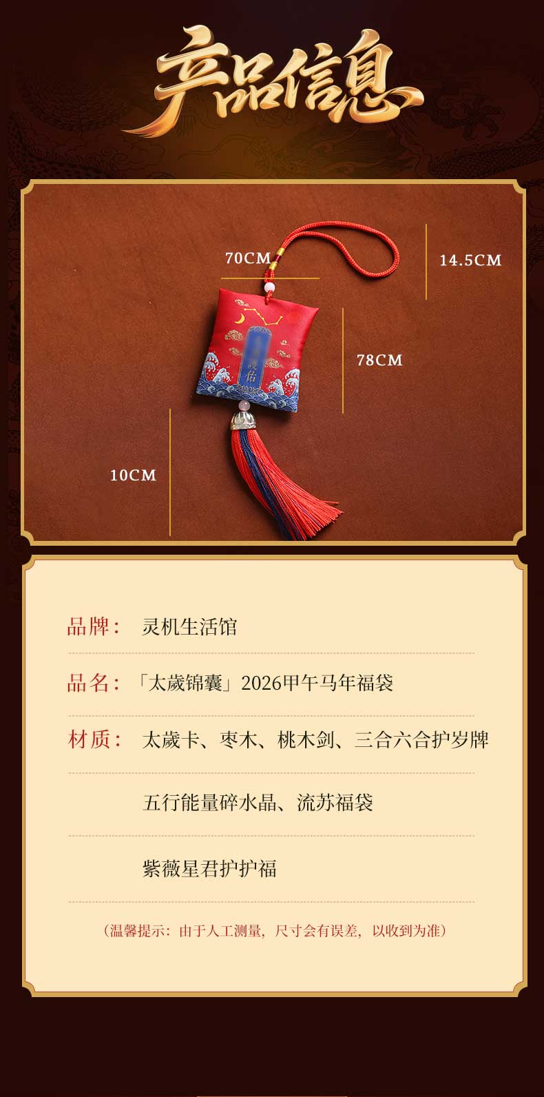 【岁岁调理】灵机生活馆2026马年「太歲锦囊」车挂福袋生肖马、鼠、牛、兔幸运物