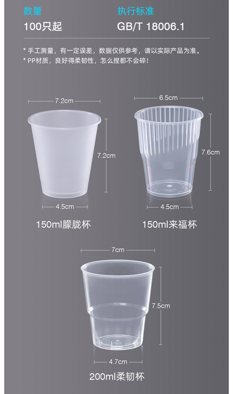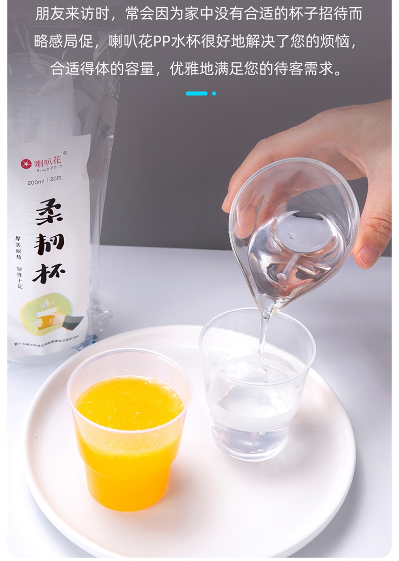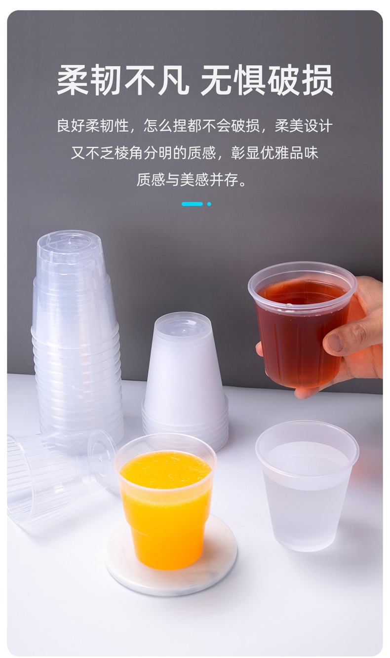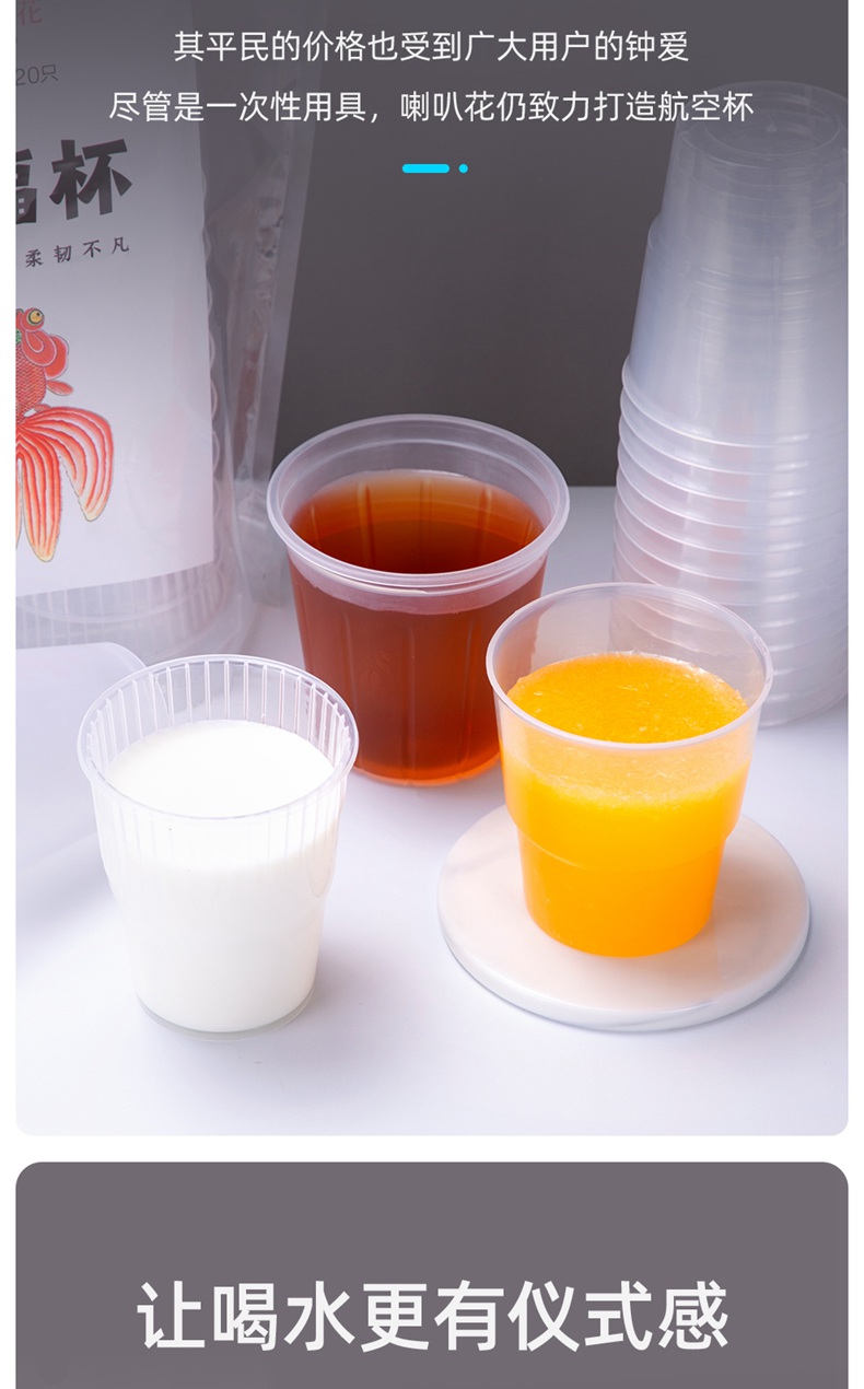 喇叭花一次性PP塑料杯磨砂加厚饮料杯招待杯水杯啤酒杯泡茶家用杯