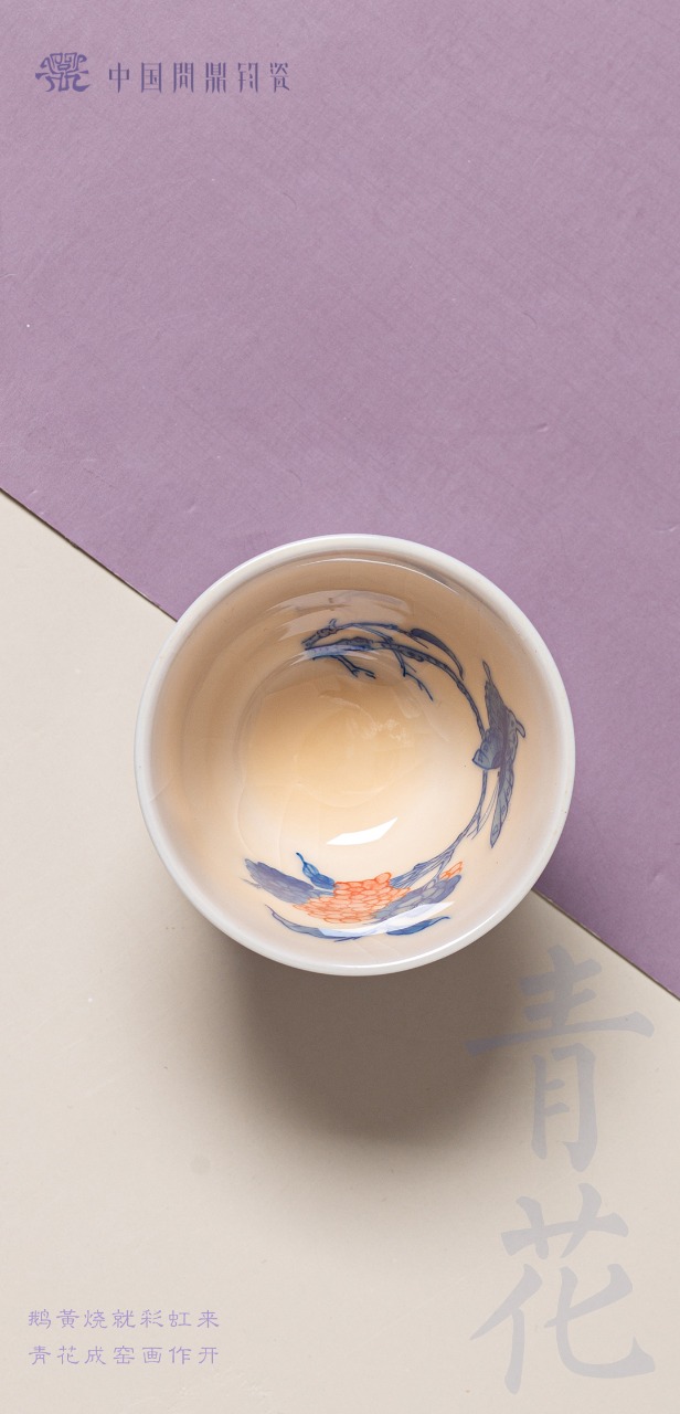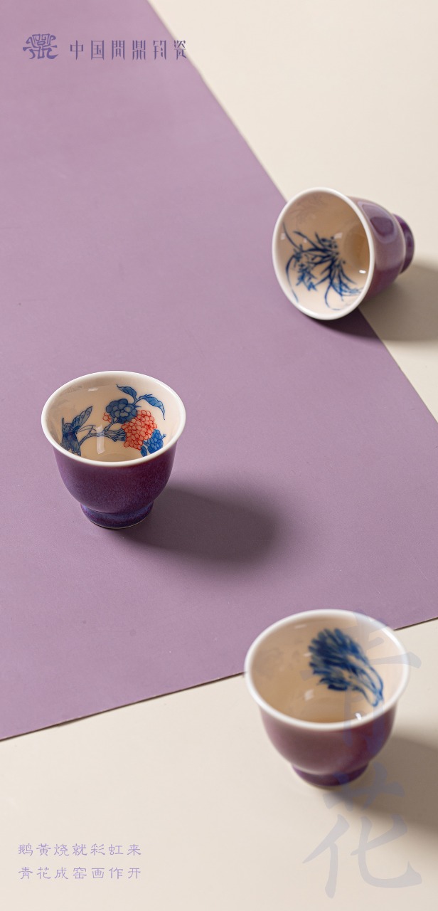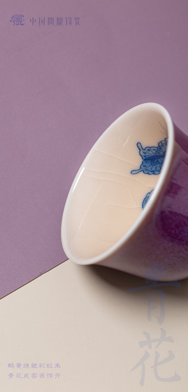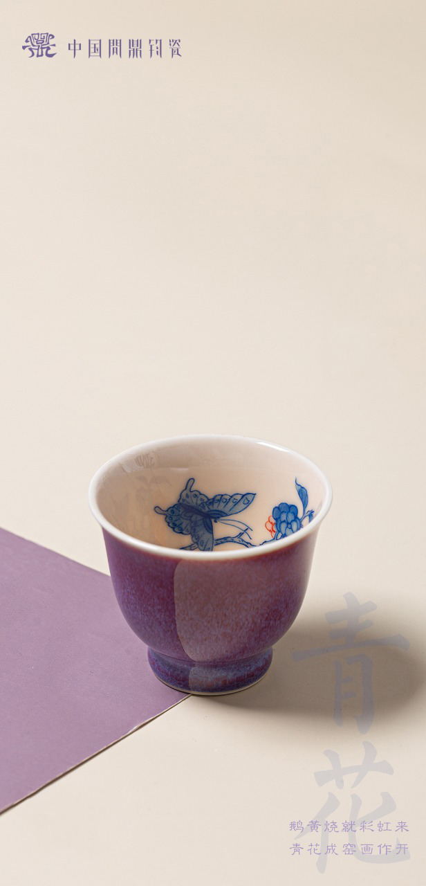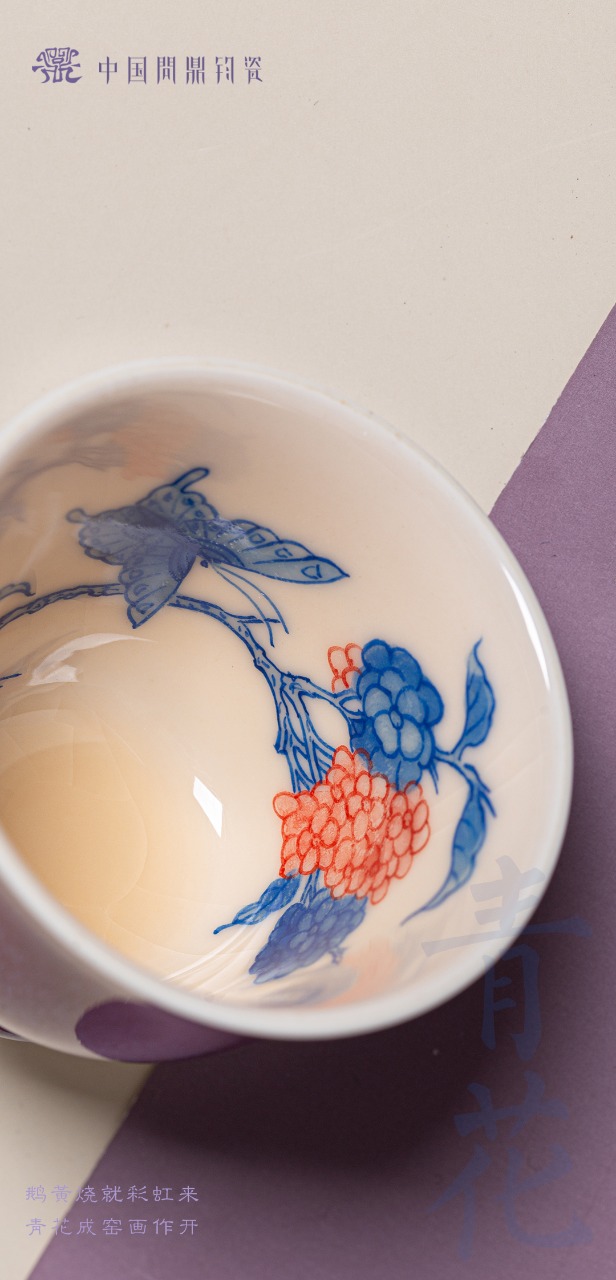 问鼎钧瓷鹅黄青花精工款毓秀杯(绣球蝶恋)