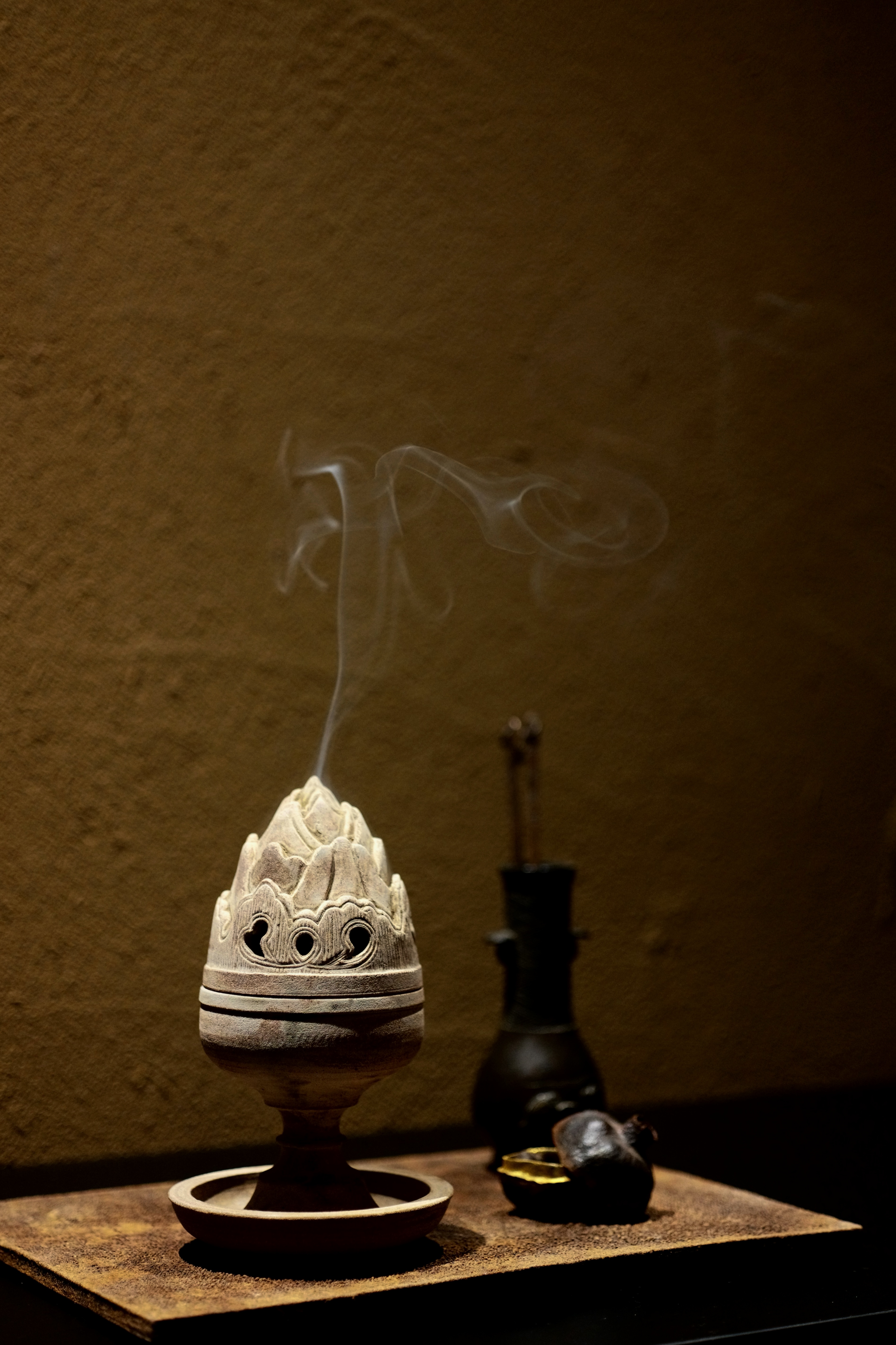 于炉中焚香,轻烟飘出,缭绕炉体,自然造成群山朦胧、众兽浮动的效果,仿佛传说中的海上仙山“博山”。