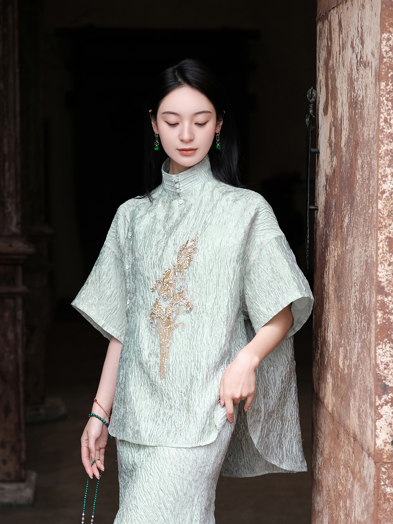 盛唐婧 |真丝缎提花折枝牡丹外套-明黄